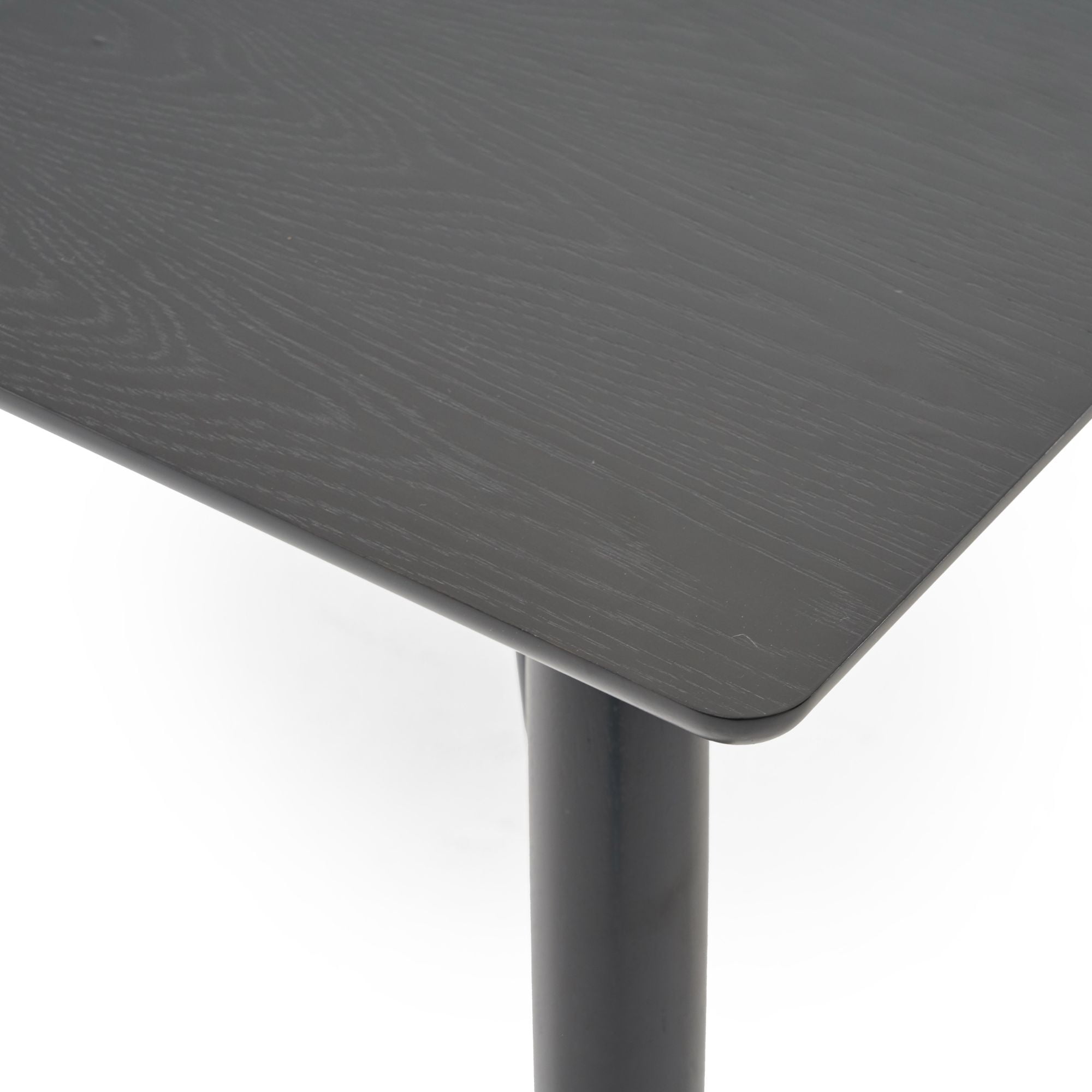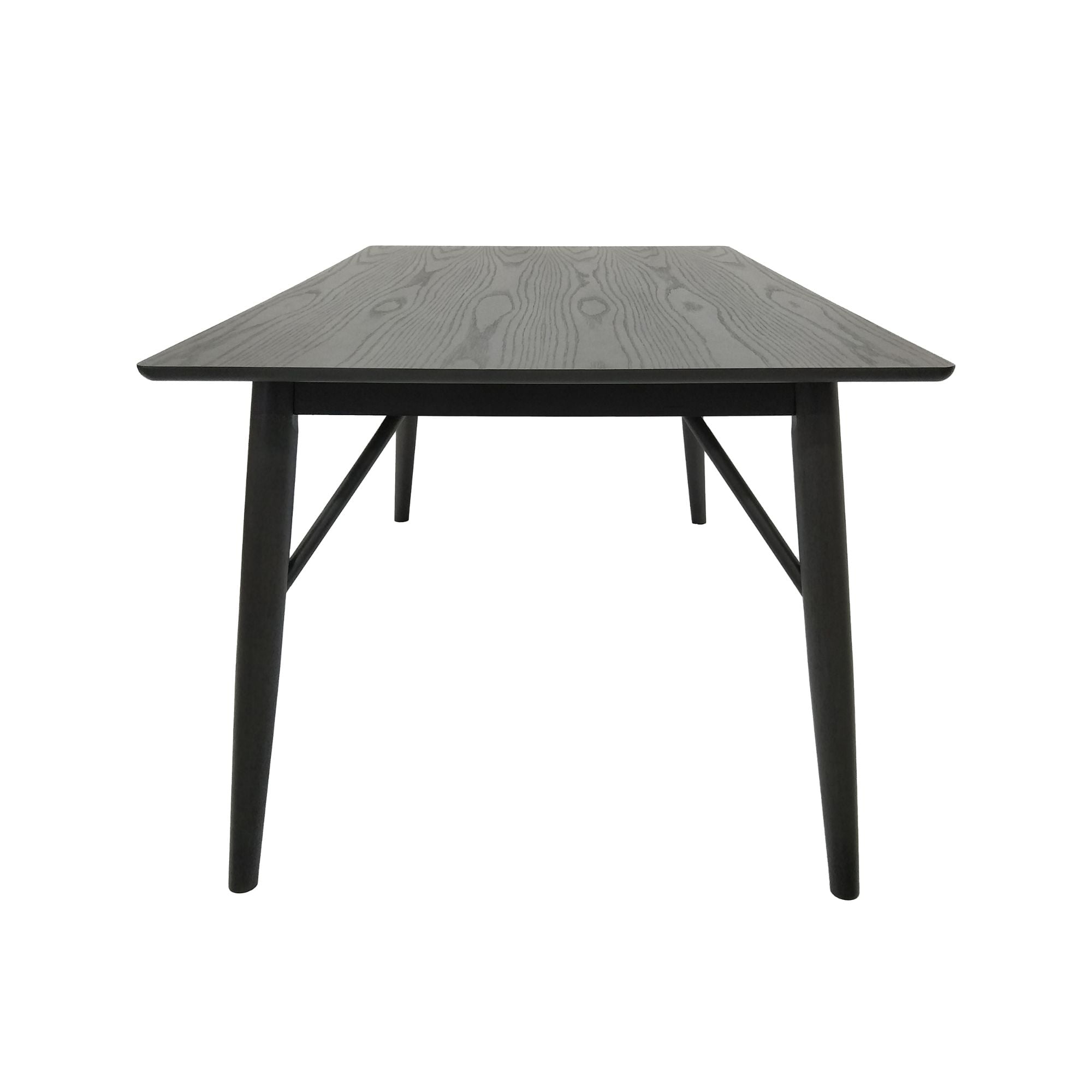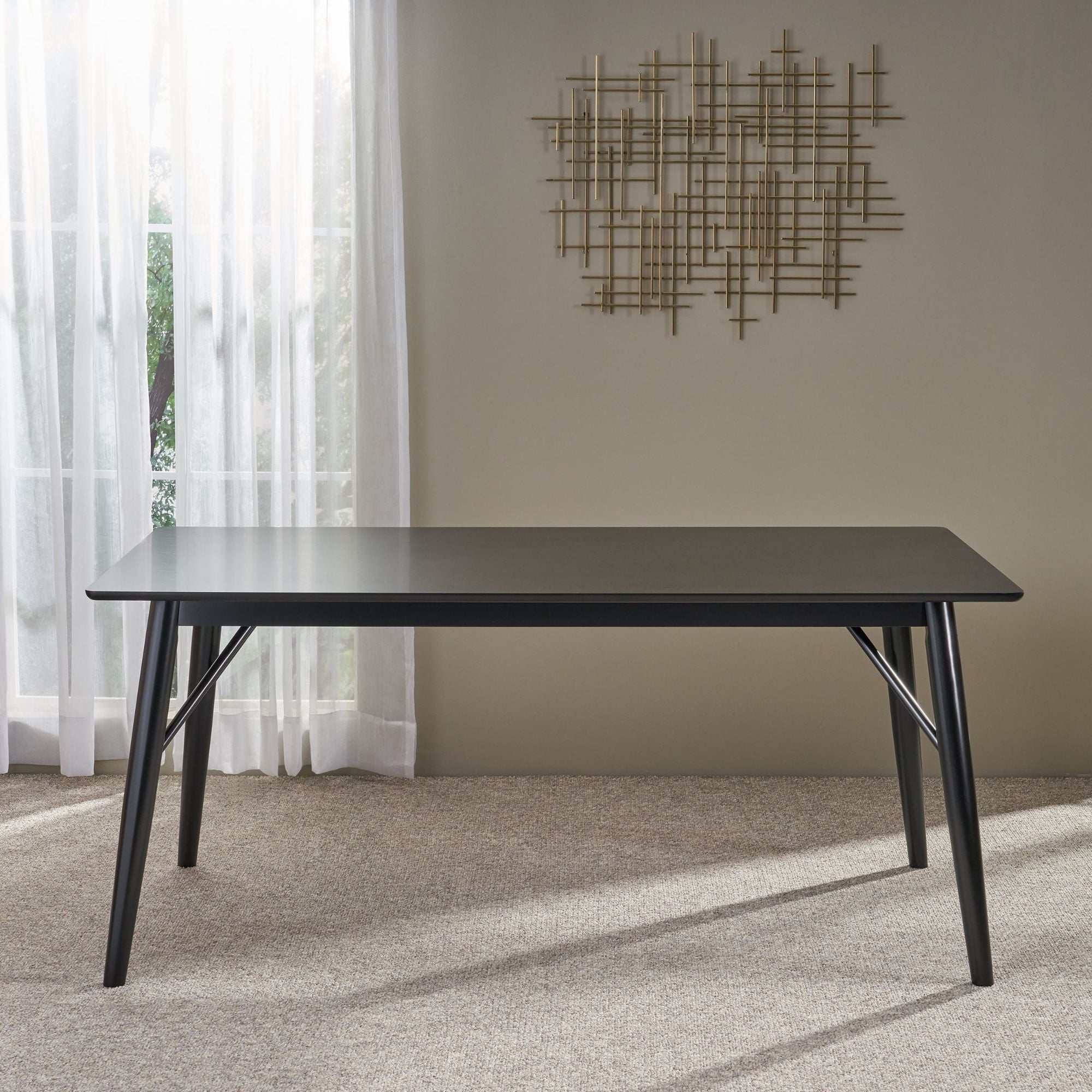 Black contemporary rectangular dining table with tapered legs Table showcases four tapered and thick round legs that angle outwards Fits up to six chairs; some assembly required Recommended for indoor use only; assembly instructions available 29.75 inches high by 67.65 inches wide by 37.25 inches deep