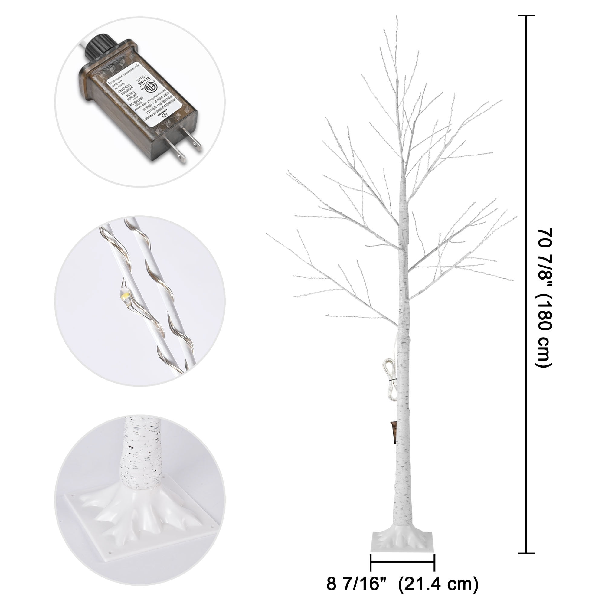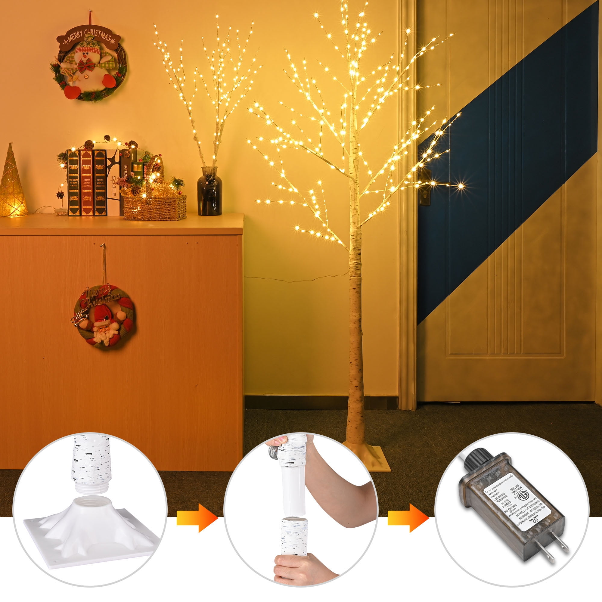 SEGMART Lighted Birch Tree – Ideal for Christmas Decoration Our pre-lit birch tree, artfully and exquisitely crafted with vivid bark texture, are a shining reminder of the joy and wonder of Christmas. Group the lighted birch trees together at your home front porch or yard to create a welcoming ambiance for your party or holiday celebration. Each branch is embellished with realistic LED light. LED lights to meet the need of brightness, energy-saving and long life span which up to 10,000 working hours. Come on, do not miss this valued white Christmas tree. 1. Lifelike Look The pre-lit lighting tree is handmade and exquisitely crafted, along with 305 pcs of fairy-tale warm white lights dotted around branches to look like a wonderful piece of art. Life-like birch bark texture creates a natural and romantic atmosphere at home on winter holidays or festivals. 2. 8 Lighting Modes & Brightness Adjustment Comes with 8 flashing modes and 10-level brightness options, along with 6H/8H/6639H timers, controlled by remote control or power switch for conveniently creating a cheerful festive vibe at home at any moment. 3. Useful Design Bendable branch DIY for shaping a natural tree, so you can reshape them as desired, sturdy enough to support relatively ornaments; with small holes on the base to facilitate the tree fixed on the lawn or other places. 4. Multi-functional You could use it as part of every holiday decor, not just Christmas but also Easter, Valentine’s Day, wedding and party; both for indoor and outdoor use such as home, wedding, garden, bedroom, living room and patio… The ideas are endless. 5. High Quality Sturdy enough tree, stable base of the square stand, convenient to move and can be reused. Energy-saving and long life up to many years in the good condition. 6. Easy to Assembly Take out the tree stand, place the tree trunk into the tree and tighten, insert the tree trunk top into the tree trunk bottom and tighten. An adapter is included in the package. Specification: Material: PVC & Iron Number of LED Lamps: 305 LED Lifespan: 10,000 hrs LED Color: Warm White Voltage: 110 to 120 V Power: 1 W Height: 6FT / 70.87″ Power Supply: Adapter Powered Weight: 2.2 lbs Package Includes: 1 x Lighted Birch Tree 1 x Base 1 x Adapter 1x Remote Control 1 x Instruction