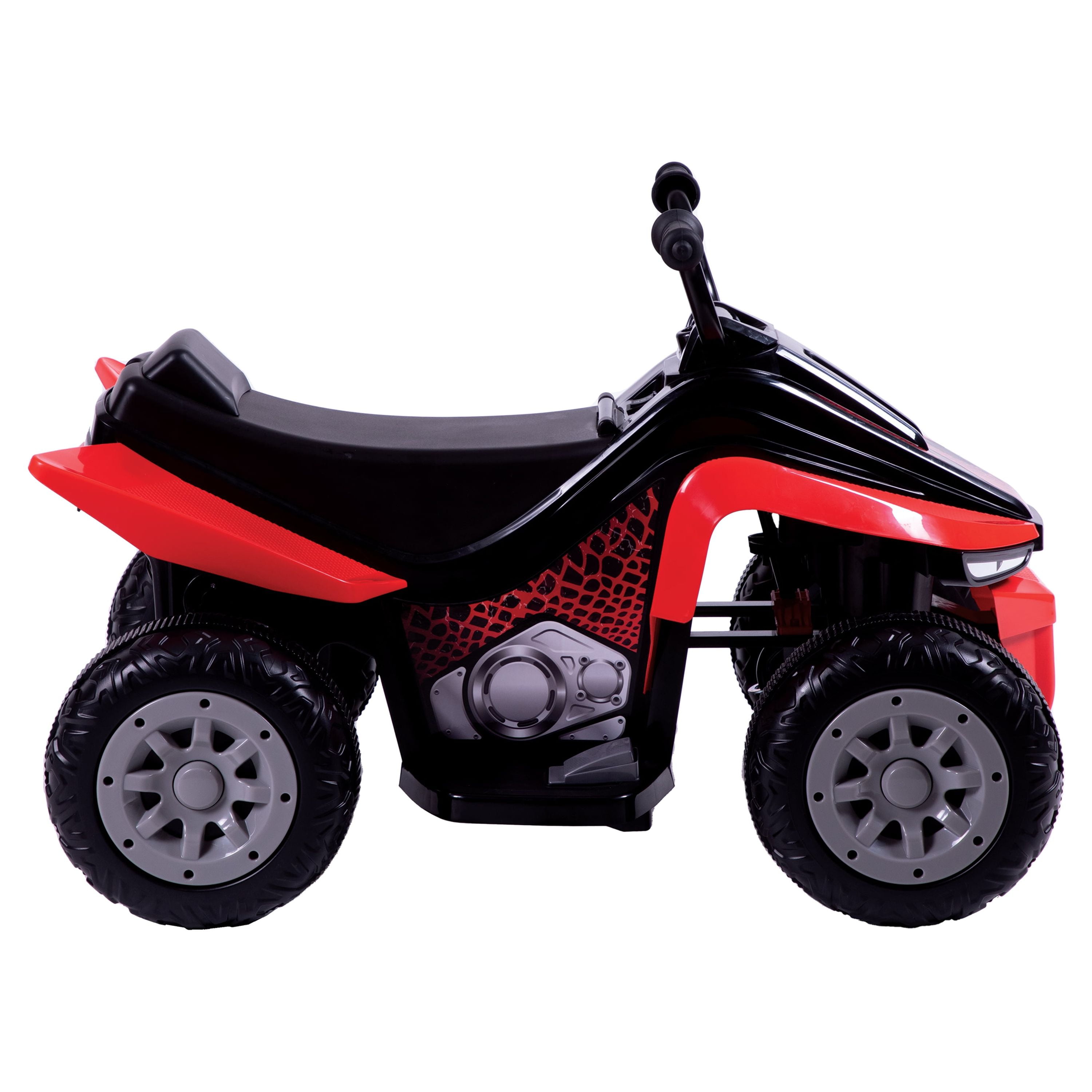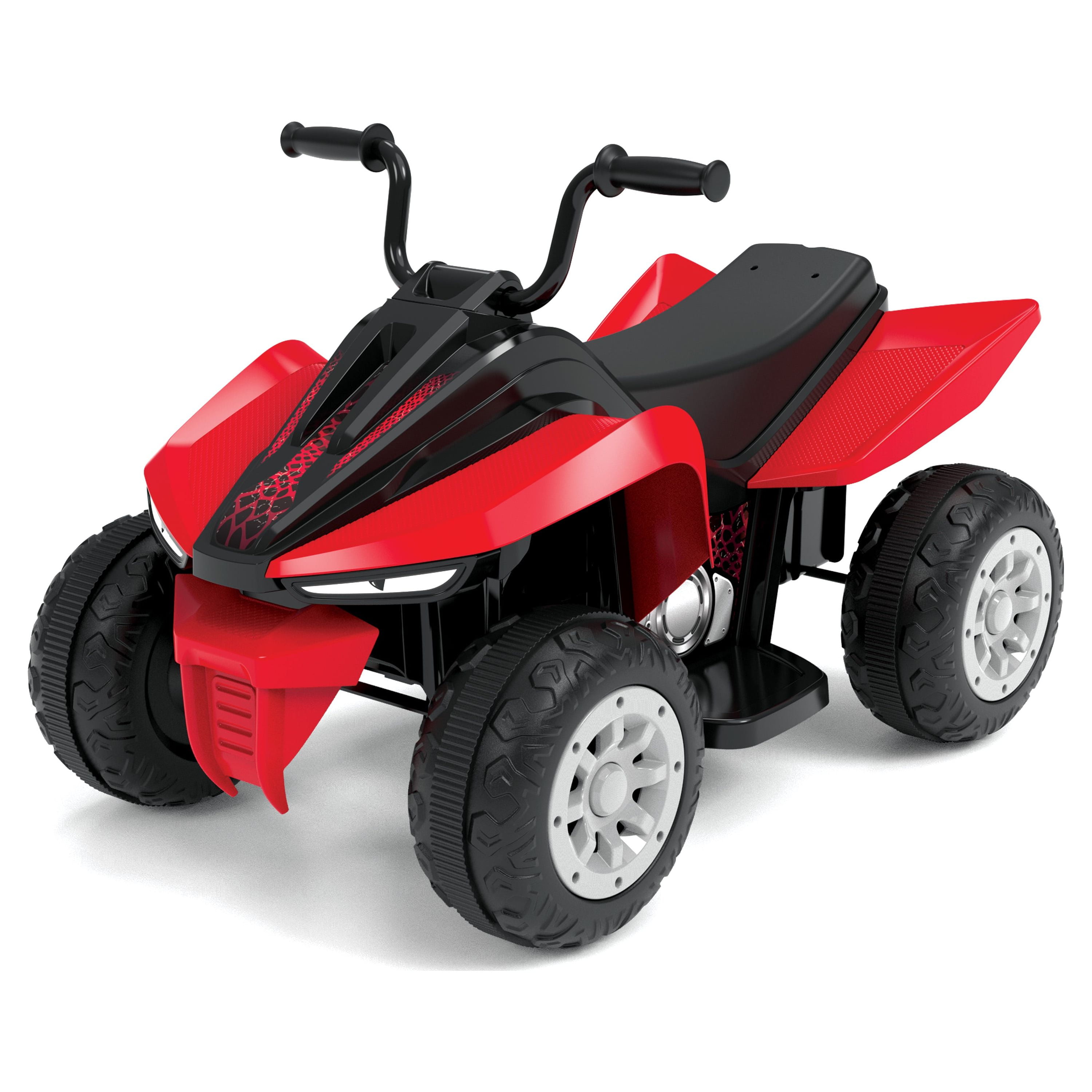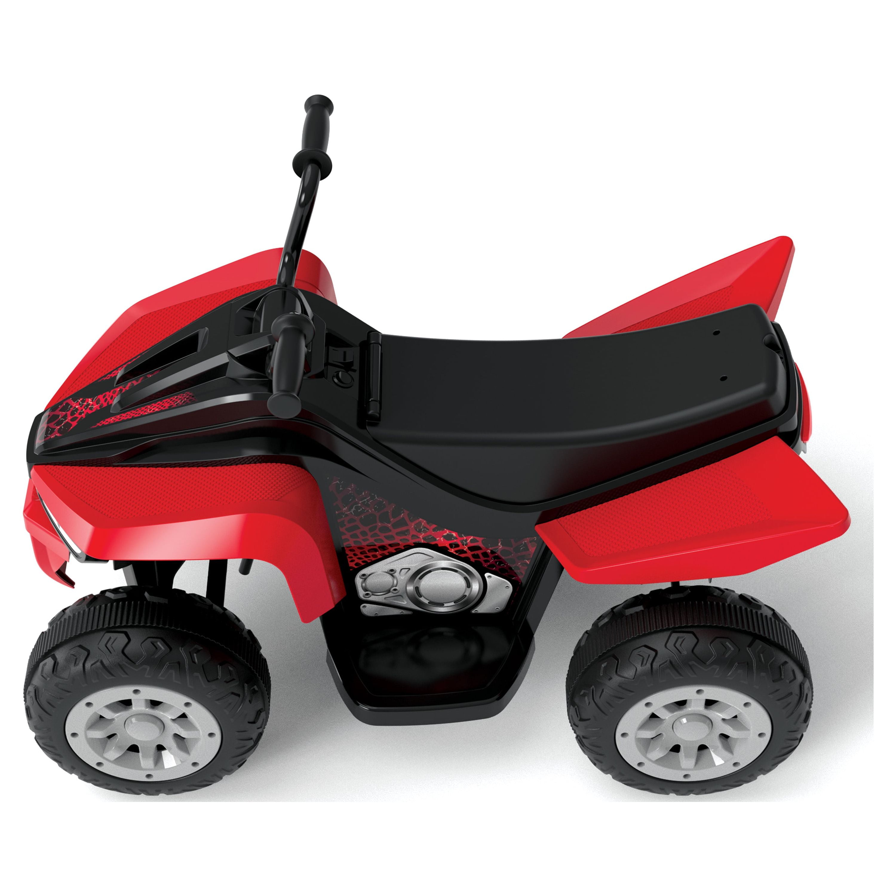The Adventure Force Cobra Quad 6 Volt Ride On ATV is a great gift for the 3-6 year old in your life. It has extra-large 10-inch wheels with a rubber grip on the driven wheel to help kids conquer the sidewalk. With super cool snake-inspired styling and a max speed of up to 3 mph, this toy will quickly become the favorite transportation mode of the young kid in your life. Features include a forward and reverse, a 6V rechargeable battery and charger, steel handlebars, and a long seat to fit a wide range of ages from 3 to 6 years old, up to the 66lb weight limit. This product is not recommended for use on grass or hills. It performs best on flat hard surfaces like sidewalks and private driveways.