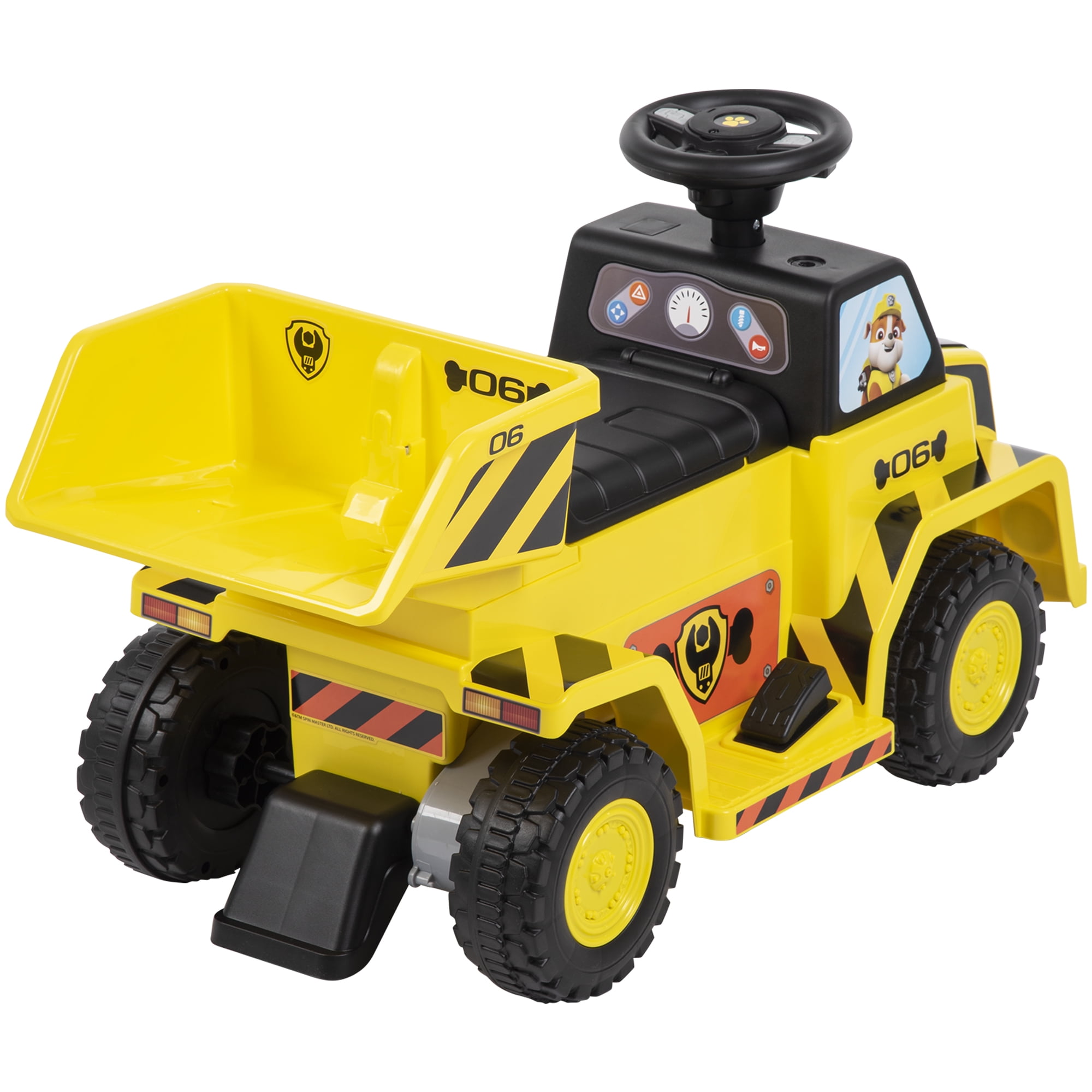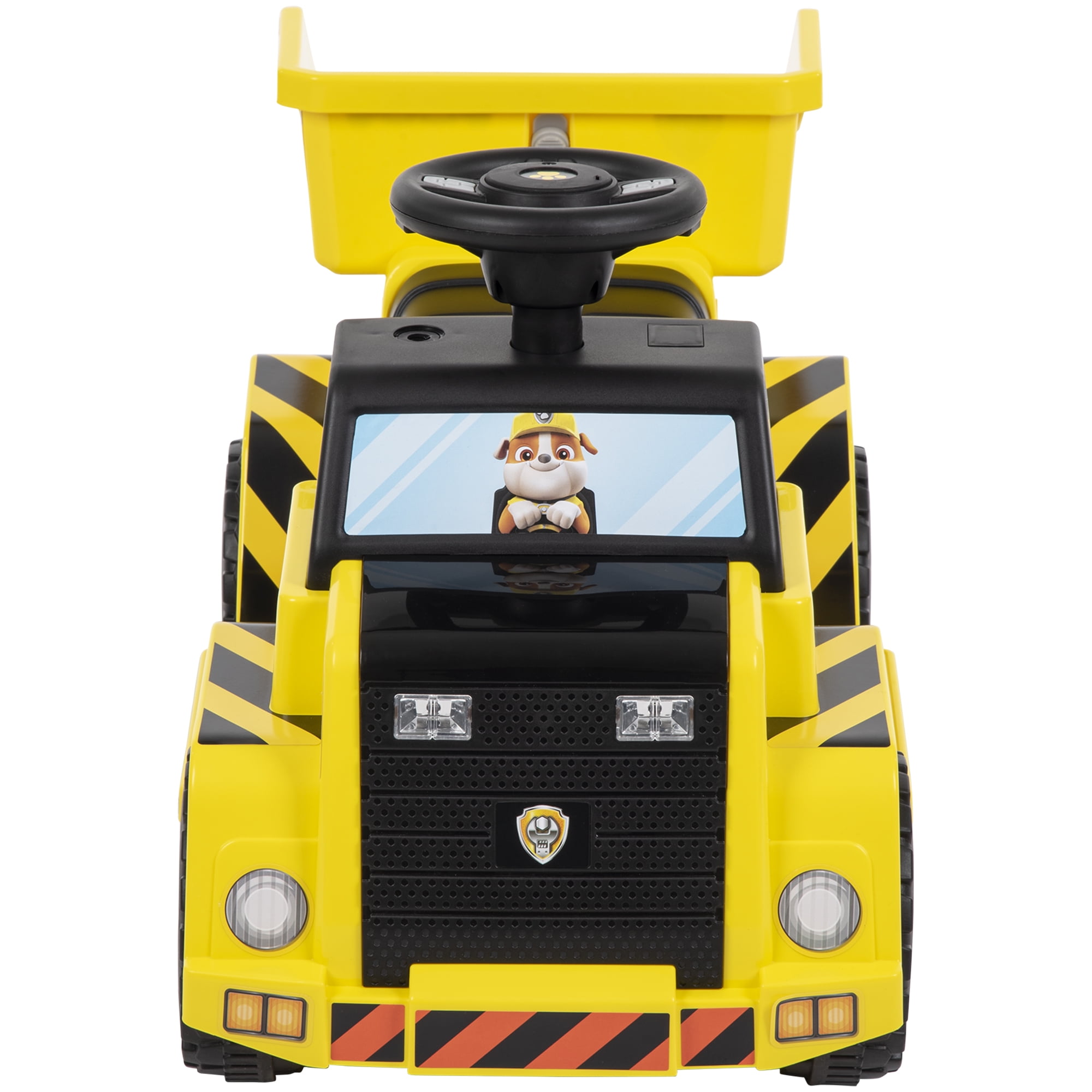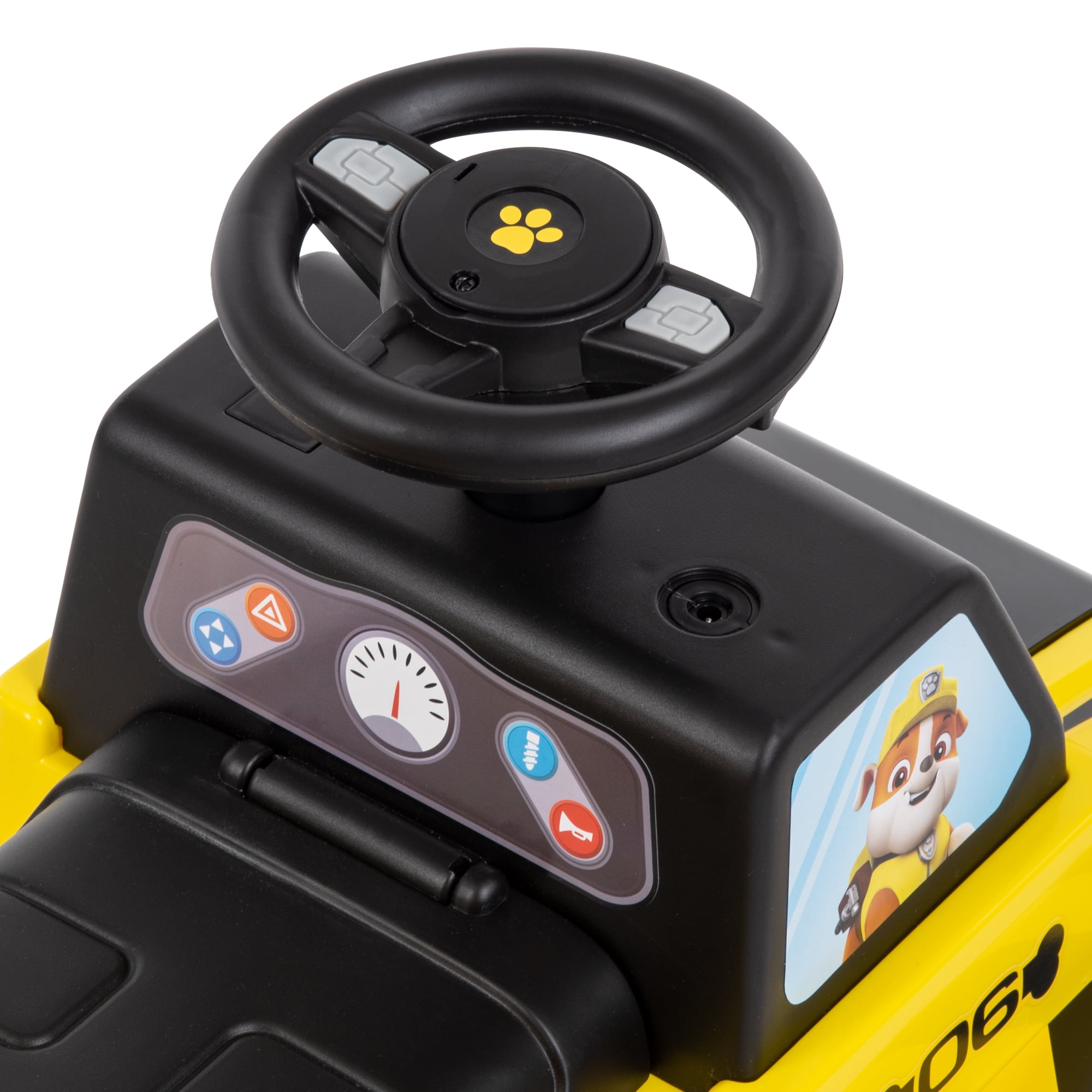 Fun: Paw Patrol Rubble graphics bring favorite characters to life. Powerful: 6-volt battery offers up to 2 MPH of speed for riders. Safe: Wide, stable wheels provide balance and control for toddlers. Easy: Push-button acceleration makes starting simple for little riders. Comfortable: Perfectly sized for toddlers aged 1.5 to 3 years Stylish: Yellow quad design inspired by Rubble’s construction vehicle. Slow: Max speed of 2 mph for safe, controlled riding adventures.