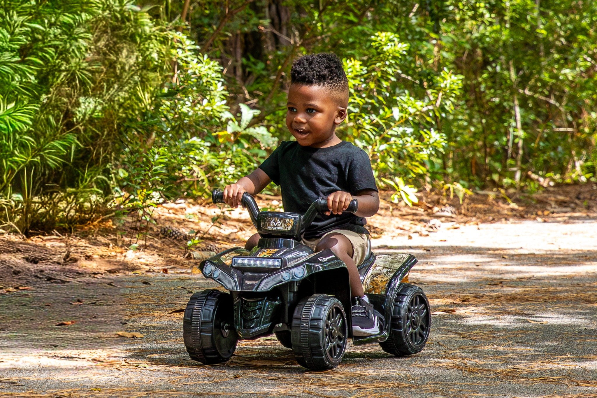 Authentic Realtree Camo Pattern and Graphics 6 Volt Ride-On for Rider 18 Months to 3 Years and Under 40 lbs Easy Push Button Acceleration with 2.5 MPH Max Speed Includes Working Front Light Bar One Year Limited Warranty