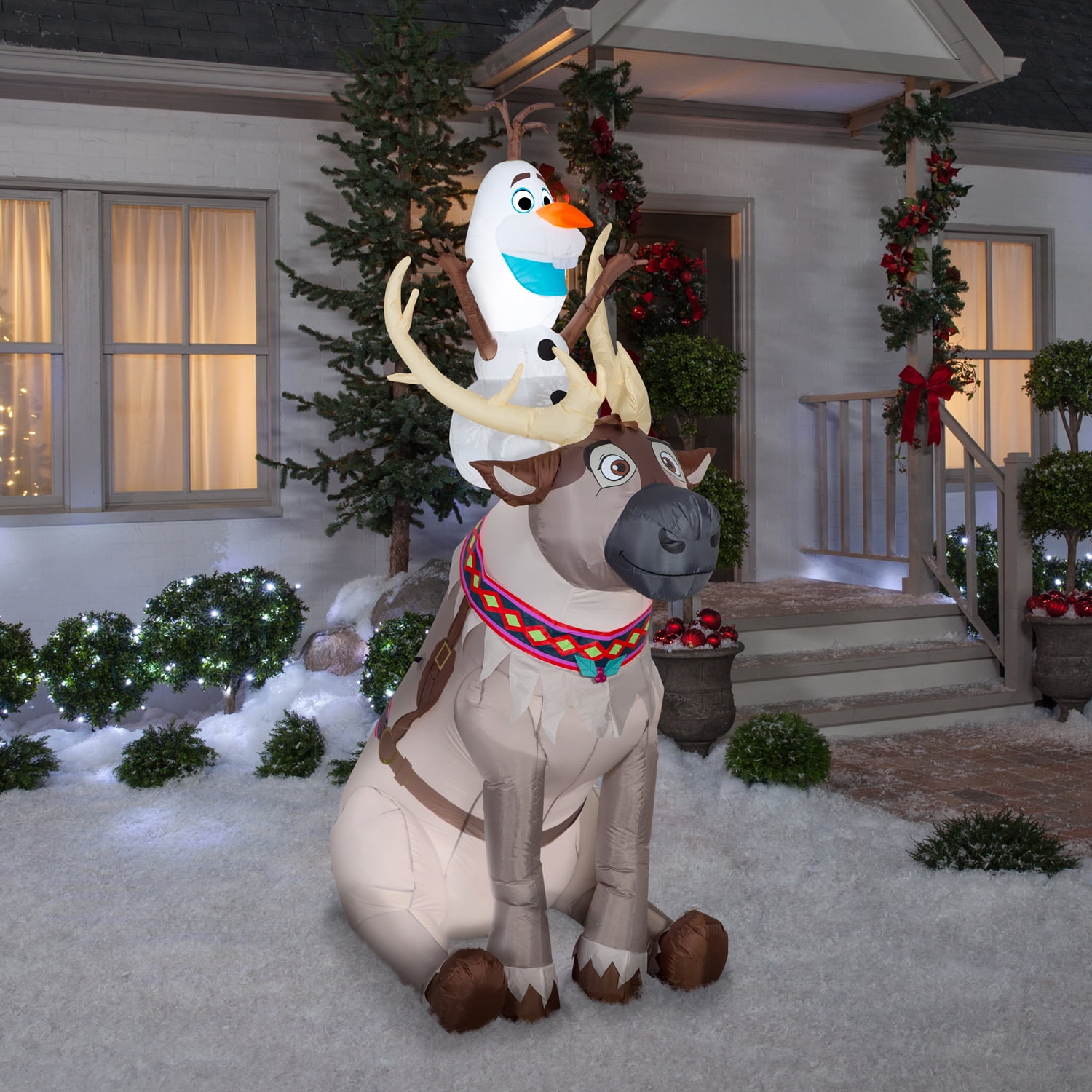 7.5 ft. H Christmas Disney Disney Olaf Sitting on Sven Scene