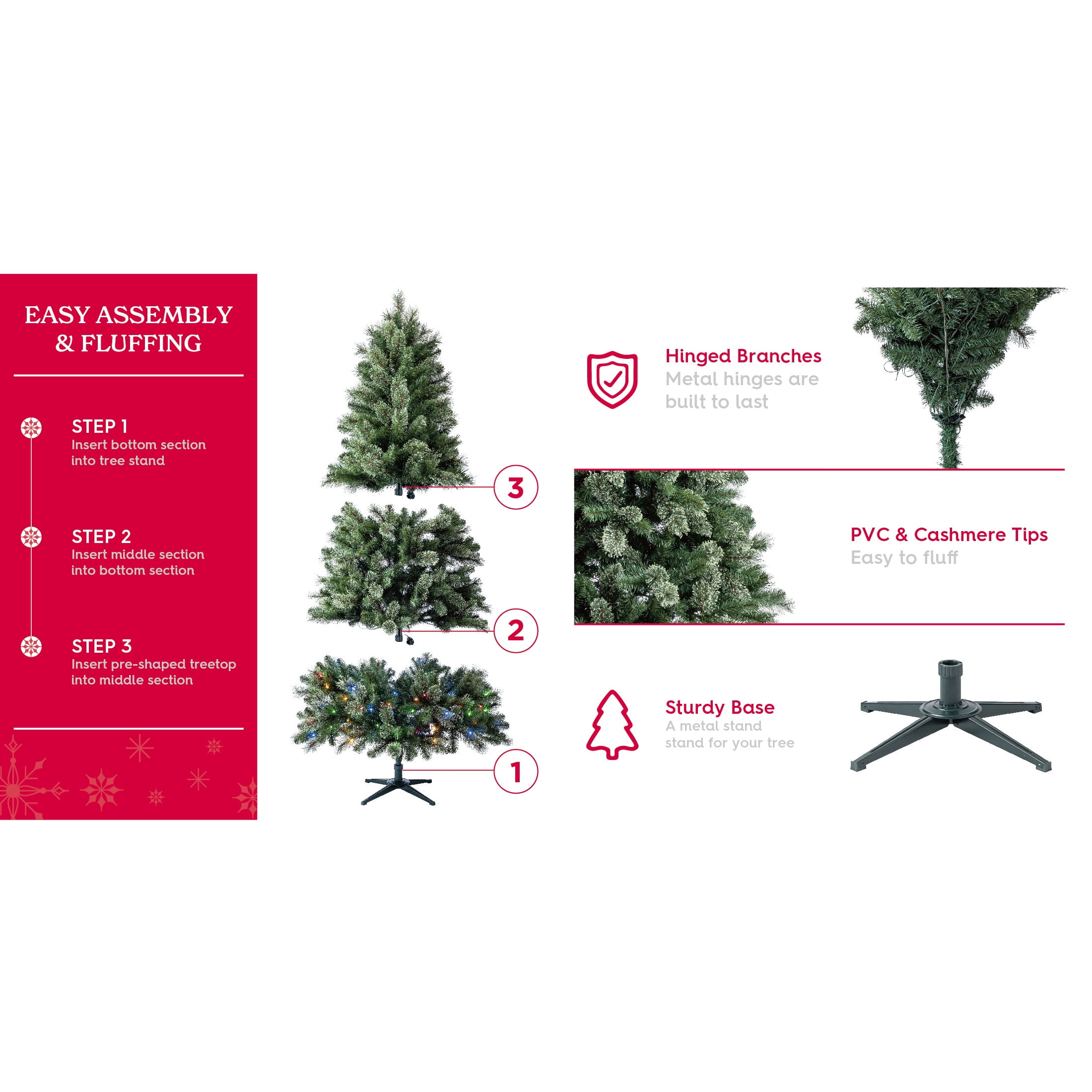 The Holiday Time 7.5-Foot Pre-Lit Liberty Cashmere Pine Artificial Christmas Tree with 300 Color-Changing LED Lights and Stand is a gorgeous option for your festive period. With the Quick Set feature, this artificial Christmas tree is a breeze to assemble: the lights automatically connect as each section is added. Pre-lit with 300 8-function color-changing LED lights, it creates a dazzling display. The 1,059 mixed cashmere branch tips showcase a soft texture and beautiful slightly frosted look. On top, there is a sturdy branch ideal for any tree topper you choose. To secure your tree, there is an included metal stand. The Holiday Time 7.5-Foot Pre-Lit Liberty Cashmere Pine Artificial Christmas Tree with 300 Color-Changing LED Lights and Stand offers a grand and majestic presence that will delight you all season.