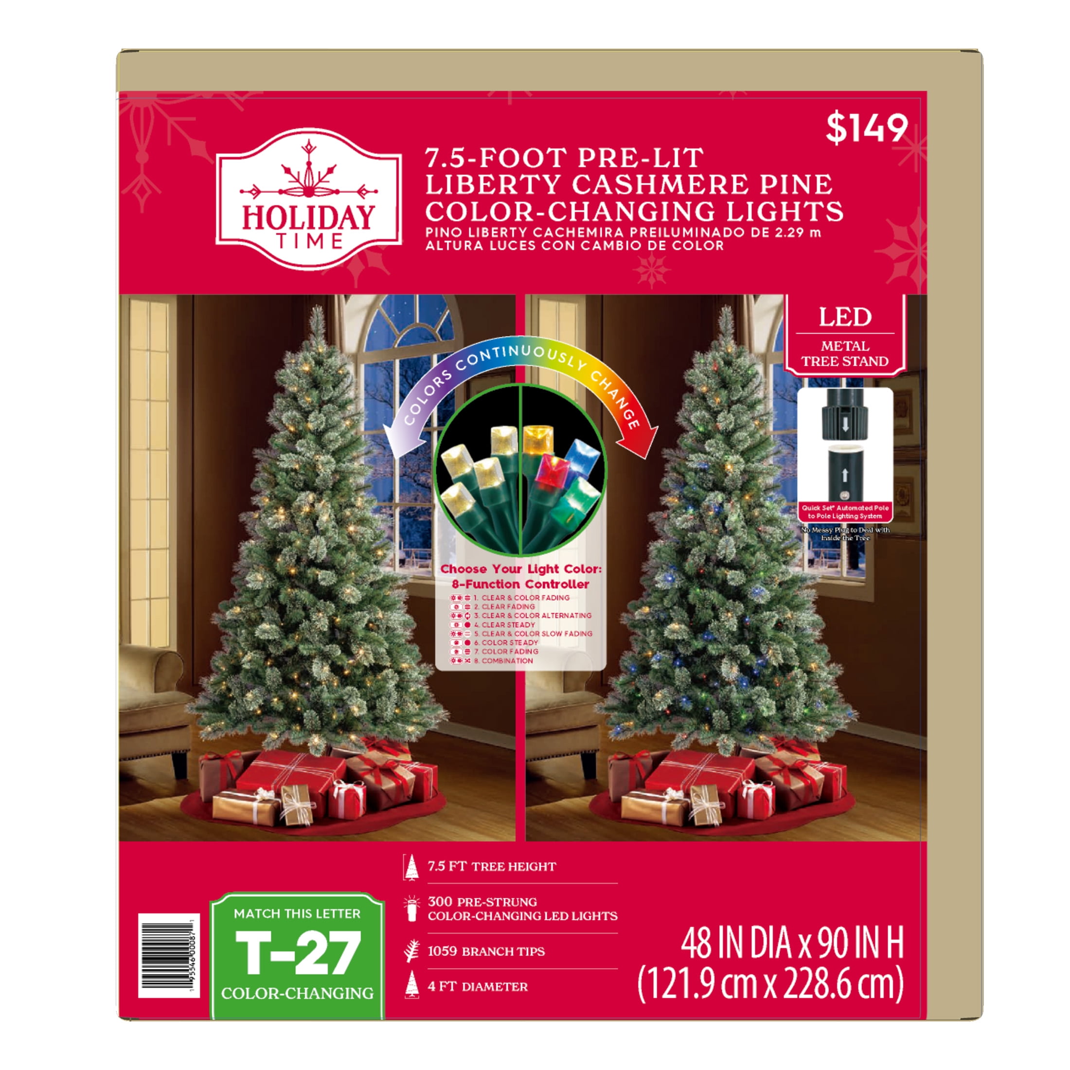 7.5 ft Pre-Lit Liberty Cashmere Pine Artificial Christmas Tree with 300 Color-Changing LED Lights and Stand, by Holiday Time