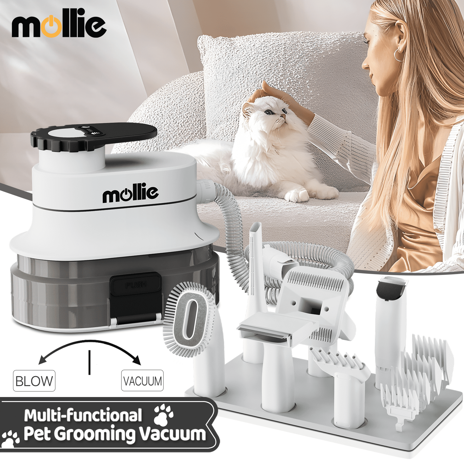 7-in-1 Pet Grooming Kit & Pet Grooming Vacuum Suction 99% Hair, Low Noise Pet Vacuum Cleaners for Pet Hair, Pet Grooming with 5 Proven Grooming Tools, Brush/Deshede/Trim/Collect Pet Hair