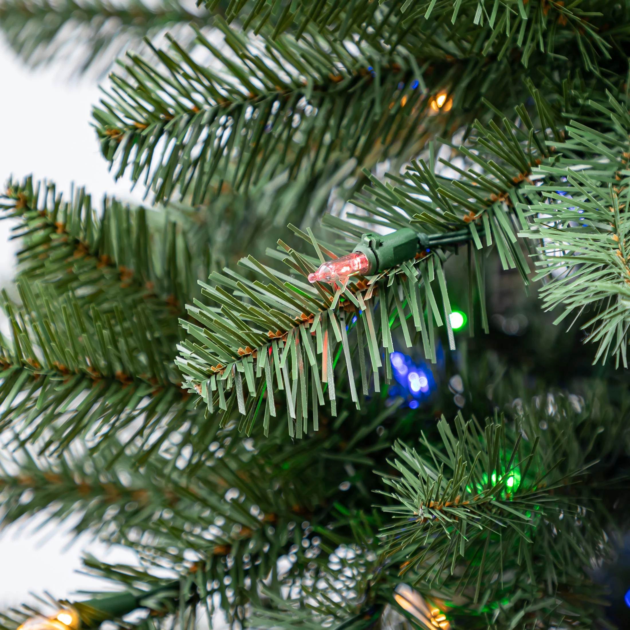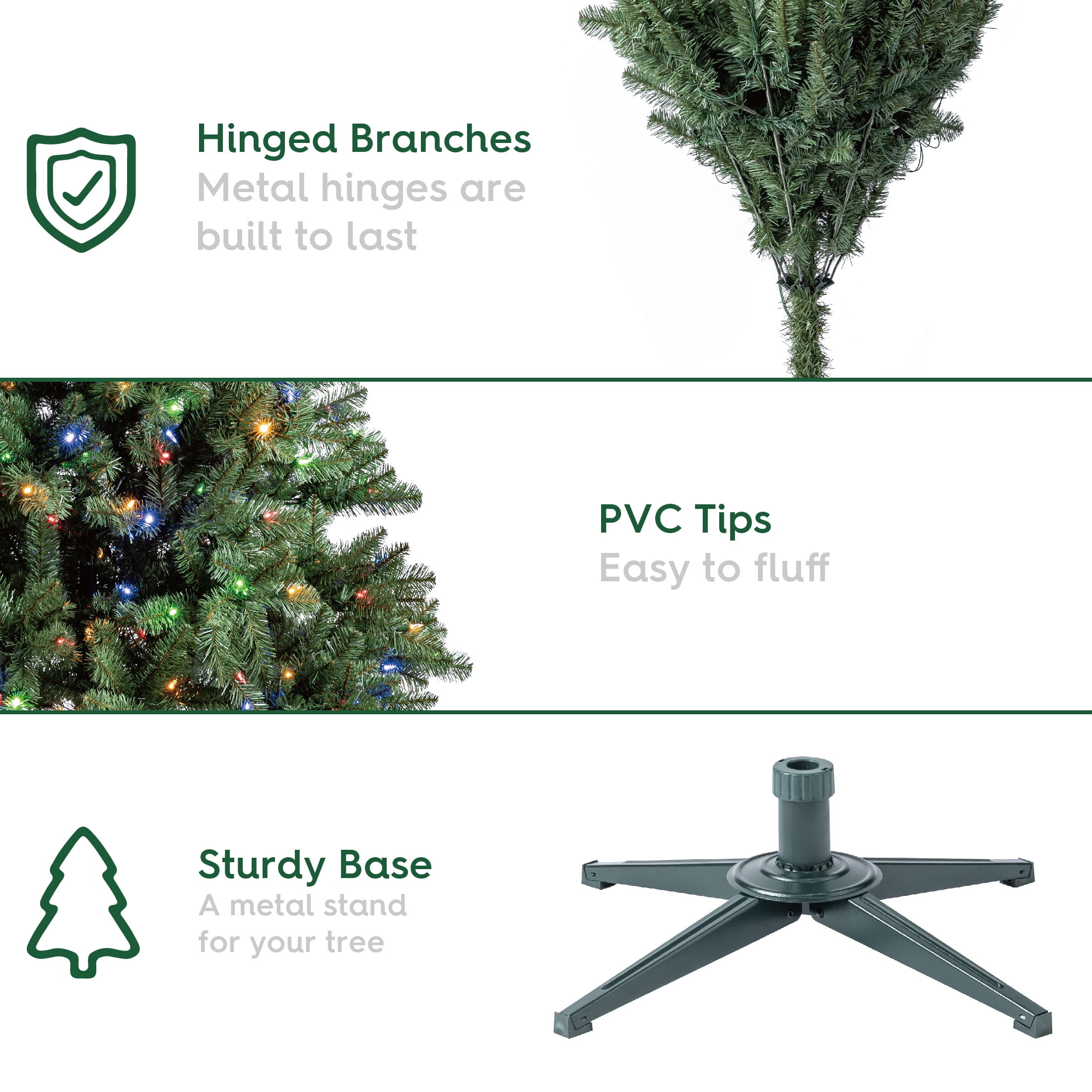 The Holiday Time 7ft Pre-lit Duncan Fir artificial Christmas tree is a stunning addition to your home. The Quick Set feature makes setup easy– just slide the tree sections together and the lights will turn on once you plug it into power. Pre-lit with 8-function 350 color-changing LED lights, it will brighten any space with cheer. The lights stay lit even if one goes out thanks to the SureBright™ light feature. With 1,066 branch tips, you have plenty of space for decorating. There is also a top branch that is perfect for any tree topper to stand proudly. This artificial fir tree includes a sturdy metal stand, ensuring it stays upright all season. Gather your family and friends around the Holiday Time 7ft Pre-lit Duncan Fir artificial Christmas tree for a spectacular holiday together.