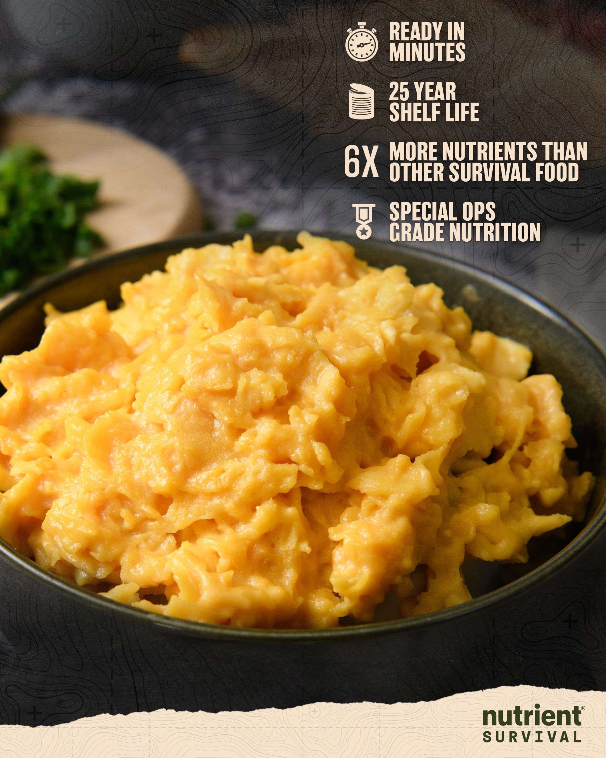 FEED YOUR FREEDOM: Jump-start your day with Nutrient Survival Vitamin Egg Blend Powder. Just add water to get your powdered eggs ready to be used directly on the stove or in your favorite recipe. Nutrient dense, equivalent to 70 whole eggs per can SPECIAL OPS GRADE NUTRITION: Our soy & gluten free whole egg powder is made with real eggs, and is packed with 33 nutrients in each serving. These freeze dried eggs are a staple survival food for every prepper’s pantry UP TO 25 YEAR SHELF LIFE: Nutrient Survival makes snacks and ready to eat meals that last for years without losing their taste. The freeze-drying process locks in nutrients, preserving the natural taste. No artificial colors, flavors or preservatives PRIME YOUR PREP: Our ready to eat meals make great prepper food and emergency food supplies. For natural disasters, earthquakes, camping supplies, hiking or any challenging situation, we ensure optimal nutrition during times of crisis GO-TO NUTRITION WHEN NEEDED: Nutrient Survival foods are American born and made, ensuring the best, healthiest and supremely delicious nutrition. Perfect for times of stress, a quick snack, elevating performance, travel, prepper supplies or living off-the-grid