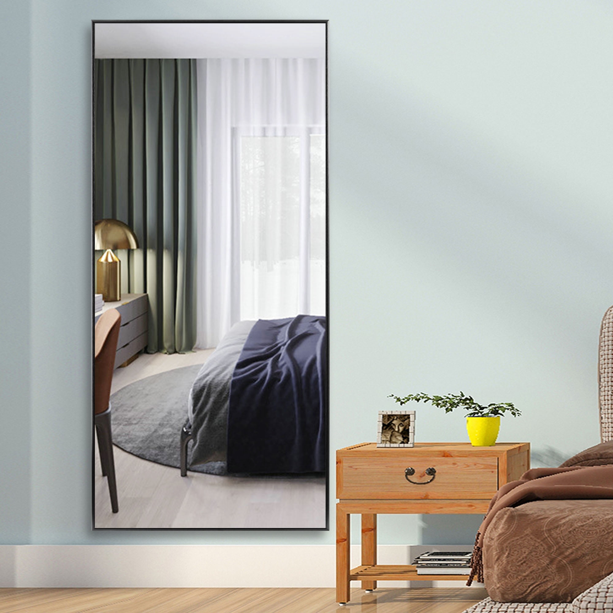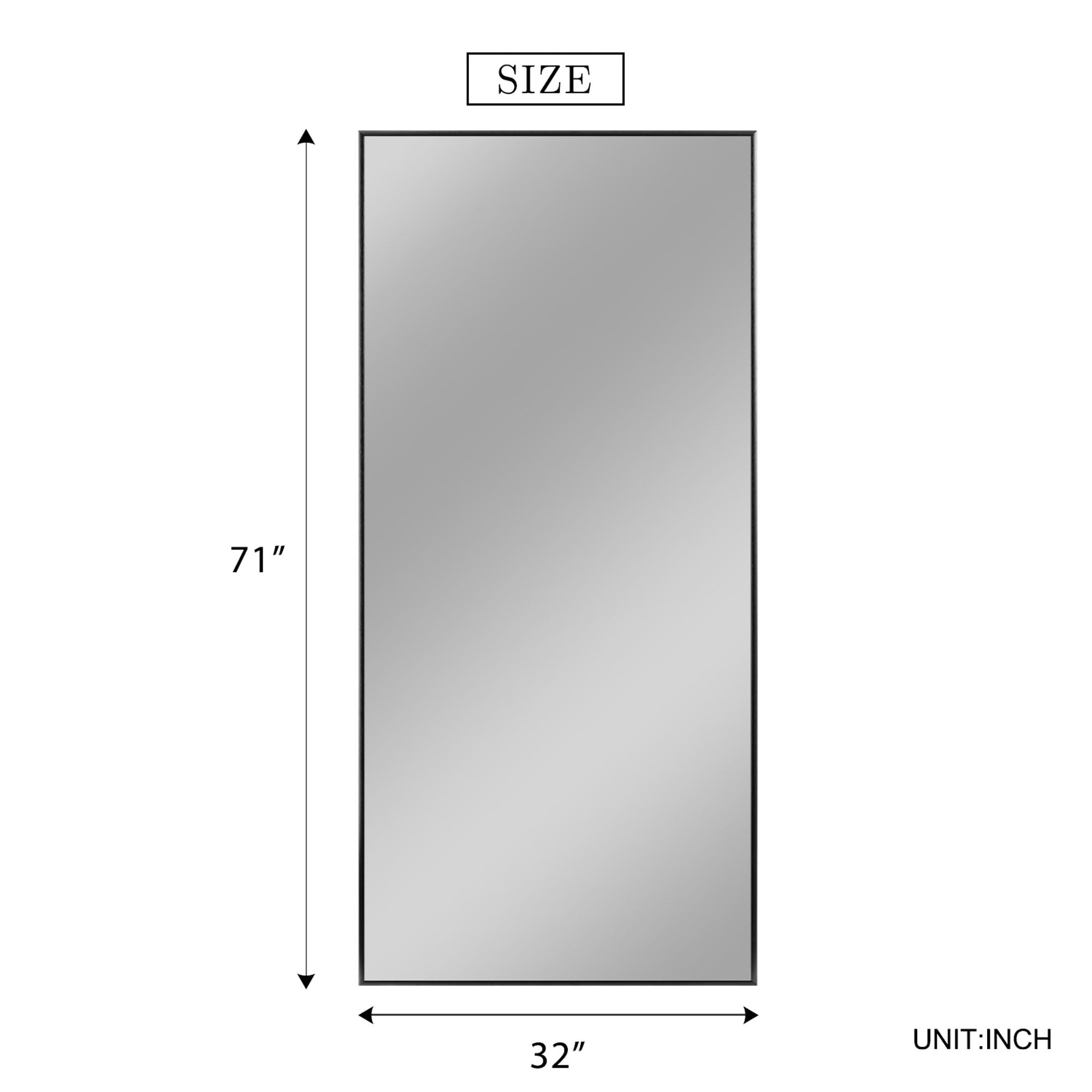 MIRROR SIZE: Height: 70″, Length: 30″. Perfect size to place it in bedrooms, bathrooms, living rooms, and entryways. EXQUISITE WORKMANSHIP: The full body mirror is made of high-quality aluminum alloy frame, which is durable and has a shiny appearance. The sides of the floor mirror are smooth. We have added an explosion-proof membrane to prevent the mirror from being broken and hurting people. We use multiple packing materials to pack the floor mirror to protect the mirror. EASY TO INSTALL: The floor mirror is easy to install, we have attached an installation manual in the box, and you can install it easily according to the installation instructions. HD Imaging: The floor mirror glass is high-definition and is clear with great reflective value with no distortion. The full length mirror uses high definition imaging to truly restore and reflect the real world. High transparency glass and quality silver coating will also give you a good image on top. Designed with simplicity and precision, rectangle frame, clean and sleek surface, aesthetic styling, with tight black alloy frame, perfect for both vintage and modern style environments. MULTIPLE PLACEMENT METHODS: The floor mirror can be leaned against the wall anywhere. The full length mirror can be hung on the wall horizontally or vertically as a wall mounted mirror.