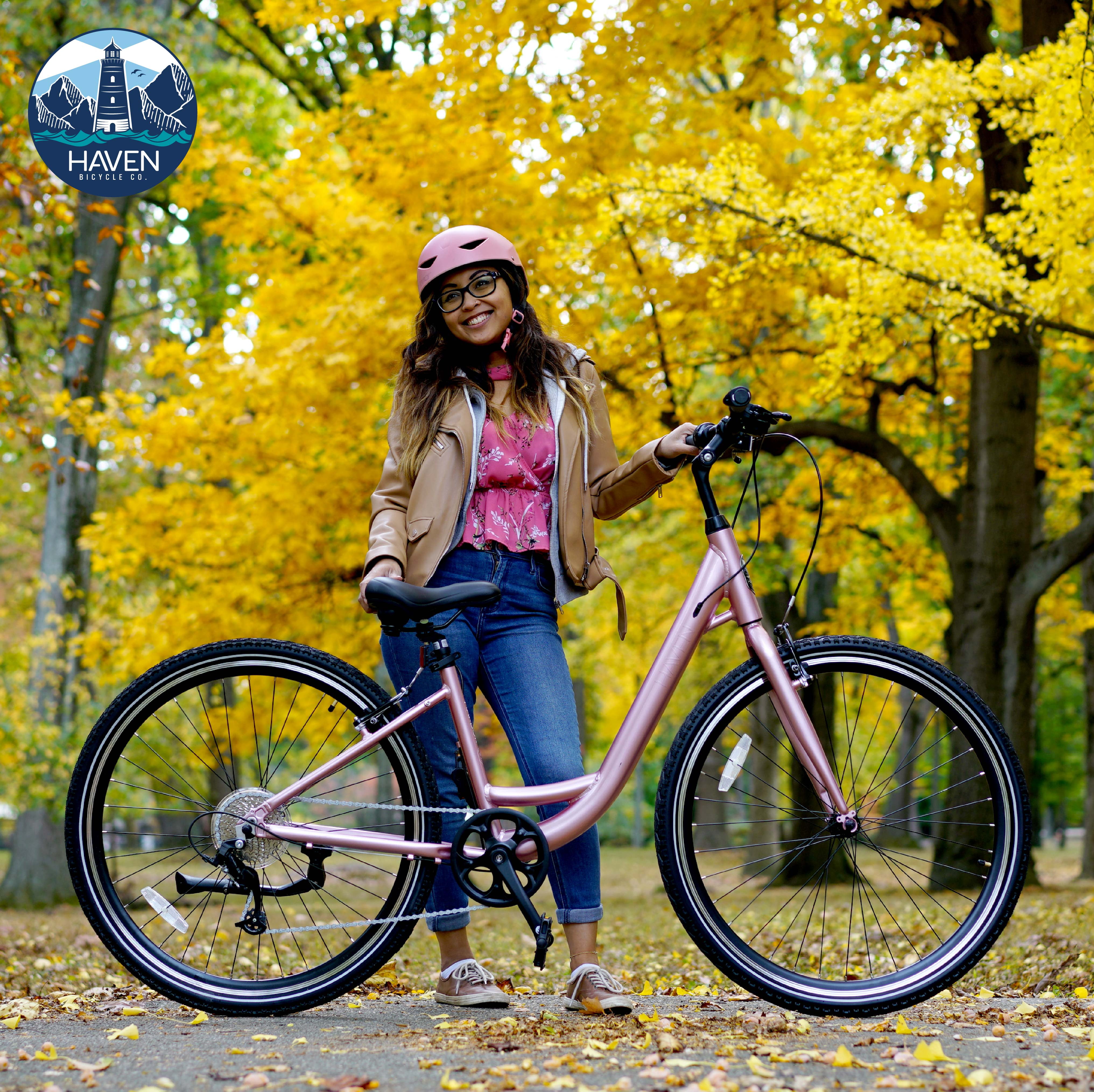 700c Haven Harbor 8 Step-Thru Beach Cruiser Bicycle, Dusty Rose, Small