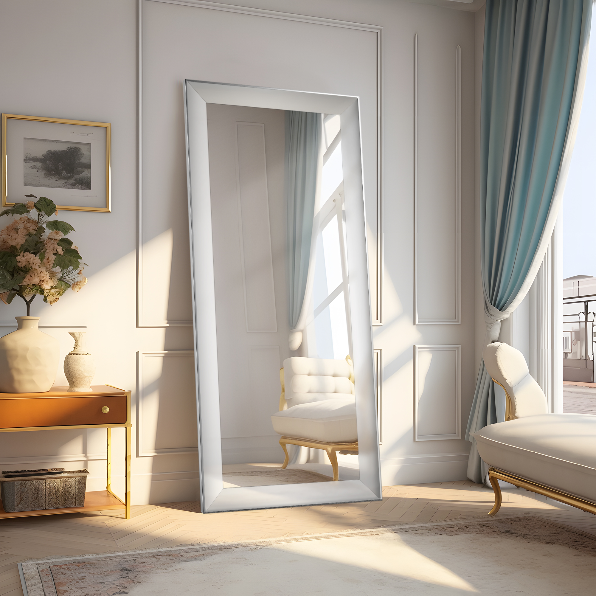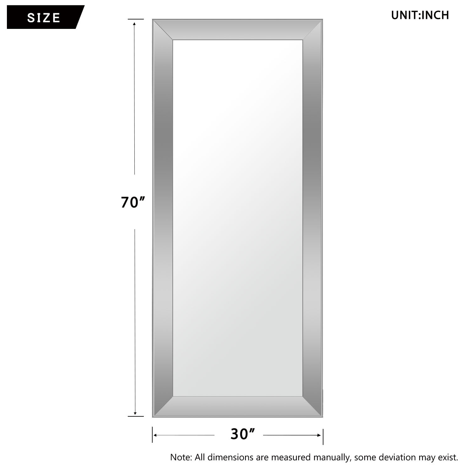 70″x30″ Large Floor Mirror PS Framed Wall Mounted Mirror,Sliver