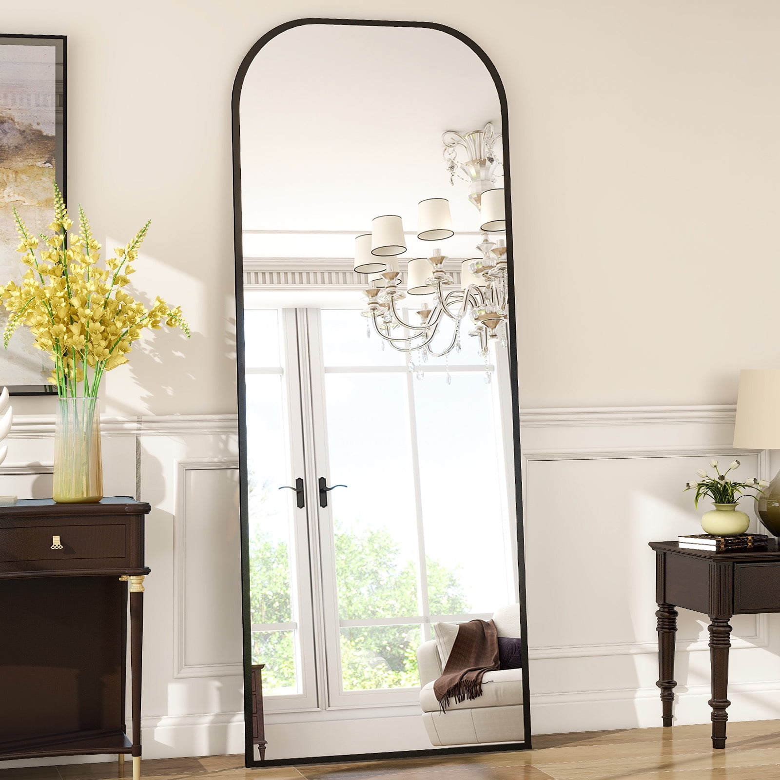 PS FRAME:The ps frame is made of ps material.Not only add to the beauty of this Large Round Mirror,but also double as a protective bumper,and this will make the wall mirror last longer. SAFE&EASY INSTALLATION:The glass is safely inlaid and protected by the surrounding aluminum ps frame construction.With Metal Hardware Holes on the back and 2 screw sets.Wall-Mounted Mirror will offer you a simple & fast way to hang it up. HD&EXPLOSION-PROOF:The decorative mirror is coated with silver nitrate,anti-rust treatment,no oxidize and rust, more HD.Copper-free silver mirror,environmentally friendly.Shattered glass will not be spilled out even impacted by external force,more safer and protective.