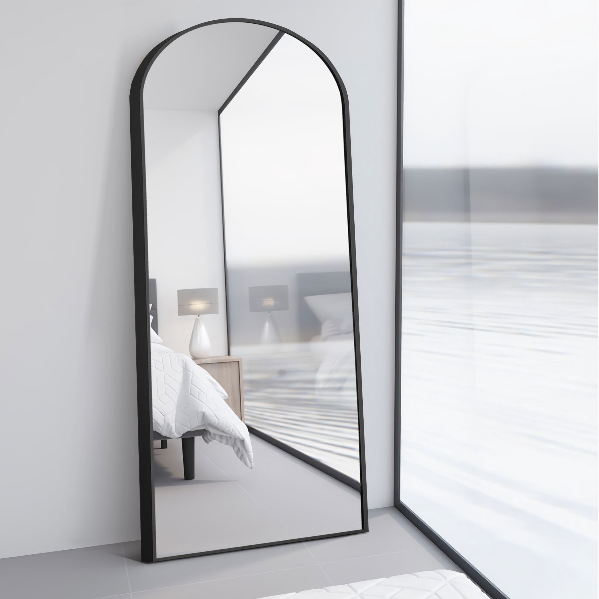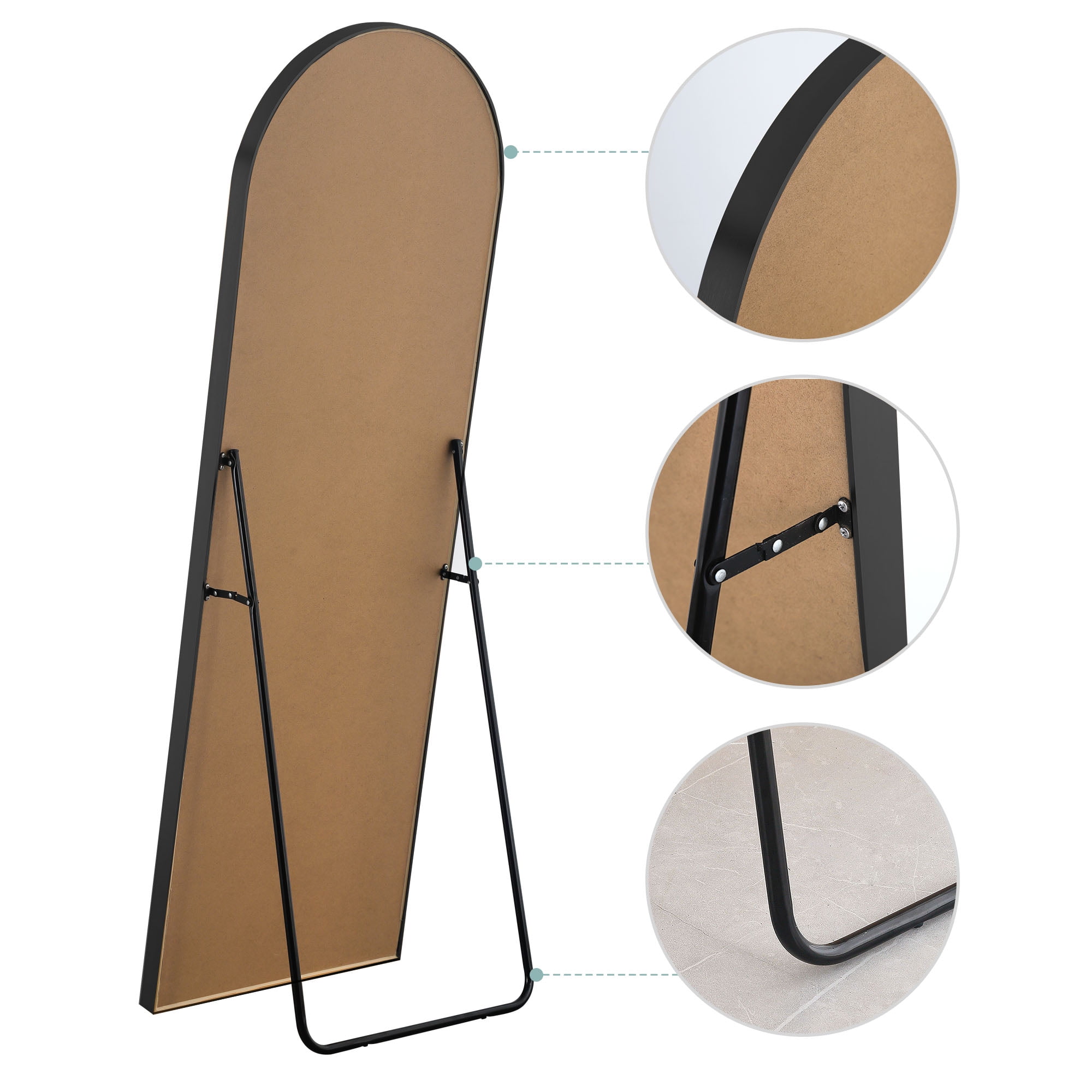 【Aluminum Alloy Frame】:This full-length mirror features an arch-crowned silhouette and ultra-aluminum alloy thin frame, complements all your home decor, and brings your room style and elegance. 【Blast-resistant Glass】:The decorative mirror is coated with silver nitrate, anti-rust treatment, no oxidize and rust, more HD. Copper-free silver mirror, environmentally friendly. Shattered glass will not be spilled out even impacted by external force, more safer and protective. 【U-shaped Bracket】: Free stand anywhere with a sturdy U-shaped bracket. Detach the bracket simply, lean against the wall. 【Arched Top Frame】: The top of the mirror is designed with a seamless arched top frame, like a door. The design will be the most eye-catching in your room. It’s not only a full length dressing mirror but also an ornament. 【Widely Use】: The full-length mirror can be freely hung on the wall, or on the floor for decor. That’s code for simple, well-designed, and wallet-friendly furniture and accessories. Find pieces for all spaces, styles, and spends across the collection, like a dressing room, bathroom, bedroom, living room dining room and entry.