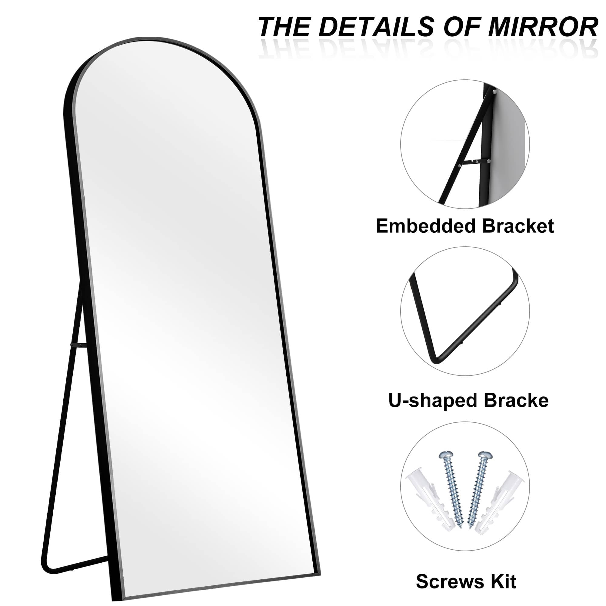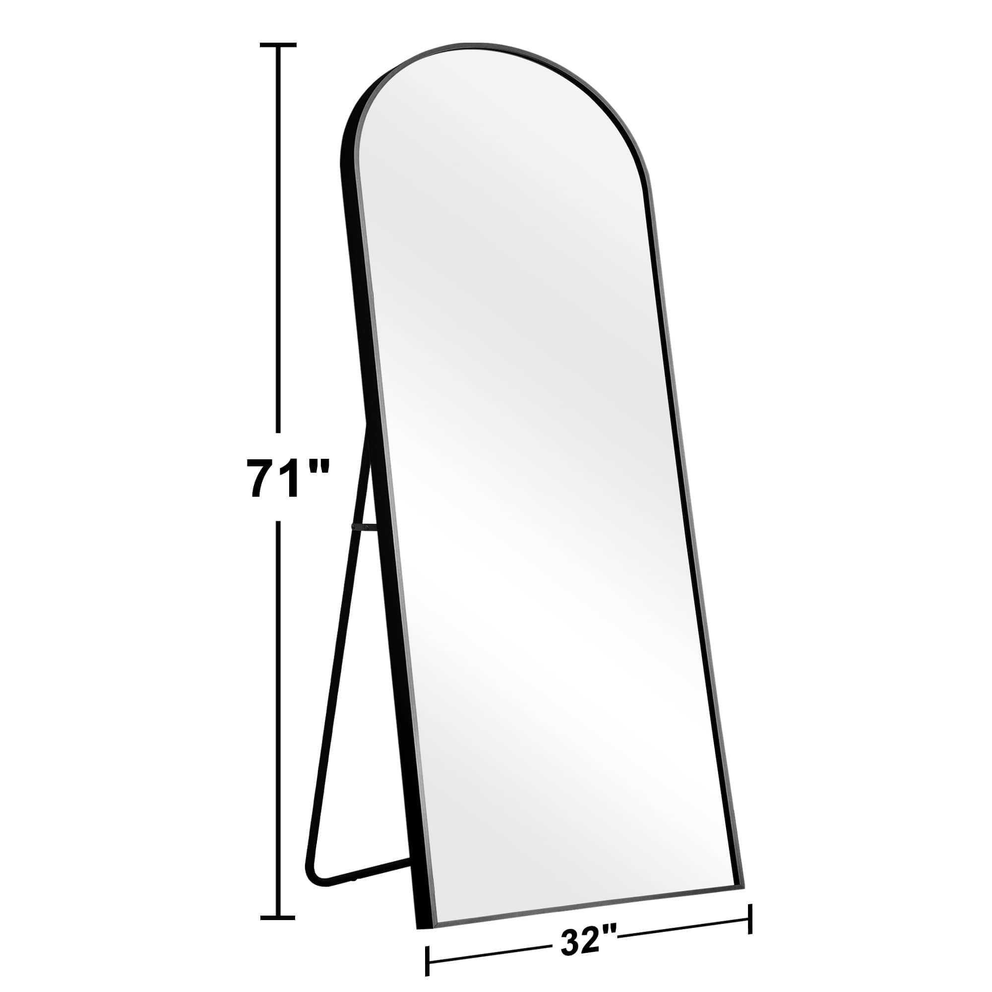 MAYEERTY 71″x32″ Arched Full Length Mirror with Stand, Aluminum Alloy Frame Large Mirror for Bedroom, Black
