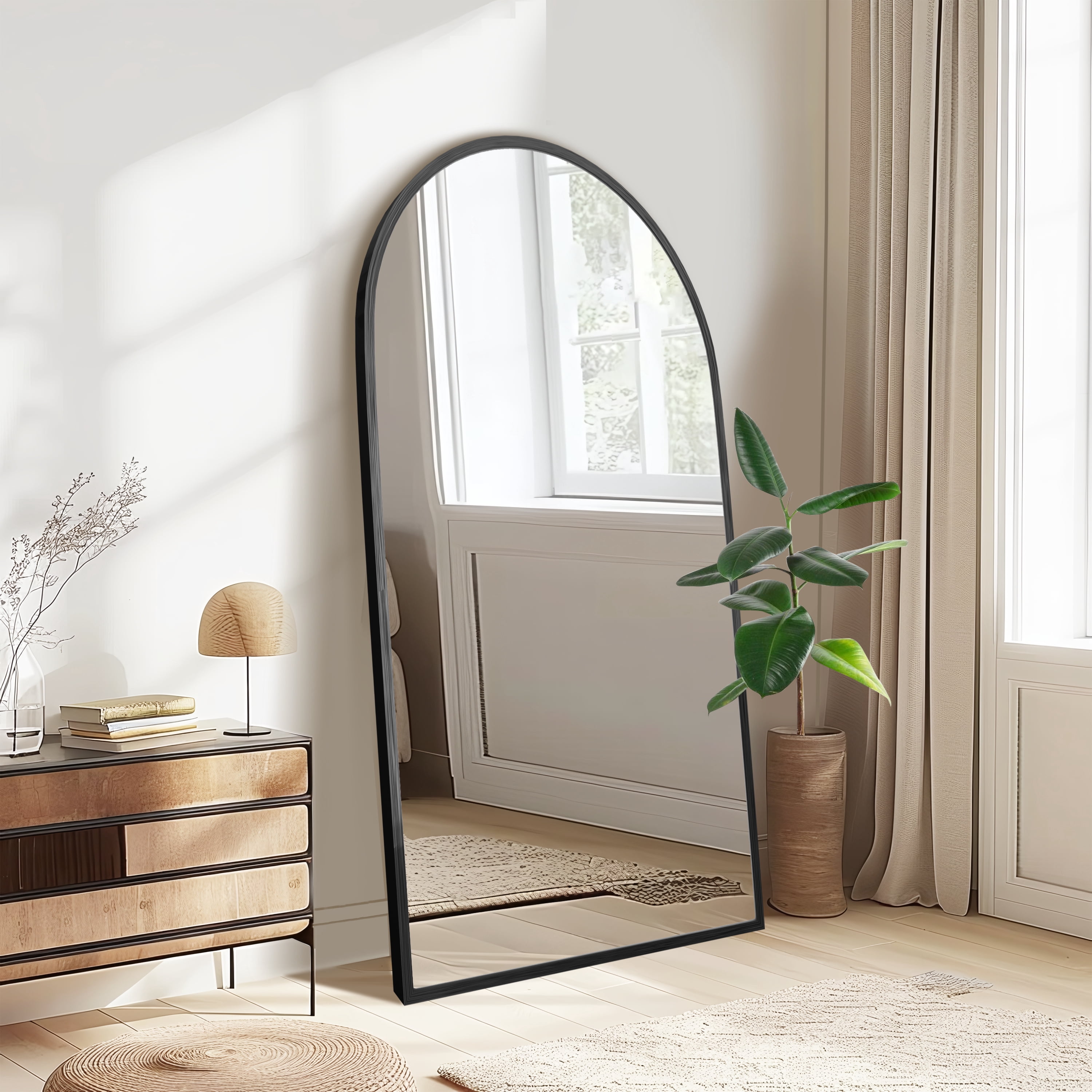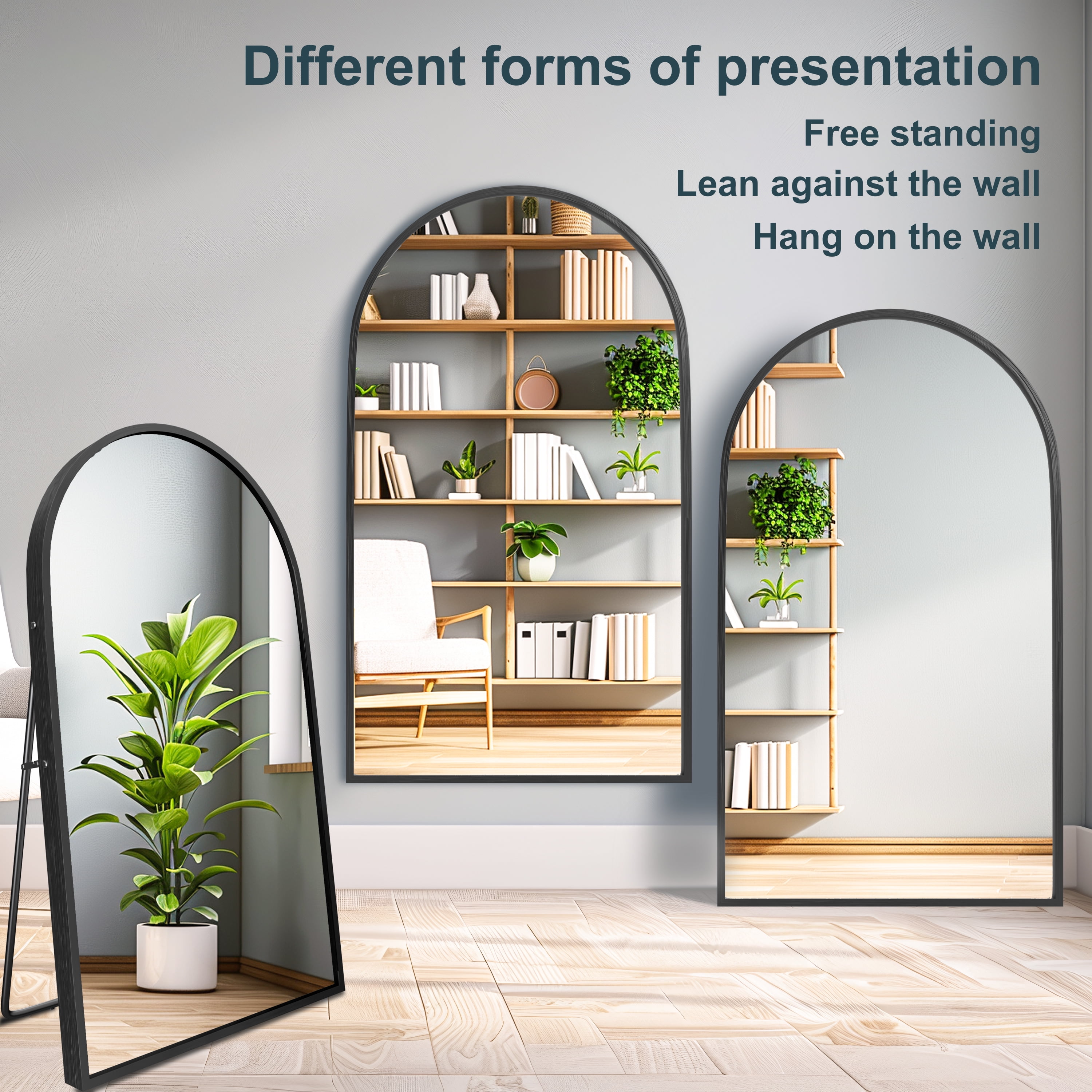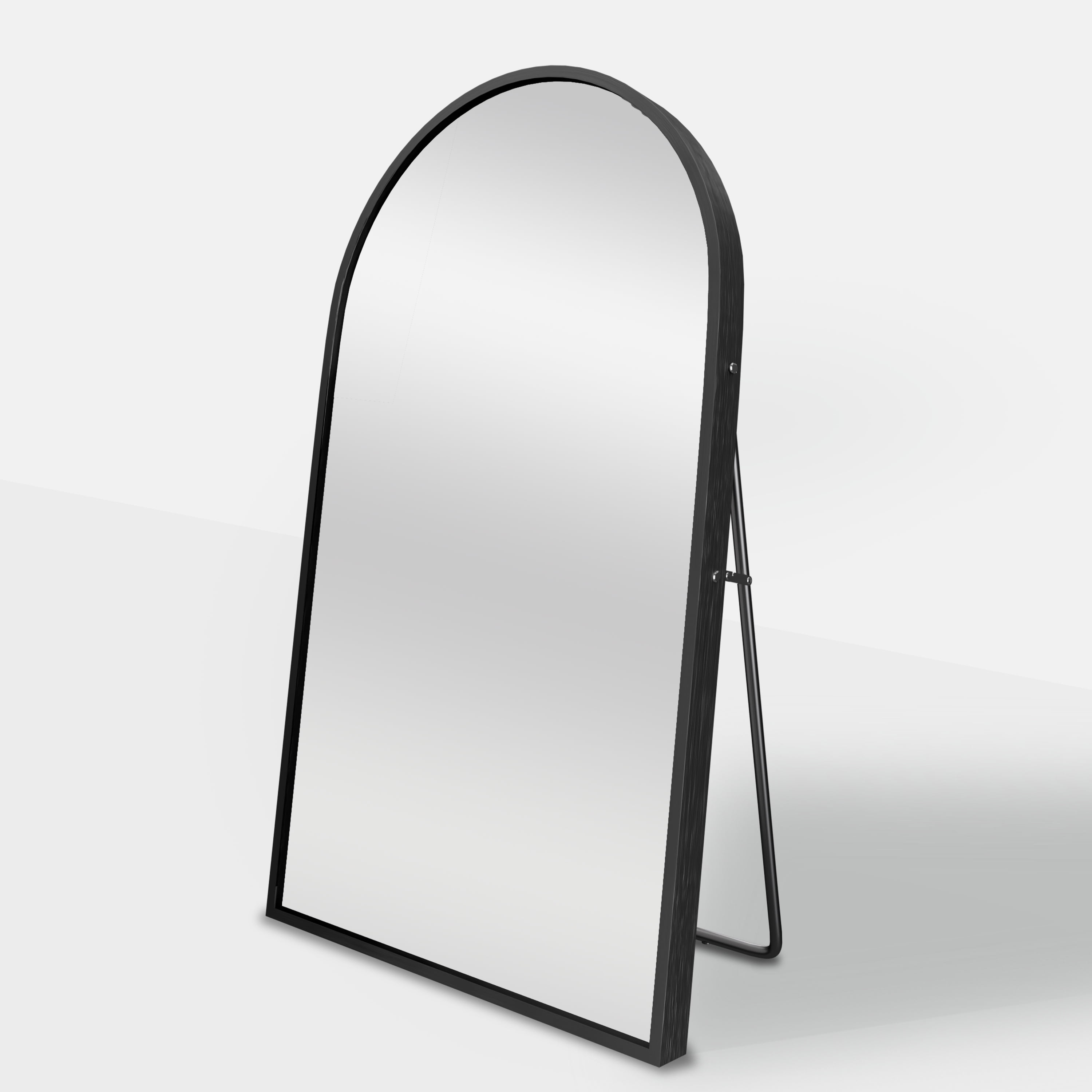 【Aluminum Alloy Frame】:This full-length mirror features an arch-crowned silhouette and ultra-aluminum alloy thin frame,complements all your home decor,and brings your room style and elegance. 【Blast-resistant Glass】:The decorative mirror is coated with silver nitrate,anti-rust treatment,no oxidize and rust, more HD.Copper-free silver mirror,environmentally friendly.Shattered glass will not be spilled out even impacted by external force,more safer and protective. 【U-shaped Bracket】: Free stand anywhere with a sturdy U-shaped bracket.Detach the bracket simply, lean against the wall.