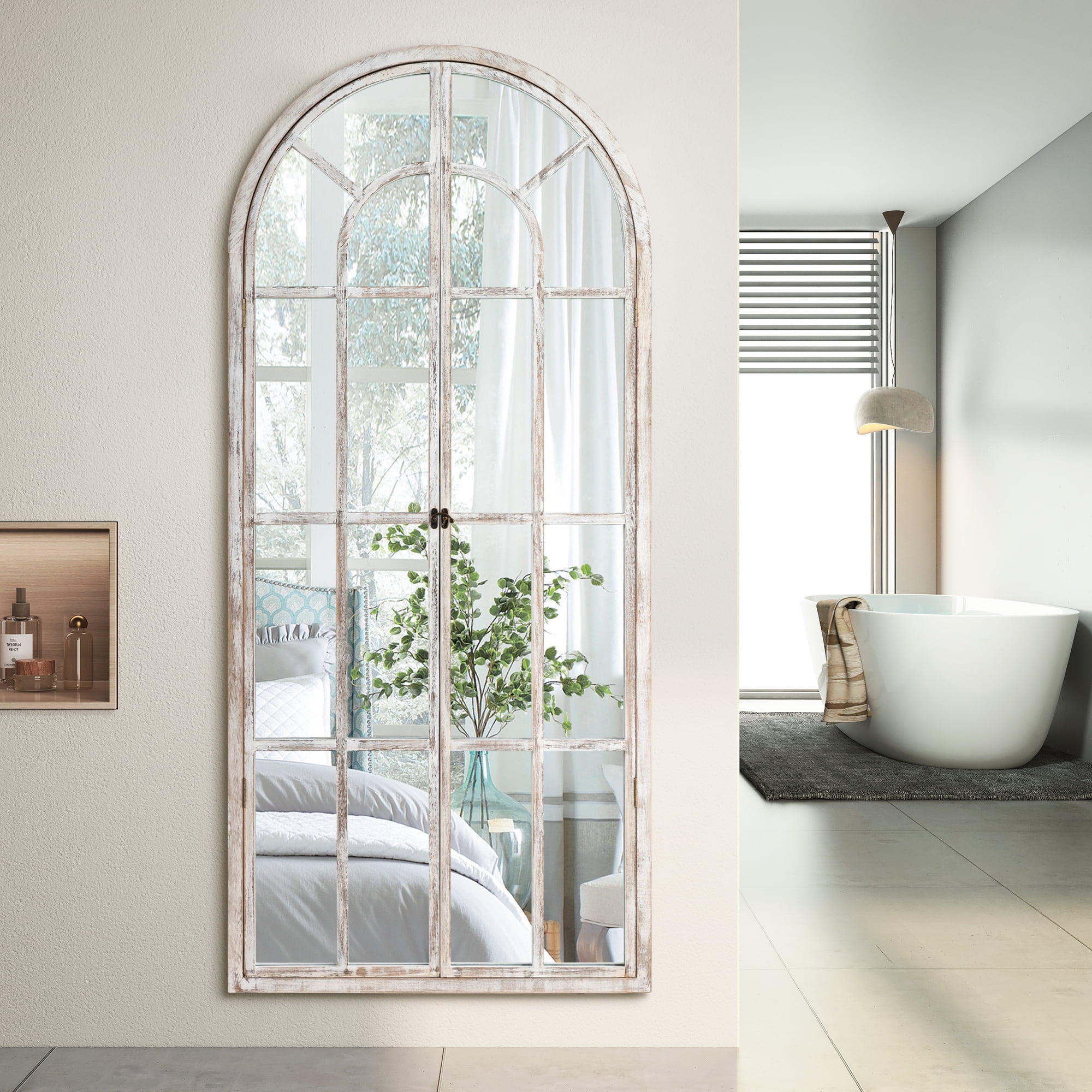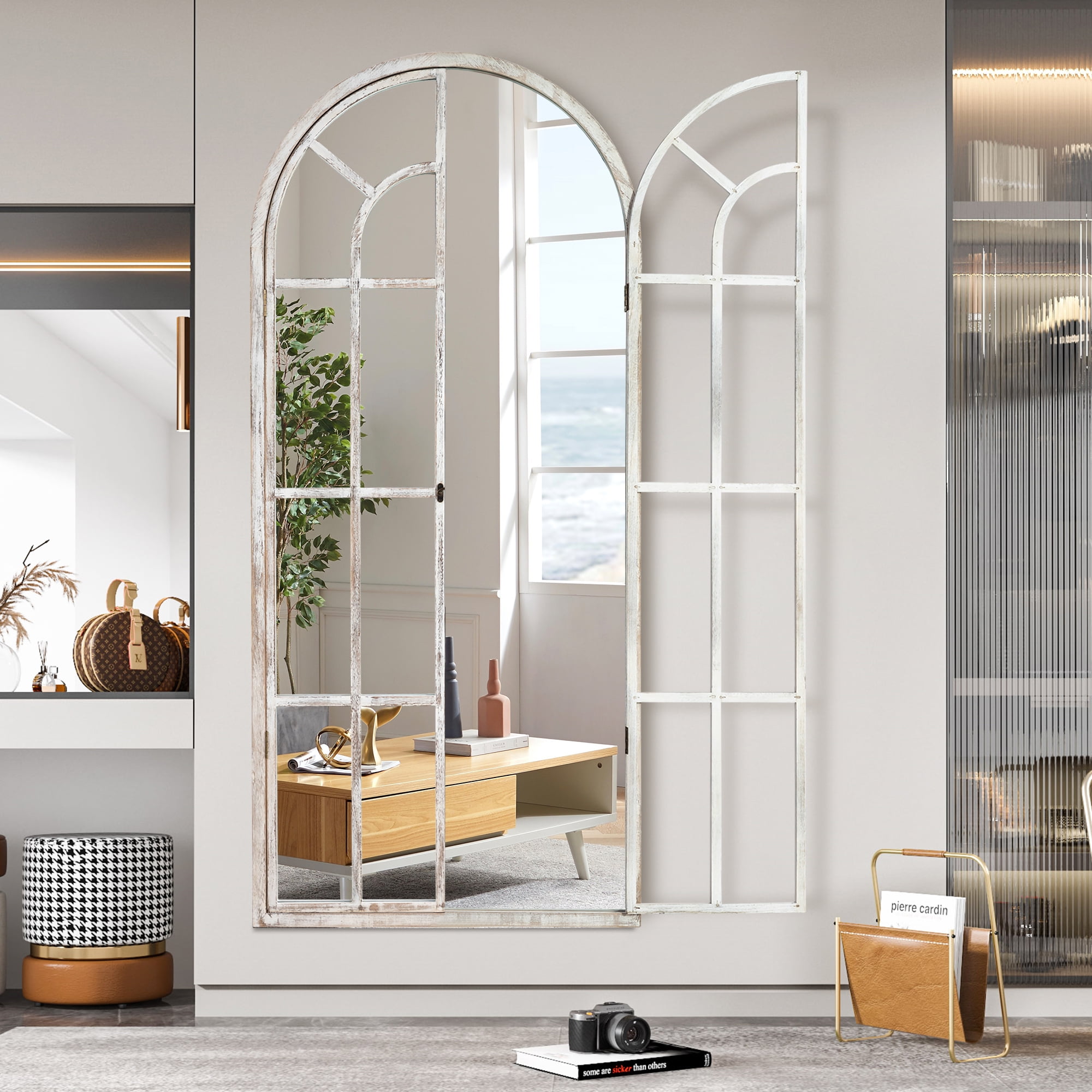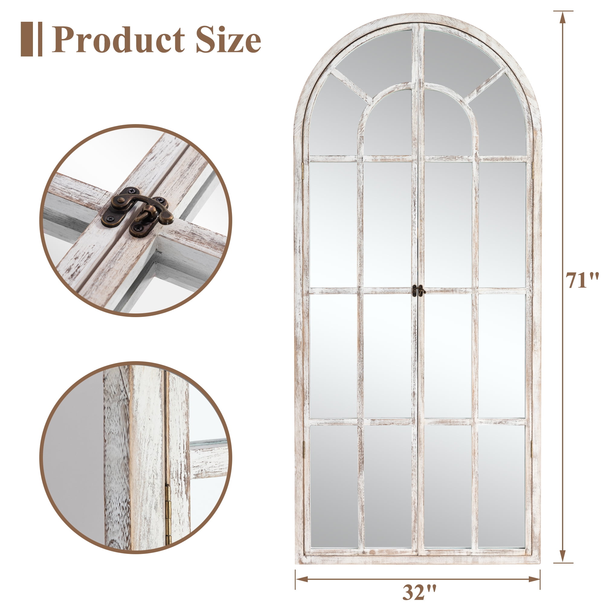 71″x32″ Modern Arched Foldable Window Mirror Full Length Mirror Floor Mirror,Weathered White