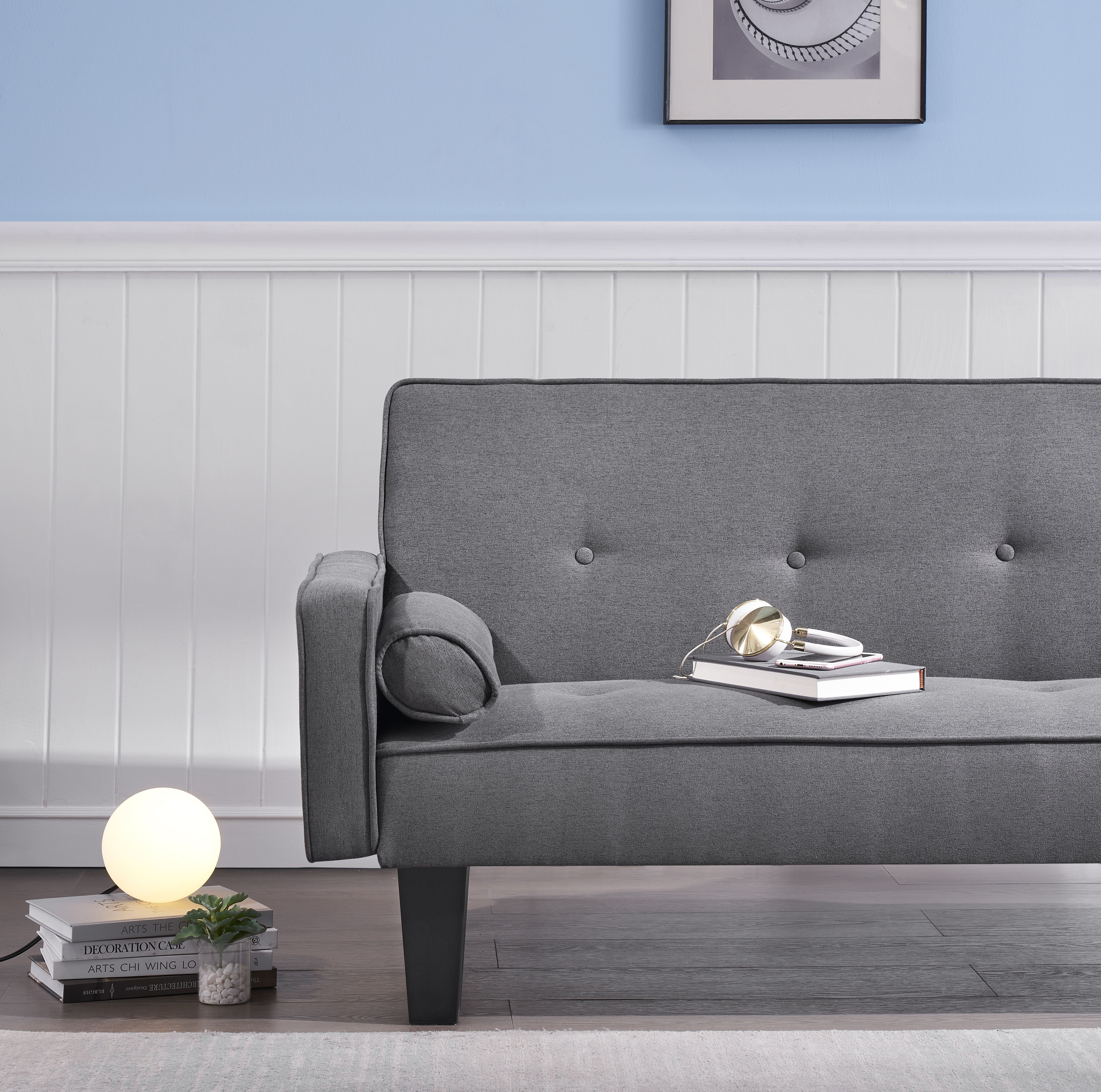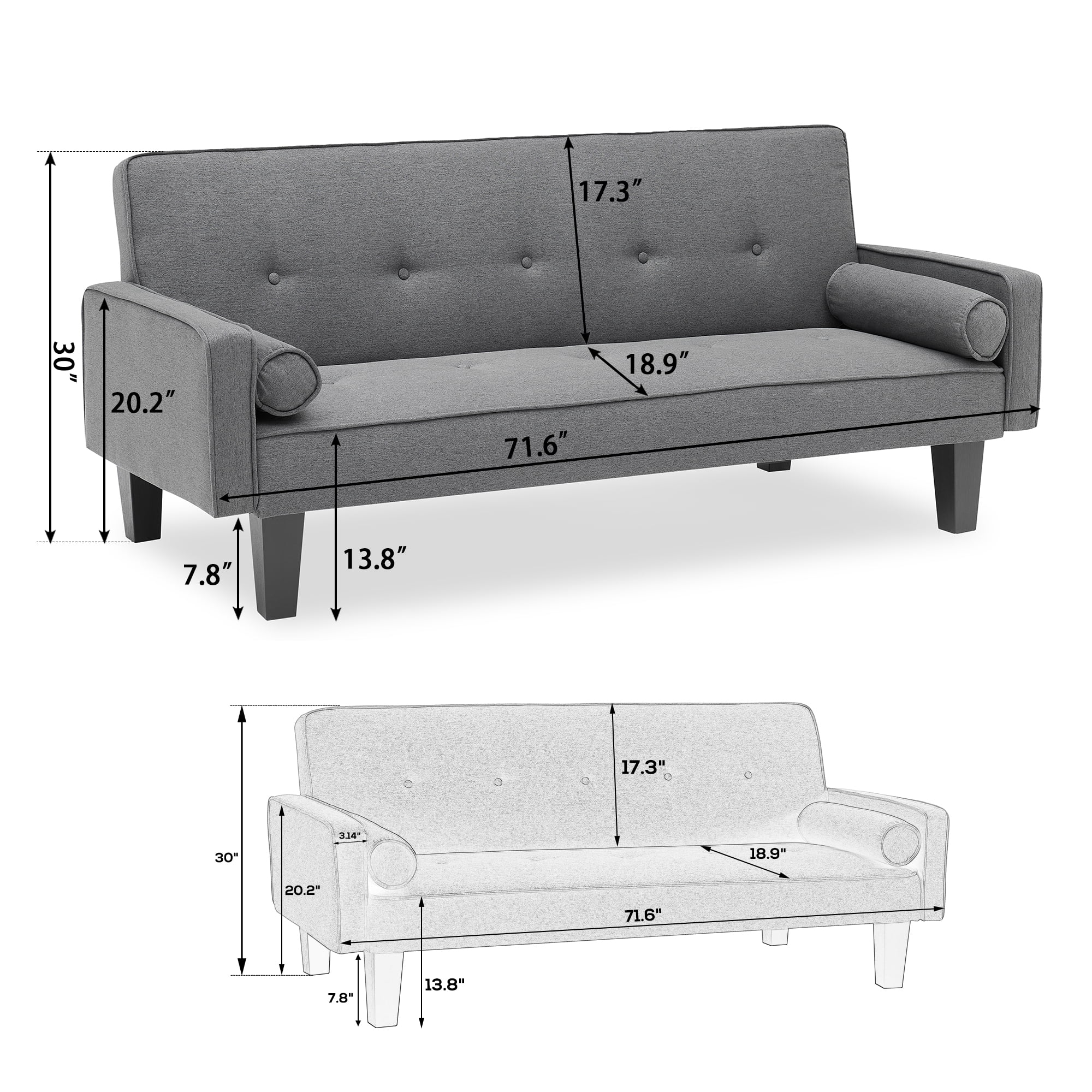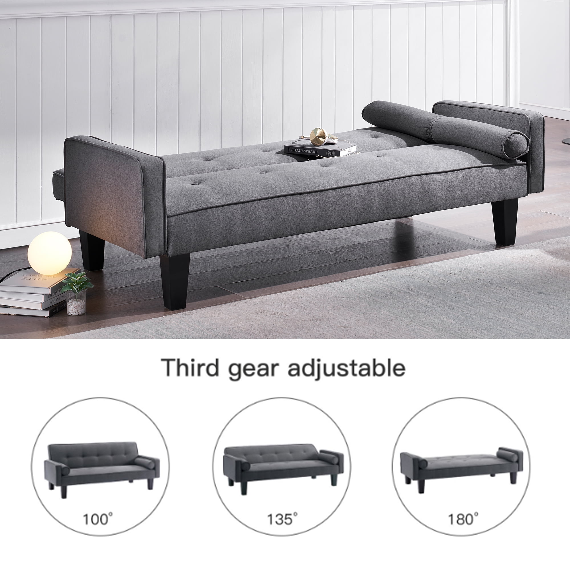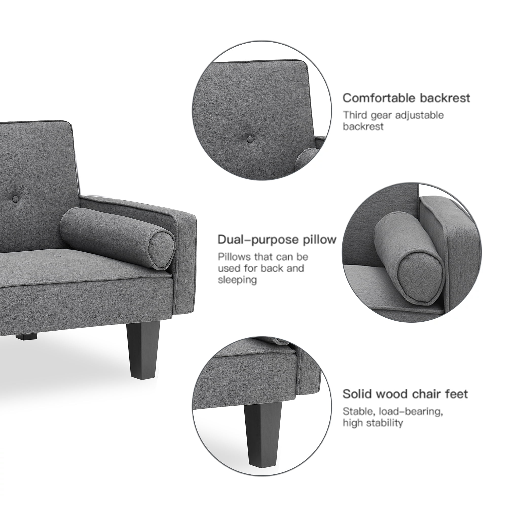 Versatile Convertible Sofa Bed:Benefit from this all-in-one multipurpose sofa.Only taking about 2m2,it is ideal for small spaces.A standard sofa or a convenient twin bed,it is all up to you to define. Backrest angle adjustment:The ergonomic sofa bed is constructed of 3-position seat-to-backrest angle adjustment.A 105-degree angle provides your back a slightly reclined position healthy to your back on regular basis.A 140-degree reclining position might put the least stress on the spine and help reduce the risk of back pain.180-degree flat lying makes occasional couch sleeping commodious. You can always adjust it to the most comfortable angle as you need. Comfortable And Stylish:This skin-friendly loose-fitting linen fabric sofa uses sinuous steel springs with flexible and anti-sag properties.Seating area is supported by spring wires with high durability.Back support uses softer spring wires instead for good feel.Sofa over fabric is good to touch and helps the air circulation around your body. Accessories Storage: Related accessories are in the space at the bottom of the sofa. Unzip it and they’re all inside. If missing, please contact us and we can arrange a replacement.