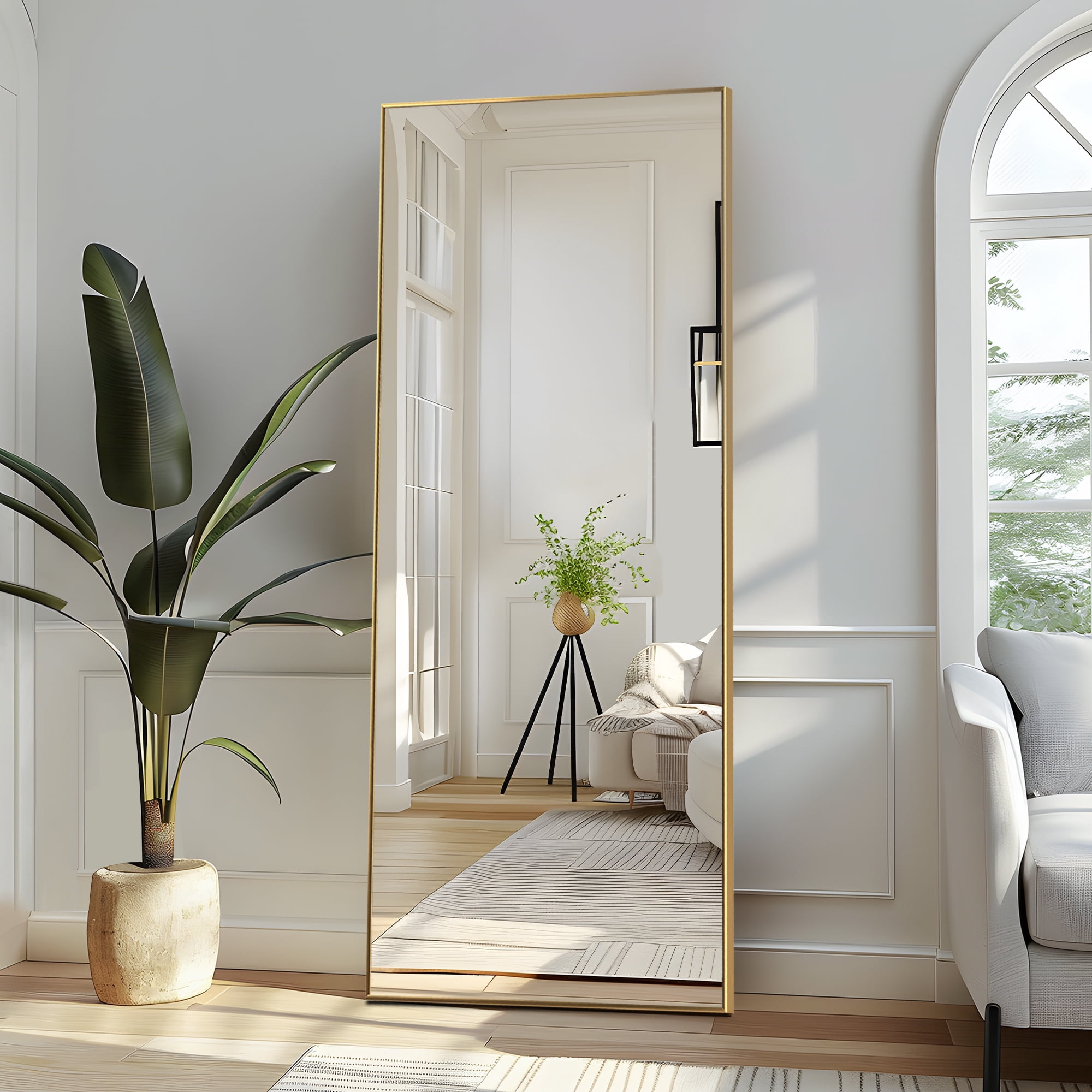 This full-length mirror gives you an rectangle view of style. The ultra-slim aluminum alloy frame rectangle at the ends for a dash of modern flair,while the blast-resistant glass ensures a crystal clear reflection. Whether you’re getting ready for a night on the town or simply need to check your outfit,this full mirror lets you see every angle in high definition. Use it floor standing in the dressing room to check out that new outfit from head to toe,or hang it on the wall in the entryway to catch a last glimpse before heading out the door. The simple yet stylish design complements a variety of interiors,so you can transform any room into your own personal runway.