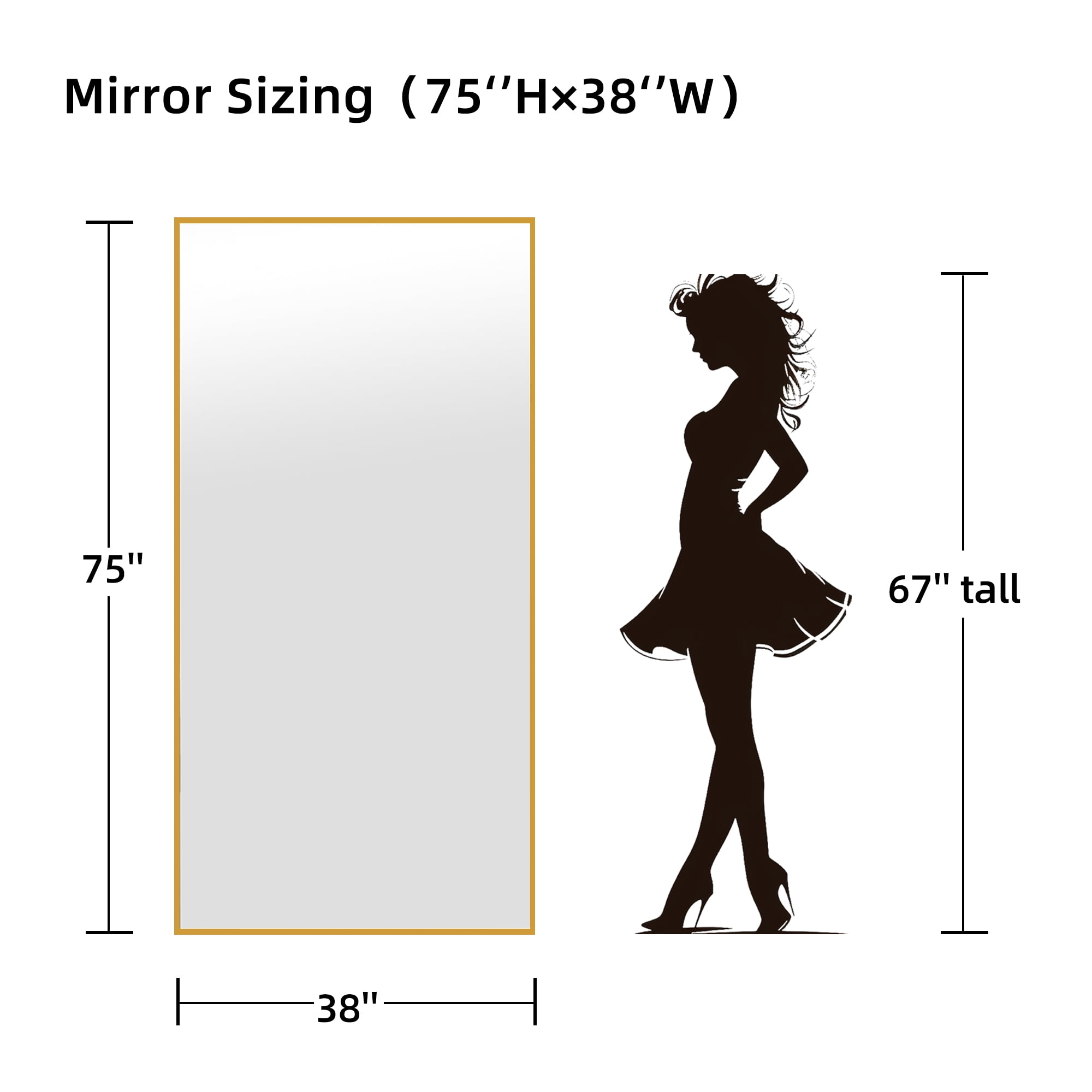 75×38 Oversized Rectangle Aluminum Alloy Frame Full Length Mirror Floor Mirror,Gold