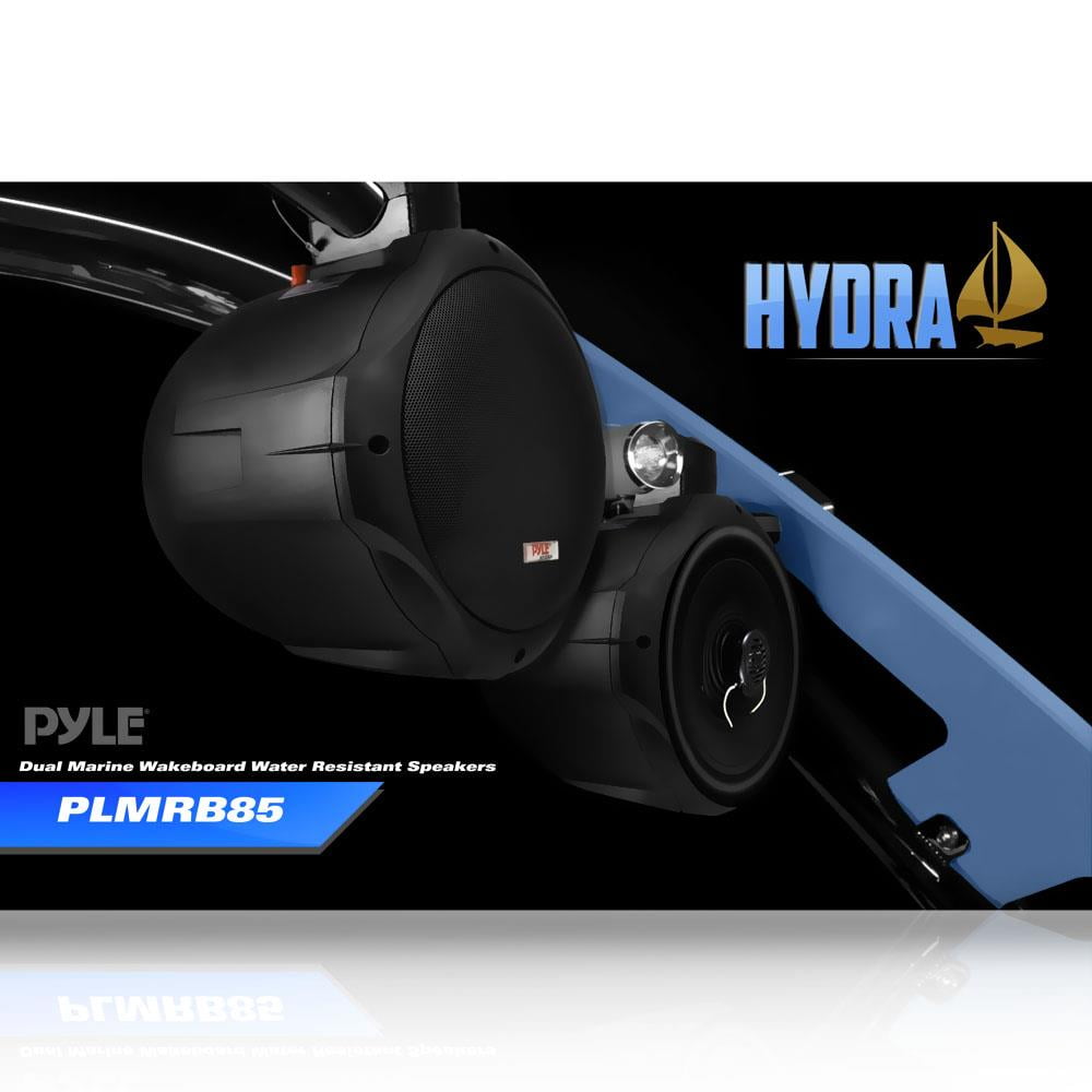New *Pyle PLMRB85* 8″ 300 Watt Two Way Black Wake Board Speakers (Pair) Max Power Output: 300 Watt RMS Power Output: 150 Watt Marine Grade IP Rating: IP 44 4 Ohm Impedance Butyl Rubber Surround 30 oz. Magnet Structure Voice Coils: 1.5″ Built in Crossover Network Frequency Response: 60Hz 20kHz Subwoofer Cone Material: Poly Mica Tweeter Type: Polymer Dome Dimensions (L x W): 9.9″ x 9.6″ Weight: 9.92 lbs. (Each) Manufacturer warranty: 1-year warranty