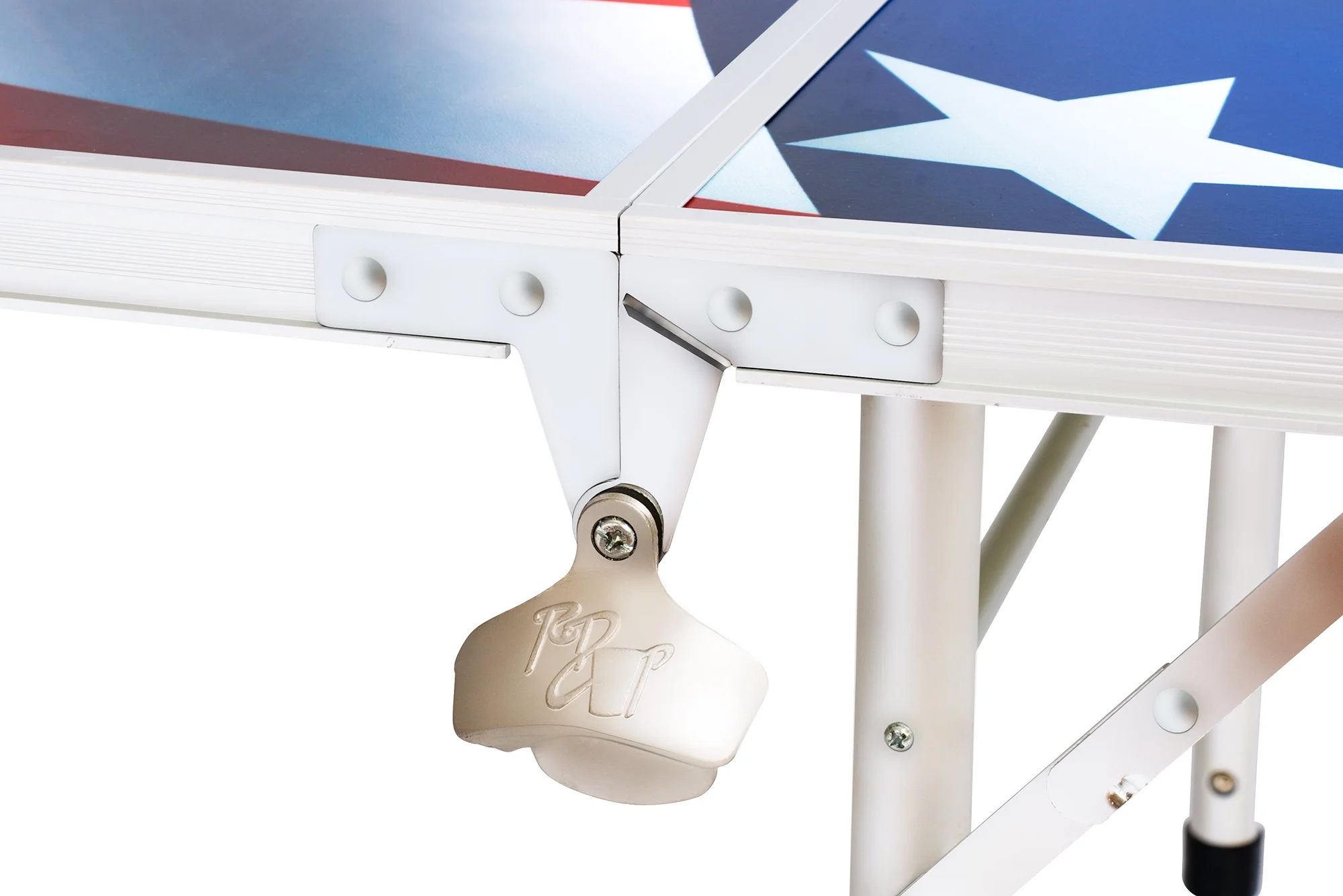 This table has a unique American Flag design. This table is 8 feet long regulation size with an easy to clean surface. The dimensions are 96x24x30 inches unfolded and 24x24x6 inches folded. It is made out of lightweight aluminum weighing only 22 lbs and comes with carry handles to make for easy transportation. It included a bottle opener, ball rack and 6 pong ball. By Red Cup Pong