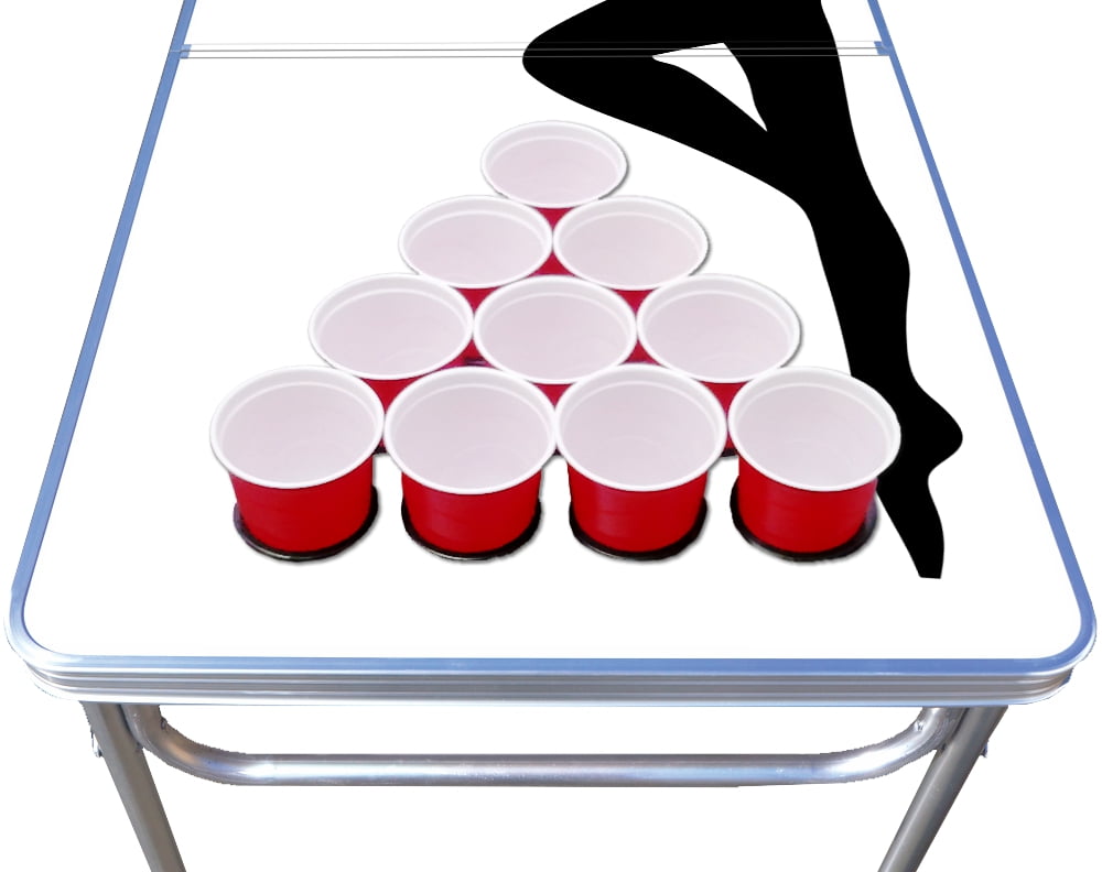 8 Foot Beer Pong Table w/ Cup Holes ACTUAL holes keeping game cups from sliding & spilling Wax finish that deflects liquids and protects the table Table easily folds into carrying case w/ latch & handles. Attached Pong Ball Holder w/ (6) Party Pong Balls