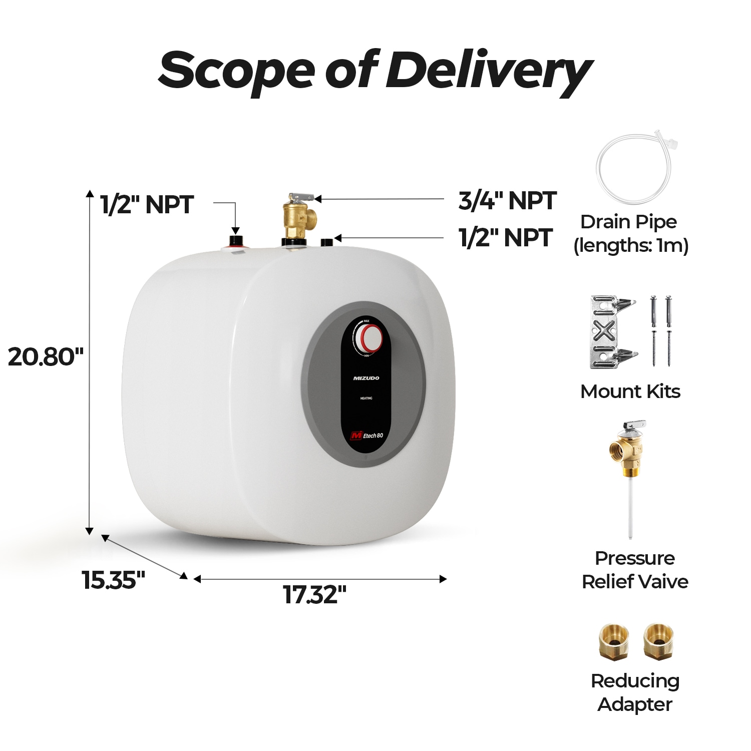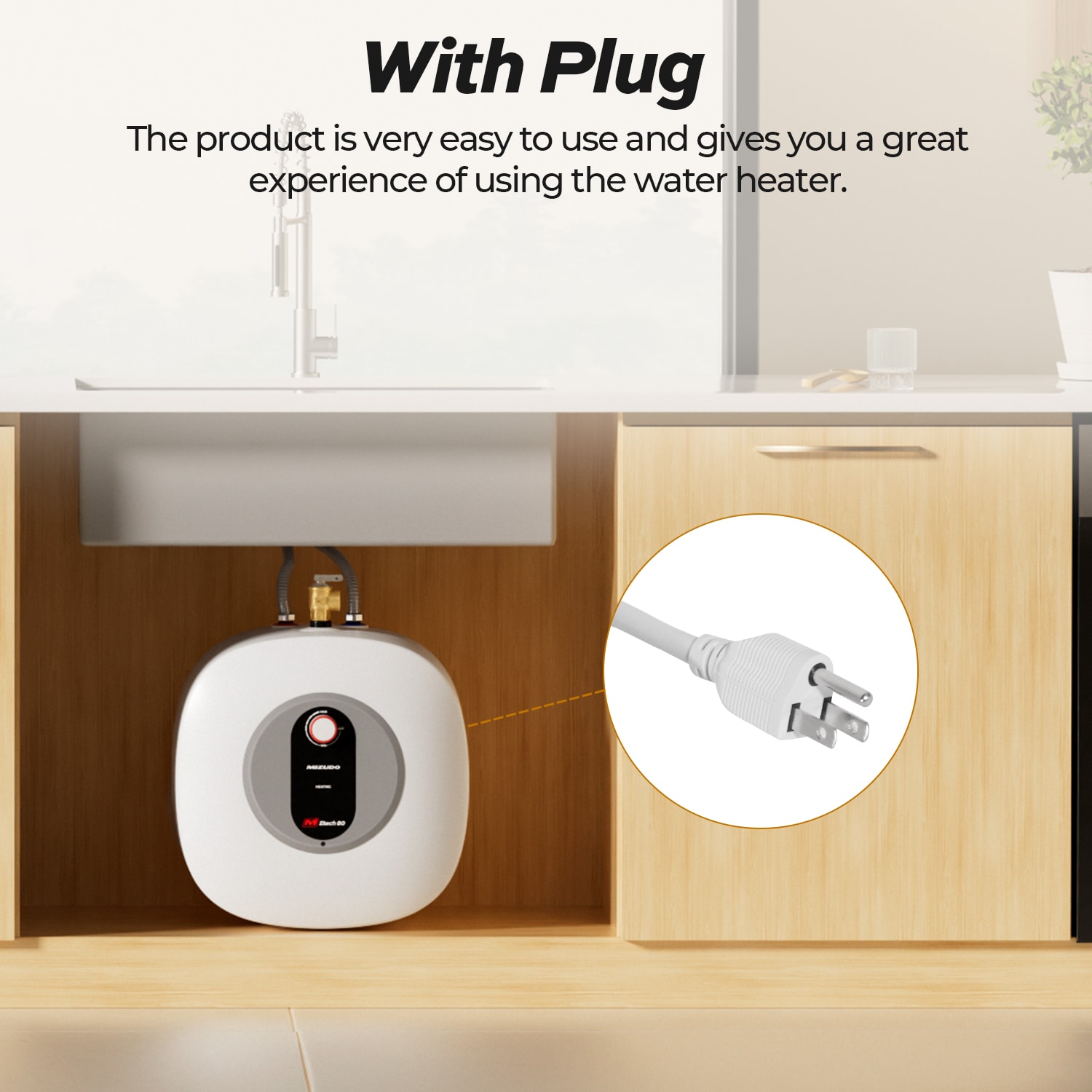 MIZUDO Electric mini-tank water heater is perfect for garages, workshops, RVs, and food trucks. Ideal for cupboards, bathroom cabinets and washing machine cabinets. Coated with enamel make it durable and long-lasting. When it reaches 167 F, the high temperature limiting device will shut off the heat and provide protection.