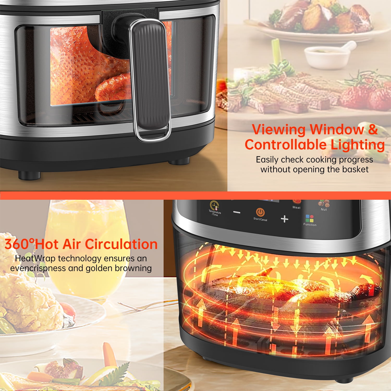 8-in-1 Air Fryer, 7.5QT Air Fryer with Visible Cooking Window, 8 Cooking Presets, Smart Digital Touchscreen, Easy To Clean Non-stick and Dishwasher-Safe Basket, Including Air Fryer Paper Liners 50PCS