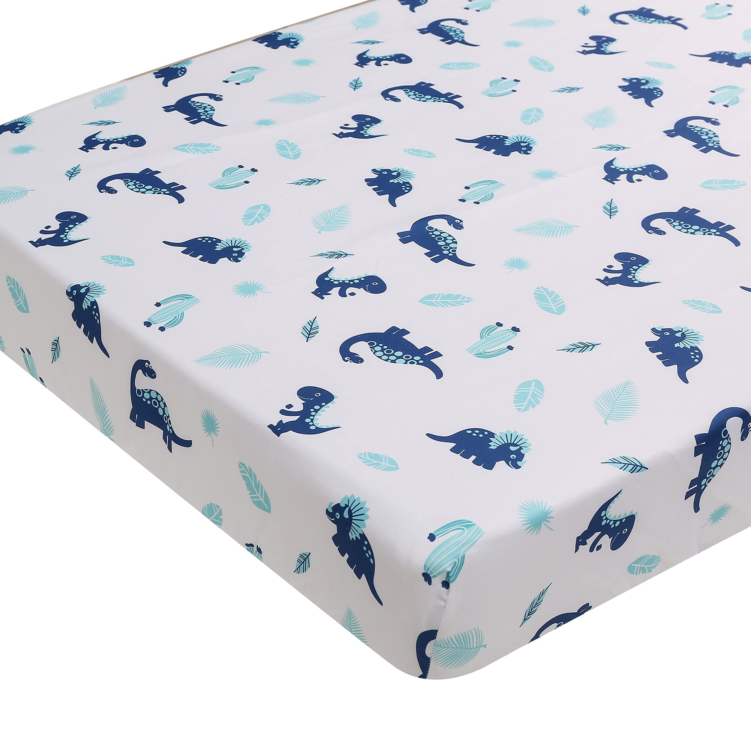 8-Piece Crib Bedding Set- Portable crib bedding set is perfect for any standard crib and toddler mattress (52” x 28”). 8-piece crib set includes: 1 quilt (33” x 42”), 1 bed skirt (dust ruffle) (28” x 52” + 8”), 1 diaper bag (22.5” x 12” x 7.3”), 1 blanket (30”x 30”), 1 fitted sheet with 360° elastic at the bottom edge (28”x 52”x 10”), 3 wall stickers (13”x 9.5”x 3”).Exquisite 3D Pattern- Dinosaur Park theme crib bedding set, with dinosaurs as the theme, including Stegosaurus, Brontosaurus and Pteranodon. Colorful dinosaurs slightly three-dimensional, realistic, lively color scheme, fashionable and unique, attractive to babies, play a good decorative role in the entire nursery arrangement.High Quality- The features of material all in touchably soft microfiberare polyester, not deformed, fade, shrink, pilling, and stain resistance, in line with OEKO-TEX I infant and child standards to care for babies’ skin and sleep.The Blue Crib Bedding Set is easy to care for and machine washable. The lightweight fabric material is durable for washing and safe for the dryer, won’t go out of shape after washing.Wall Stickers- Our wall decals are removable and will not leave any sticky residue on your walls. These wall stickers are easy to apply, it’s as simple as peel and stick! They make a fantastic addition to any room and really do bring you walls to life.Best Gift- Animal crib set is the best baby gift for baby warming room, Welcome Baby Party, Shower Day, Birthday, Christmas, Thanksgiving period boy crib bedding. 8-Piece Crib Bedding Set- Portable crib bedding set is perfect for any standard crib and toddler mattress (52” x 28”). 8-piece crib set includes: 1 quilt (33” x 42”), 1 bed skirt (dust ruffle) (28” x 52” + 8”), 1 diaper bag (22.5” x 12” x 7.3”), 1 blanket (30”x 30”), 1 fitted sheet with 360° elastic at the bottom edge (28”x 52”x 10”), 3 wall stickers (13”x 9.5”x 3”). Exquisite 3D Pattern- Dinosaur Park theme crib bedding set, with dinosaurs as the theme, including Stegosaurus, Brontosaurus and Pteranodon. Colorful dinosaurs slightly three-dimensional, realistic, lively color scheme, fashionable and unique, attractive to babies, play a good decorative role in the entire nursery arrangement. High Quality- The features of material all in touchably soft microfiberare polyester, not deformed, fade, shrink, pilling, and stain resistance, in line with OEKO-TEX I infant and child standards to care for babies’ skin and sleep.The Blue Crib Bedding Set is easy to care for and machine washable. The lightweight fabric material is durable for washing and safe for the dryer, won’t go out of shape after washing. Wall Stickers- Our wall decals are removable and will not leave any sticky residue on your walls. These wall stickers are easy to apply, it’s as simple as peel and stick! They make a fantastic addition to any room and really do bring you walls to life. Best Gift- Animal crib set is the best baby gift for baby warming room, Welcome Baby Party, Shower Day, Birthday, Christmas, Thanksgiving period boy crib bedding.
