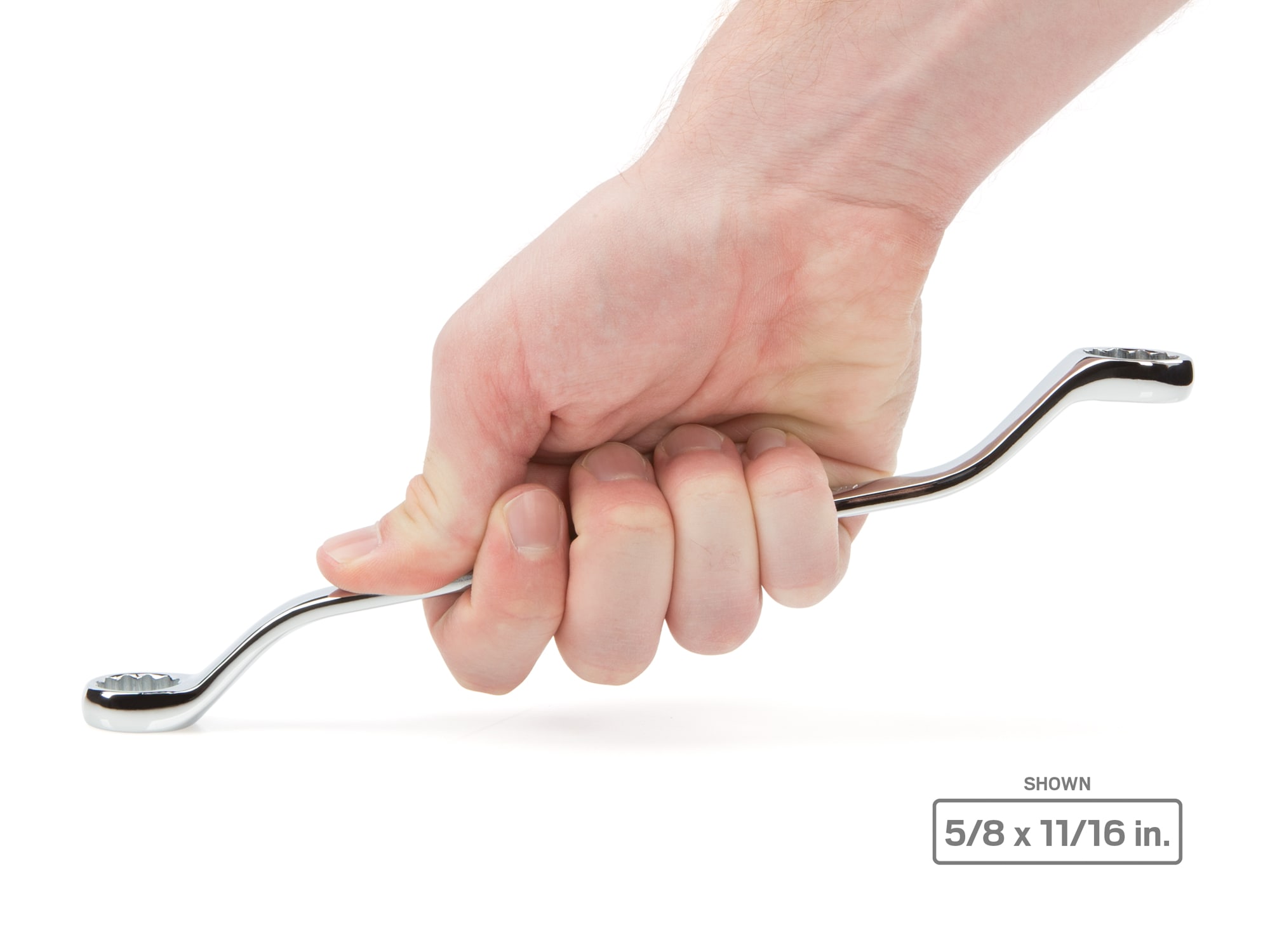 TEKTON offset box end wrenches have a generous 45-degree offset, creating plenty of clearance for your fingers and allowing an easy reach over and around obstacles. The 12-point openings double the access angles of 6-point wrenches and make it easier to work in tight spaces. The geometry of each opening grips the flat sides of fastener heads, not the corners, preventing damaging round–off.