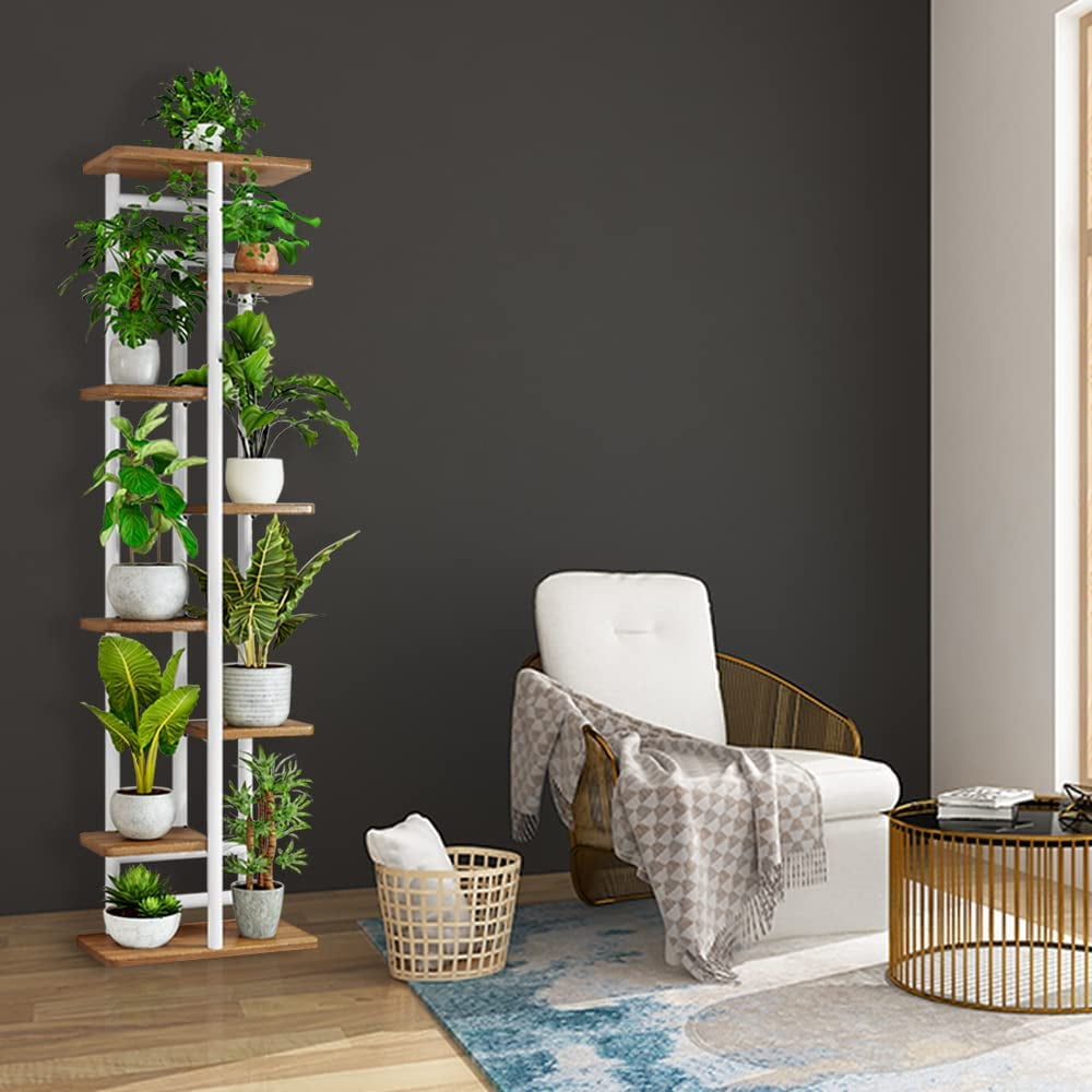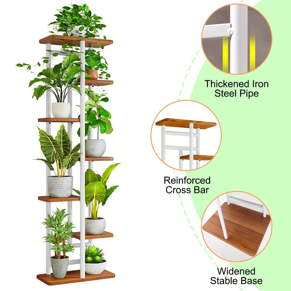 8-Tier Display Shelf, Flower Pots Rack, Plant Stand, Planter Stand, Heavy Duty Storage, Shelving Rack 【Durable and Practical】– This practical plant stand is made from premium MDF board and Metal, durable but lightweight and portable, you can easily move it to anywhere you like. 【Multifunctional Flower Pot Holder】– The flower rack has 8 layers of space and can place up to 9 pots of plants, suitable for different indoor occasions, can be placed in the living room, bedroom, balcony, garden corner or any place you want to decorate. 【Solid Construction】– The thickened iron pipe, widened base and reinforced cross bar, effectively improve the stability and safety, making the multiple plant rack more solid and durable. 【Easy To Assemble】 — Simple structure, overall easy to install and disassemble! You can quickly complete the installation by following the clear instructions. 【Warm up】– Our flower stand is suitable for the potted plants with a height of about 25-50cm; In order to improve the stability of the flower stand, the weight of the flower pots placed on both sides should be as equal as possible.
