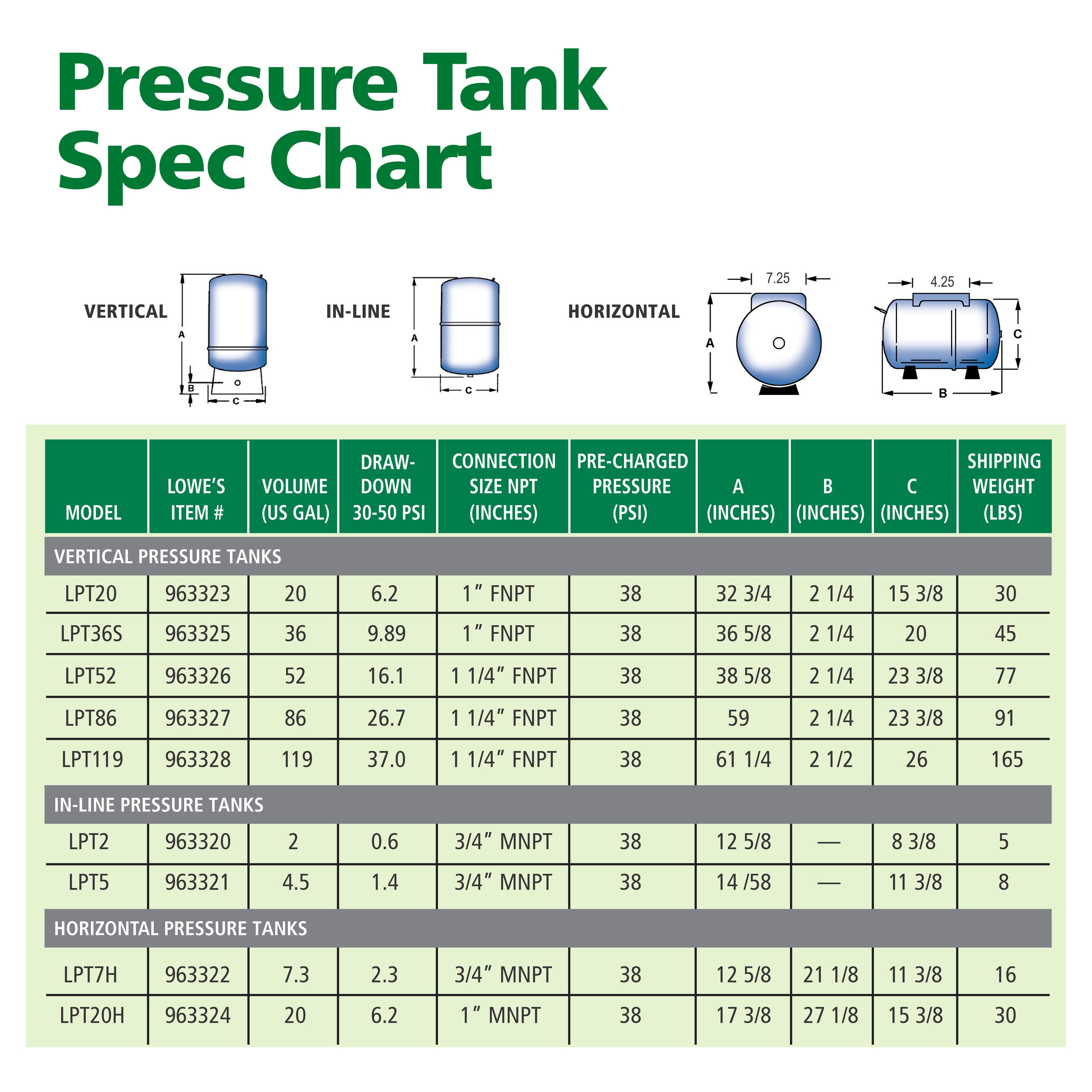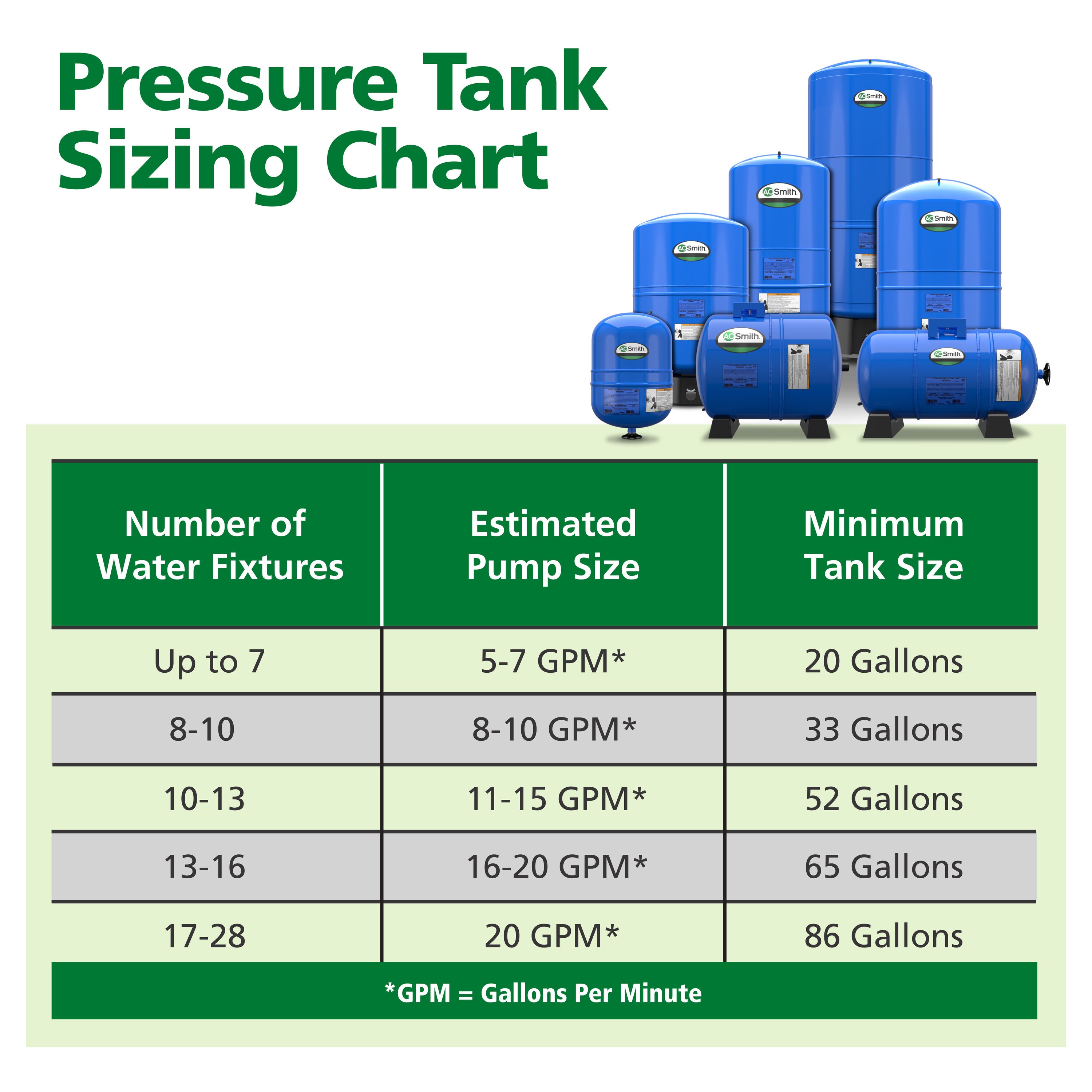 The A. O. Smith line of Pump and Pressure tanks feature an assortment of size ranges to fit the specific needs of your home. A Pump tank is an essential part of any well system, delivering the benefits of ensuring your pump will run for at least one minute each time it cycles, as required by pump manufacturers. Our Pump tanks store a supplemental water supply between pump cycles, to reduce the number of cycles throughout the day, and help prolong the pump lifeline of your water systems. A pump tank also maintains the water pressure within your system, ensuring proper operation of your dishwasher and washing machine, and robust flow for showering and bathing. A properly sized pump and well tank will work as a team to meet your needs and deliver many years of dependable service—all A. O. Smith pump tanks are compatible with our line of A. O. Smith water heaters.