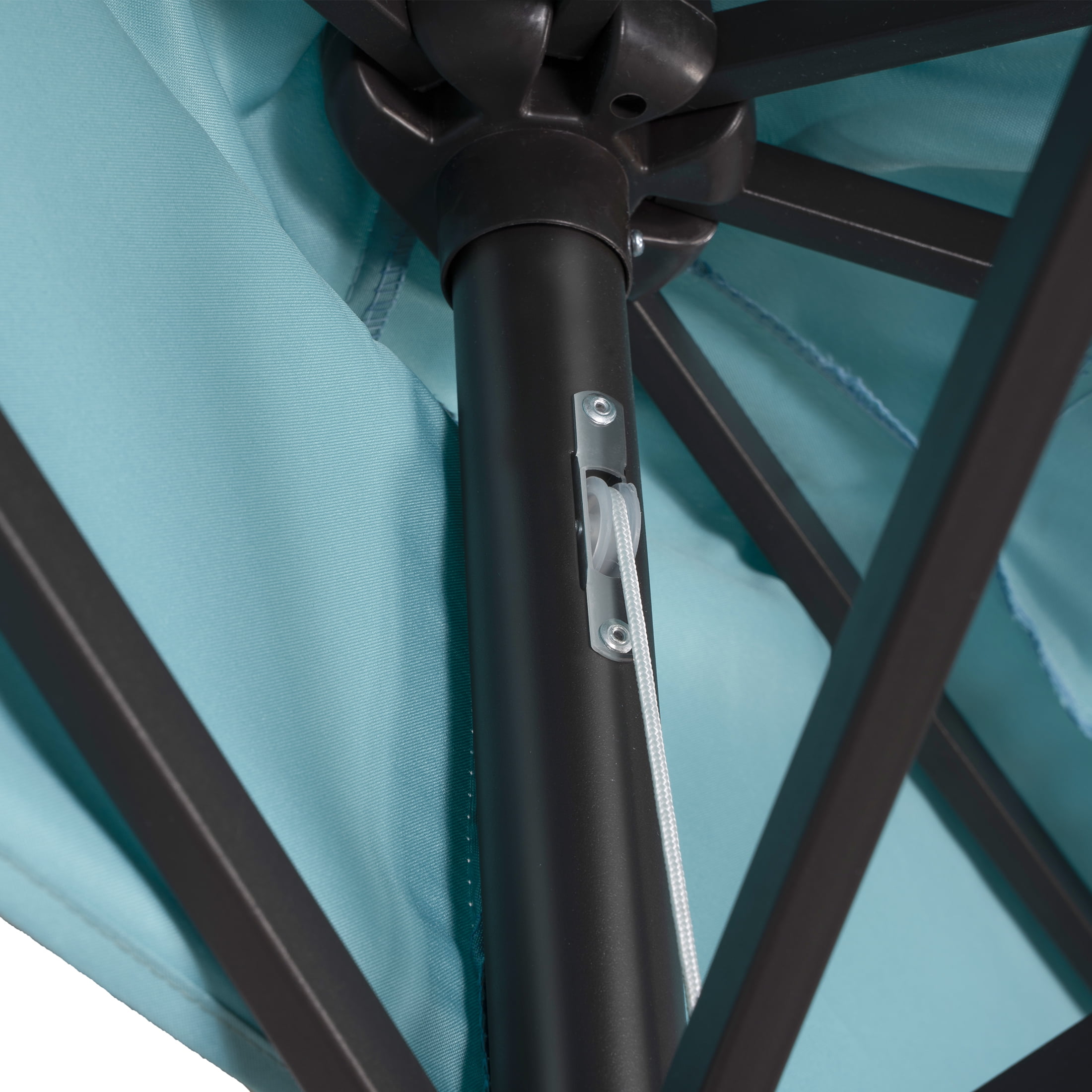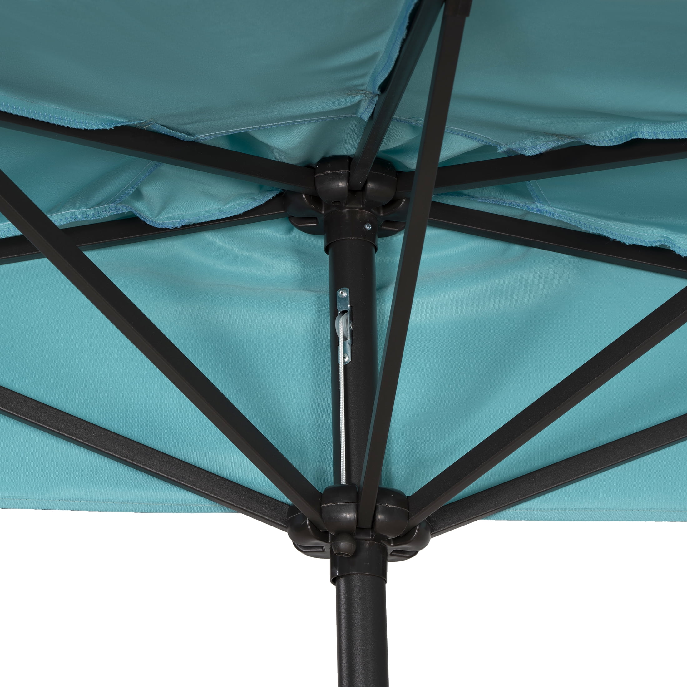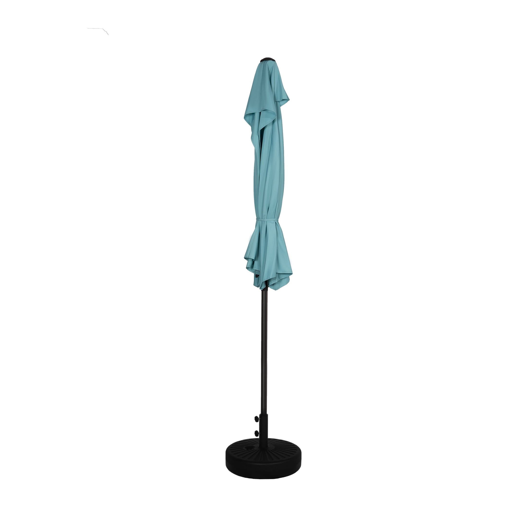 9 ft Half Market Umbella with Black Round Free Standing Plastic Base, Turquoise