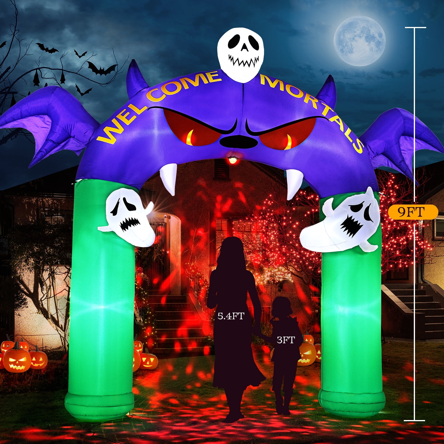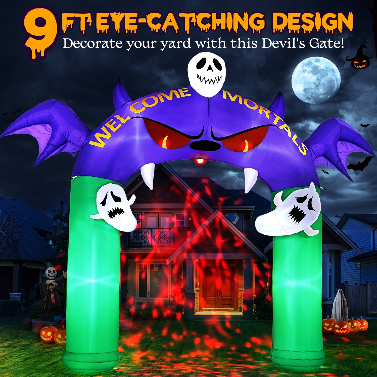 9 ft Halloween Inflatables, Demon Archway Outdoor Decorations with Rotating Light, Blow up Inflatable Yard Decoration for Party