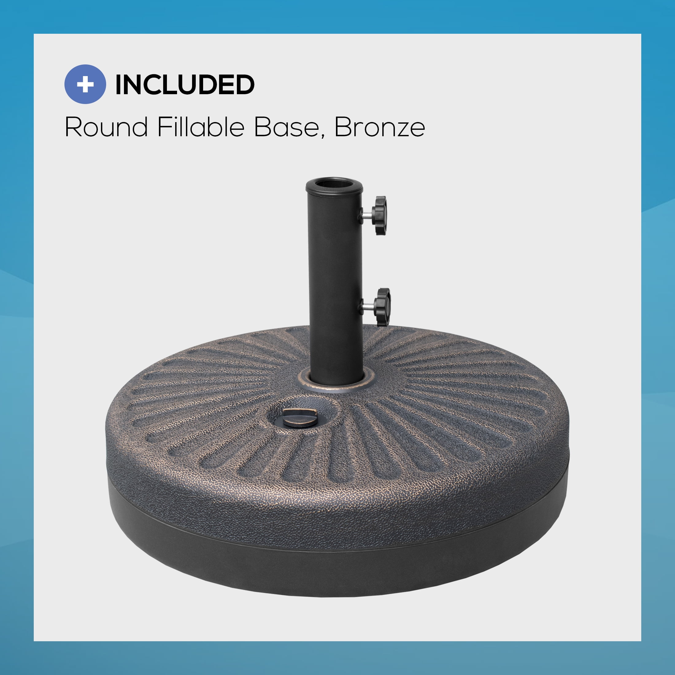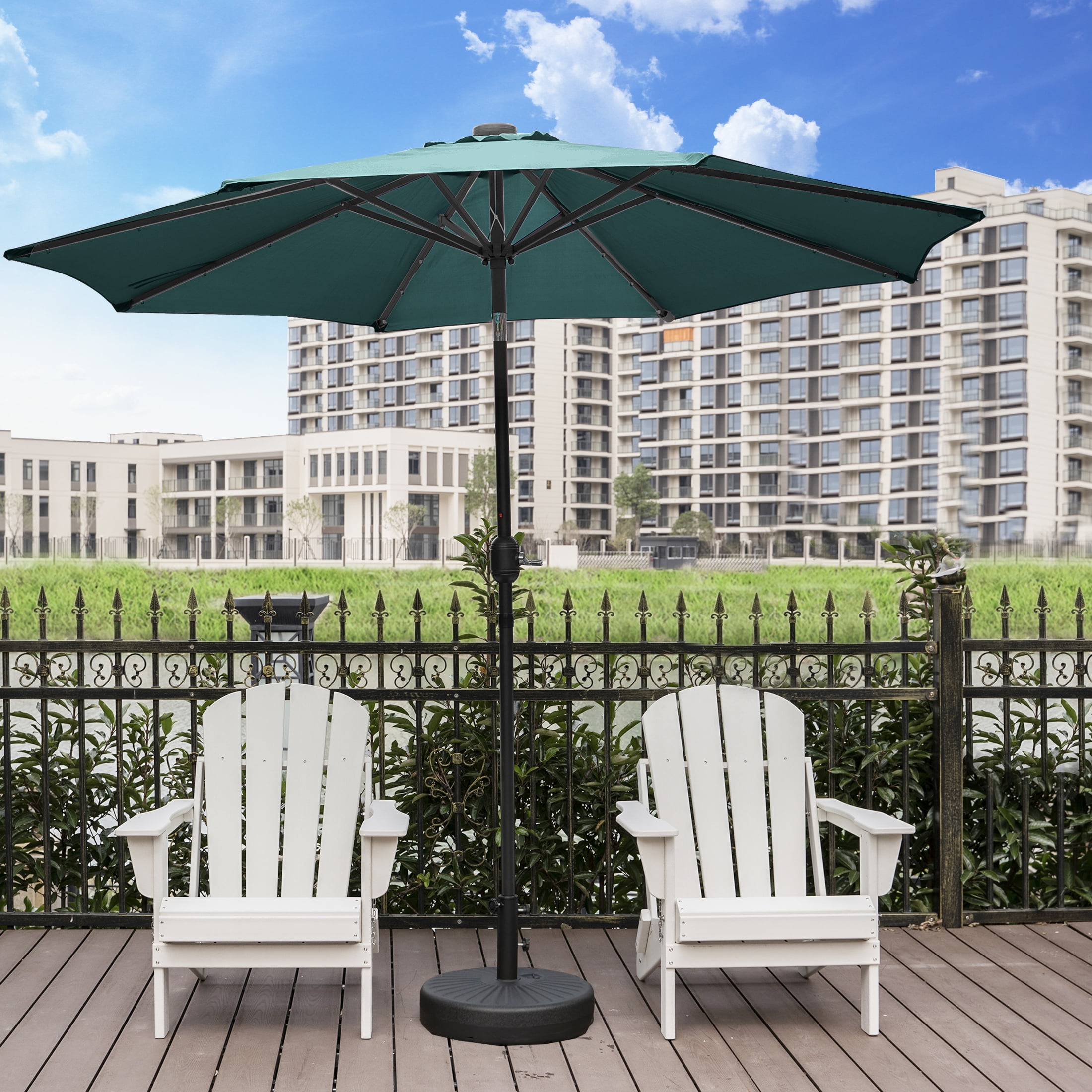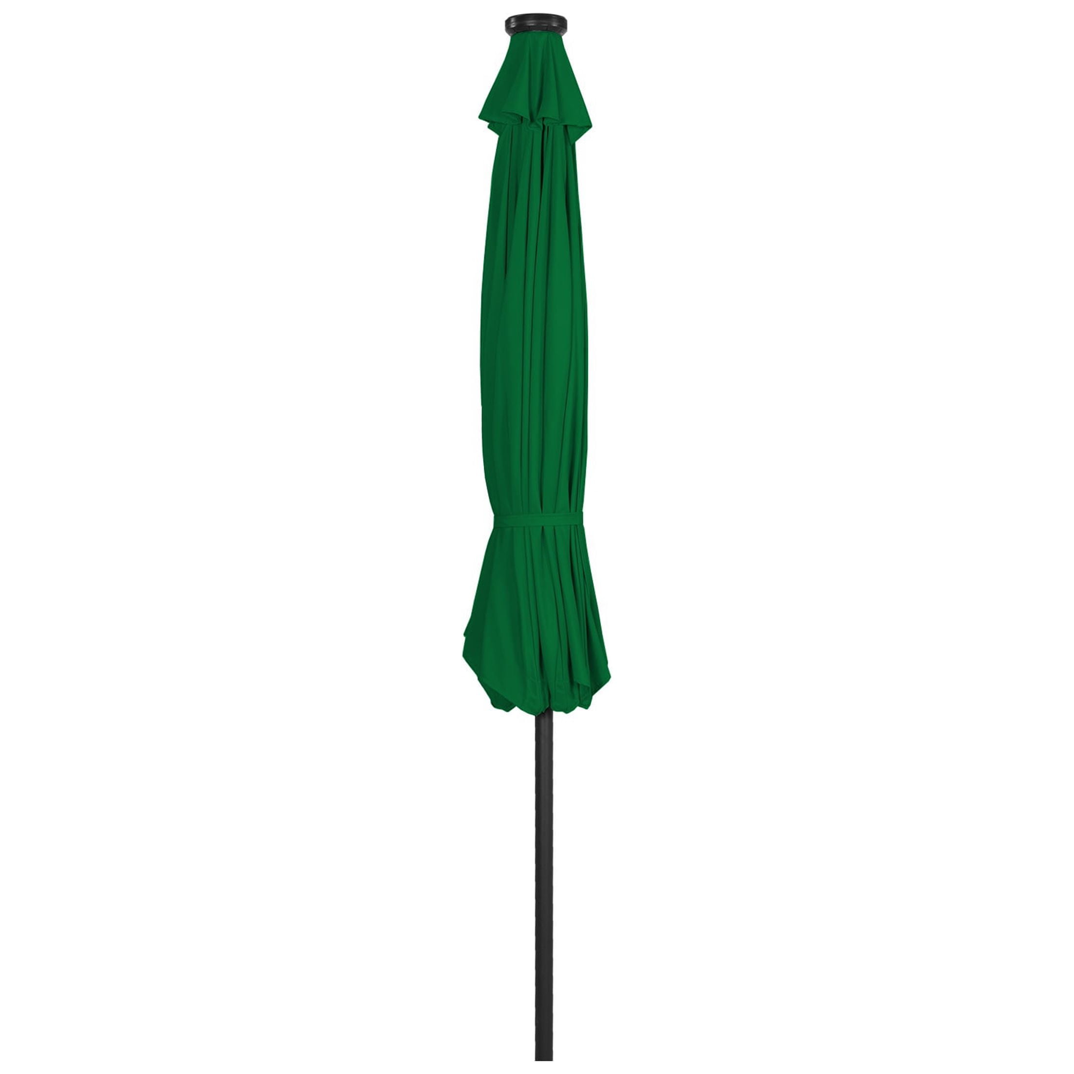 9 ft Patio Solar LED Market Umbrella With Bronze Round Free Standing Base, Dark Green