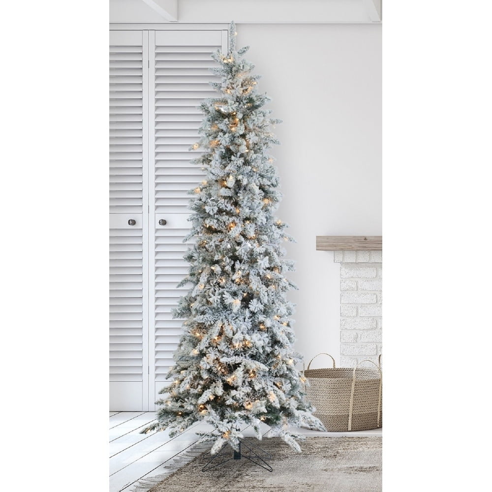 9 ft. Pre Lit Clear Incandescent Narrowed Flocked Pencil Pine