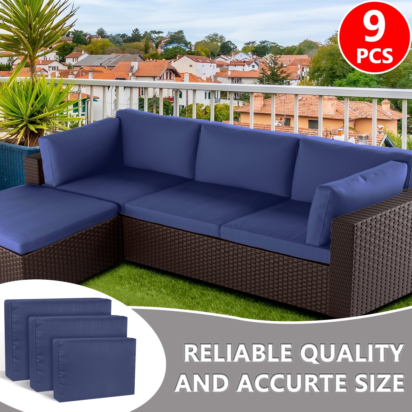 9 Pcs Outdoor Patio Cushion Covers Replacement, Outdoor Cushion Cover with Zipper, Cover Only