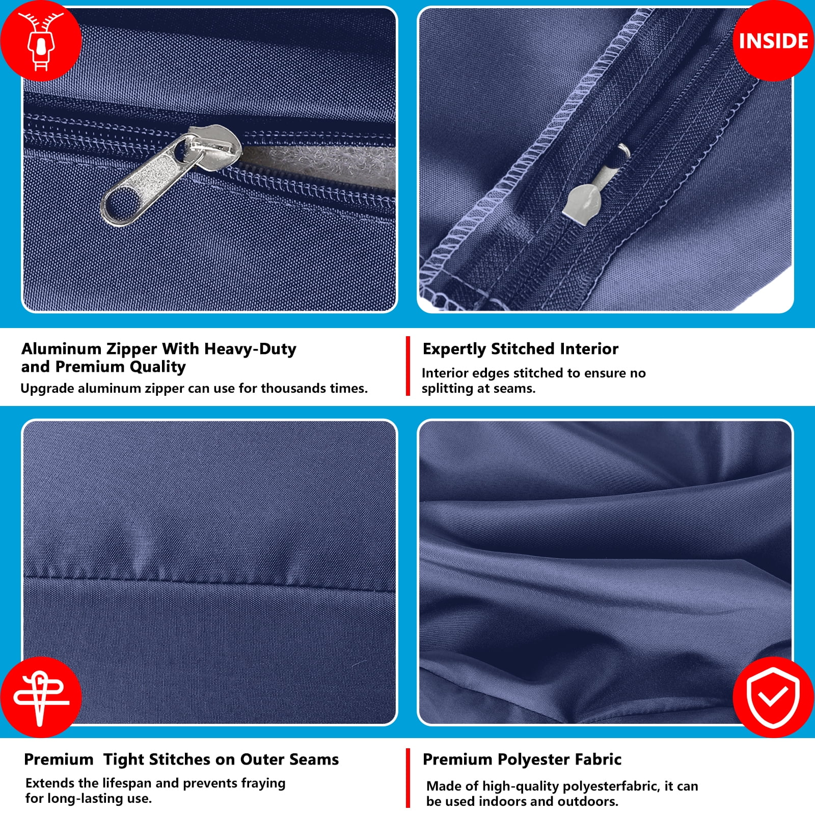[ ! ! ! Covers Only]: Outdoor sofa cushion consists of : 3*seat cushion cover: 24.5L * 24.5W * 3H in; backrest cushion cover: 24.5L * 12W * 4H in; 2*armrest cushion cover: 19L * 12W * 4H in; ottoman cushion cover: 28.5L * 28.5W * 3H in. [UV-TREATED YARNS]: Each yarn of our patio furniture cushion replacement has been treated with UV resistance, while each yarn has gone through a dyeing process, so that the color is not easy to fade in both hot and cold conditions. [TPU compartment]: Outdoor couch cushions built-in TPU compartment, can effectively prevent water immersion, towel gently wipe can be wiped away water stains, because to ensure durability of the polyester fabric used, so can not do 100% waterproof! [Anti Animal Scratch]: Preferred thicker yarn polyester fabric, compared with the same price of polyester fabric quality is better, more durable at the same time can also be effective in preventing animal scratches [MULTIPLE APPLICATION SCENARIOS]: Simple unprinted design, clean and generous, delicate knitted texture again gives this fabric cover exquisite details, can be applied to patio furniture, farm, beach, bedroom.