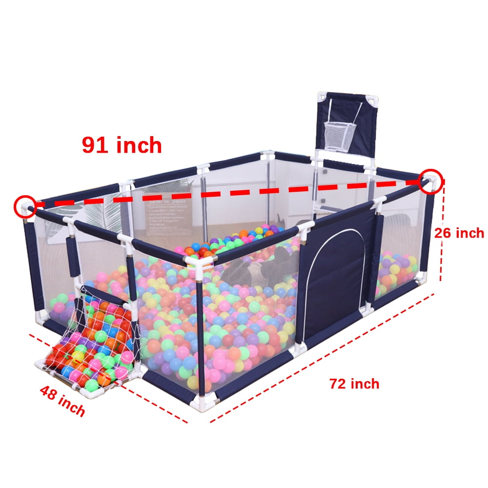 91 Inch Large Kid Baby Playpen Playard With Basketball Hoop,Folding Breathable Mesh Infant Children Play Game Fence for Indoors Outdoors Home