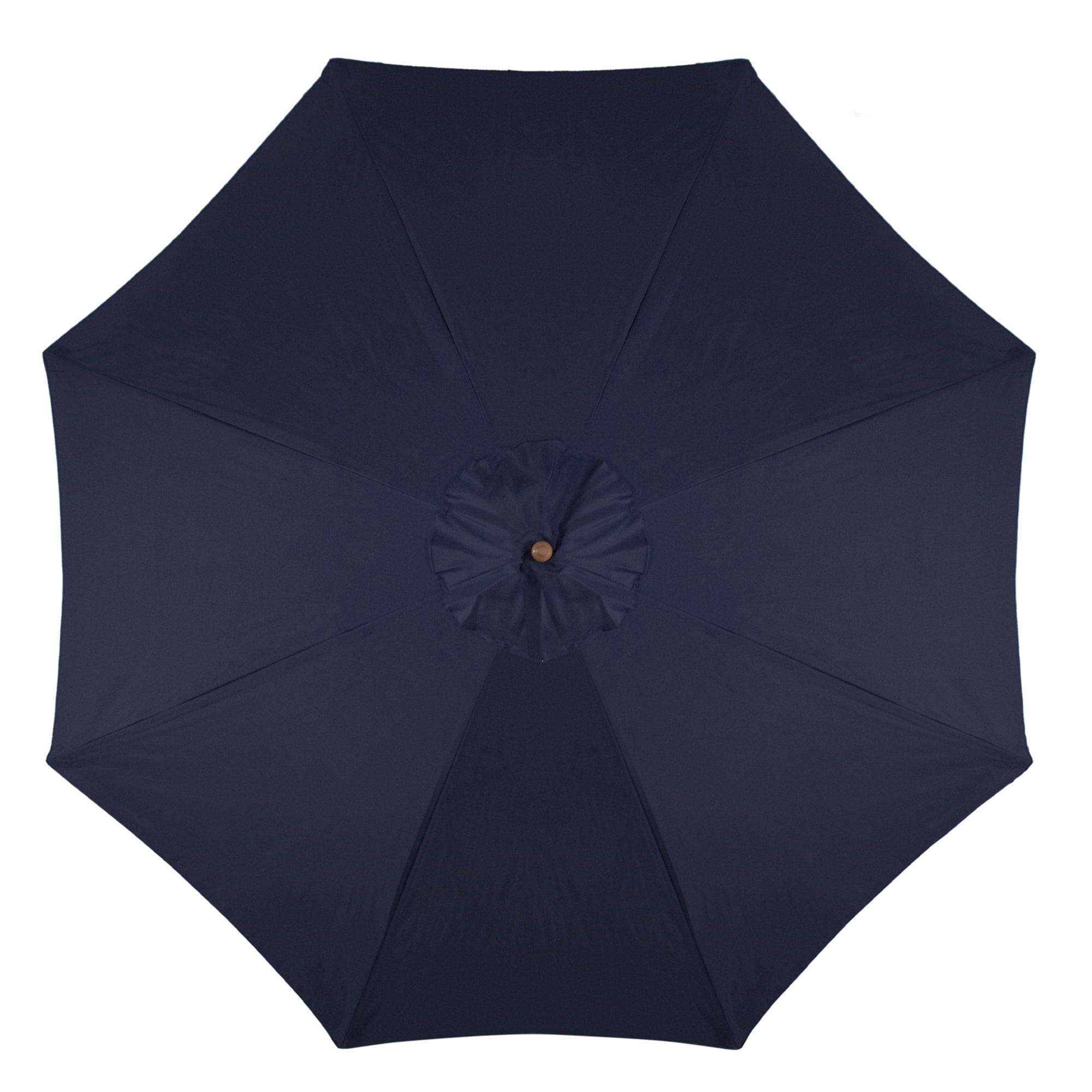 Enjoy tons of fresh air this summer without having to sit in the hot sun with our 9-foot traditional style wooden market umbrella. Ideal for covering a 48-inch or four-person dining set. Features sturdy wood frame ribs and pole that are built to last a lifetime. The double-wheel pulley allows for ease of use. Features: Umbrella shape: octagon. Canopy color: navy blue. Frame and pole color: wood. Diameter of open umbrella: 9′. Height: 8′. Pole diameter: 1.5″ (38mm). Lift: double wheel pulley. 8 ribs. Plastic finial top. Material(s): 160 gram polyester canopy/wood pole and ribs/plastic. Note: Umbrella only base is not included