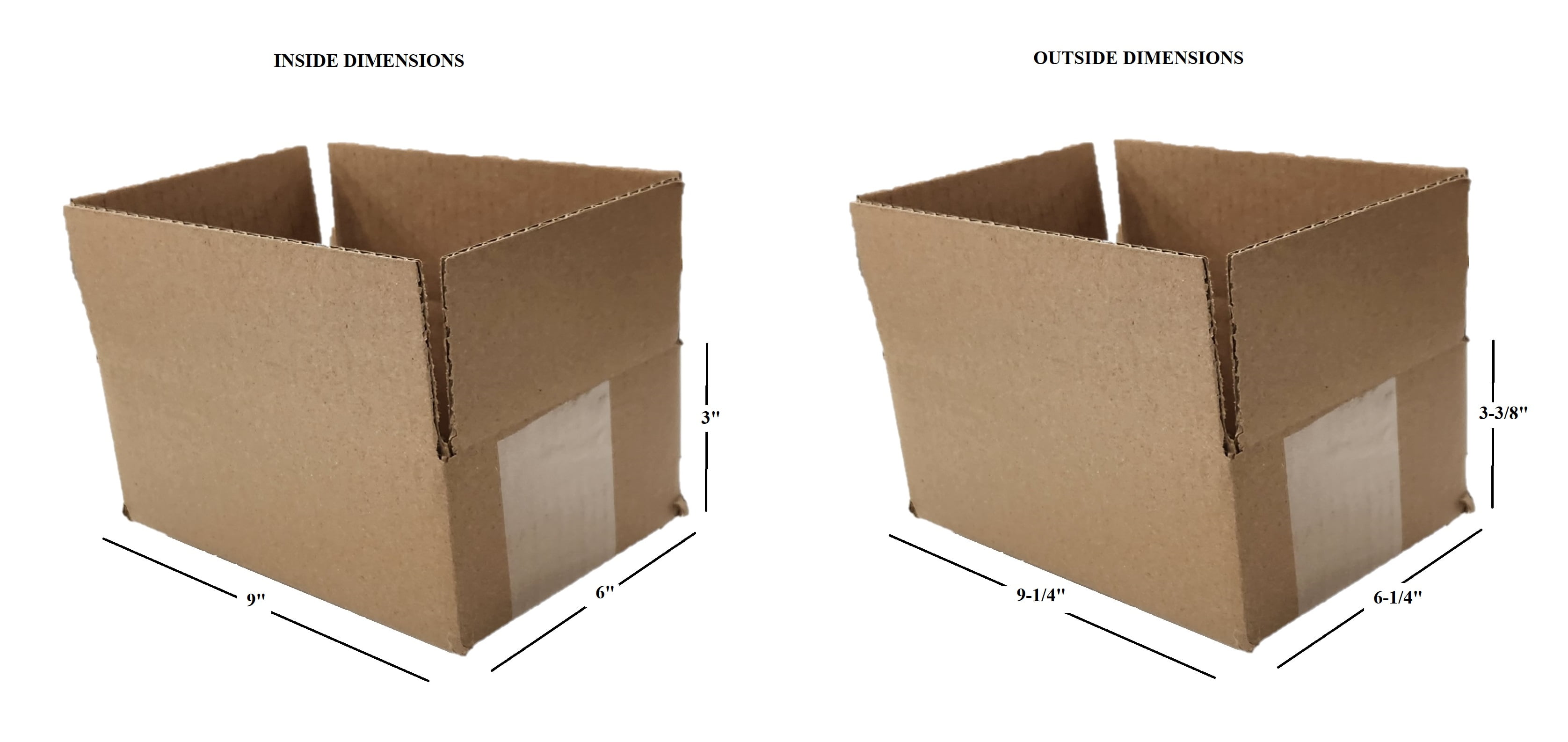 Tailored Packaging 9x6x3 RSC 32 ECT Shipping Boxes. Tailored Packaging is a brand that you can trust to provide quality packaging materials. The inside dimensions of the box are 9 inches in length x 6 inches in height x 3 inches in width. These boxes are manufactured from 32 ECT single wall, C-flute kraft corrugated material. The package includes 4 bundles of 100 cartons. Boxes are sent to you flat and unassembled. All corrugated materials are recyclable.