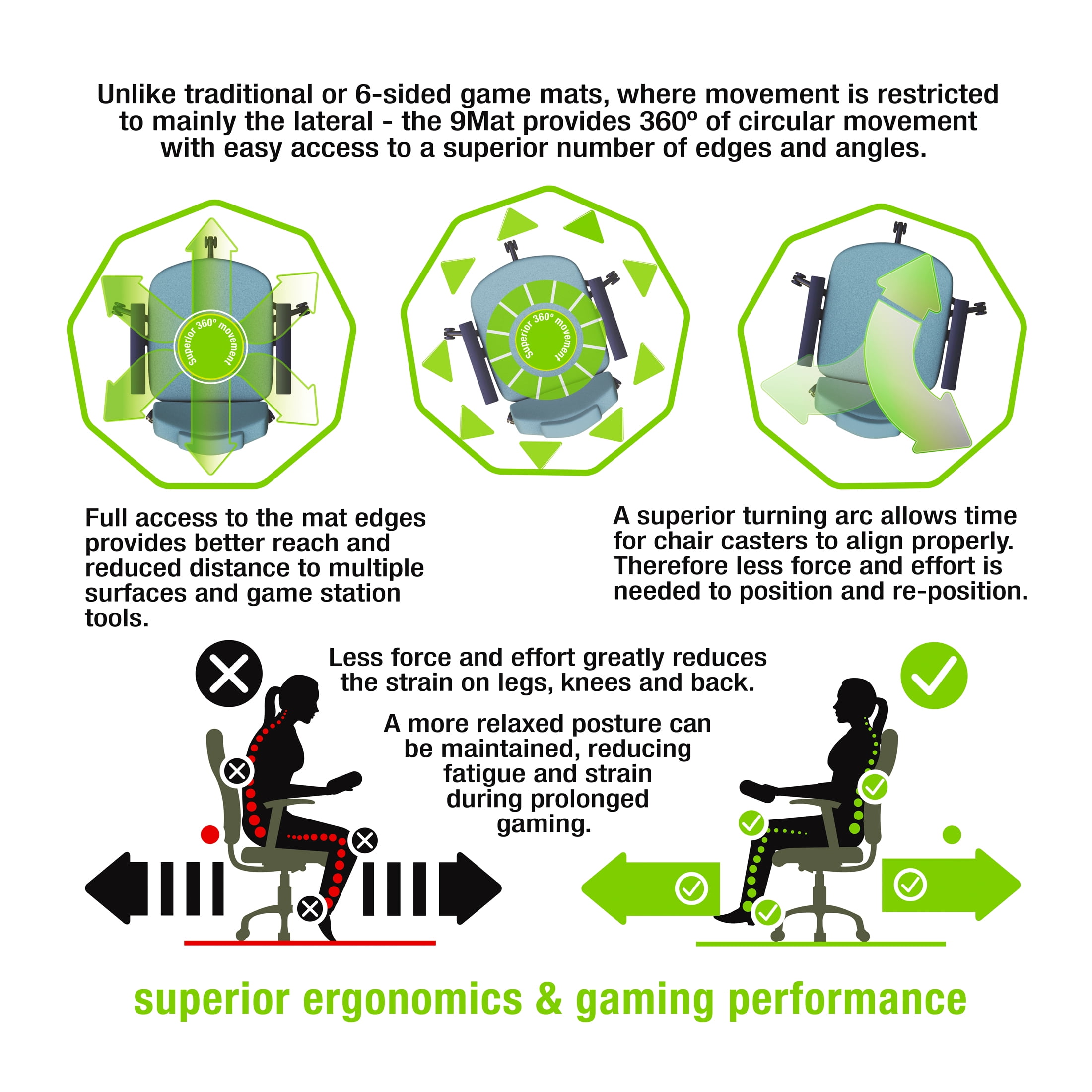 9Mat® Polycarbonate 9-Sided Blue Gaming Chair Mat for Hard Floors – 38″ x 39″