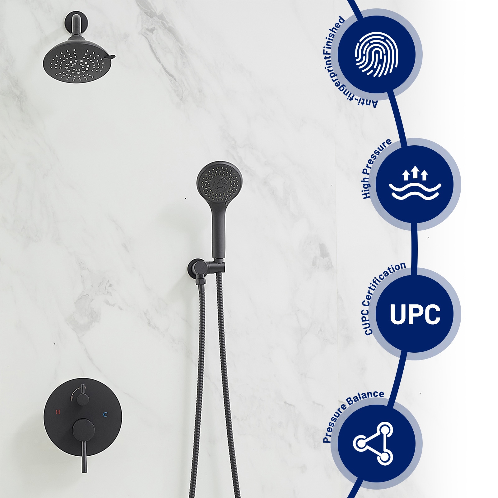 A-98001 Shower Faucet Matte Black 2-handle Multi-function 5-in Round Shower Faucet with Valve