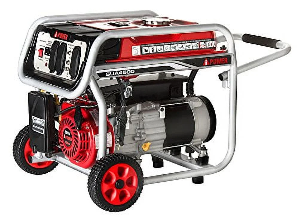 The A-iPower Model SUA4500 4500W Generator is powered by a reliable 208cc/7HP single cylinder, four-stroke OHV engine and coupled by high quality alternator. This unit produces 3500 running watts and 4000 surge/starting watts with a 68dB sound rating from 23 feet to ensure low noise for quiet operation. The alternator produces more surge wattage to start motor-driven appliances and tools. With a four-gallon rigid steel fuel tank with built-in fuel gauge, this unit can run up to 13 hours at 50 percent load. The low oil shut-off sensor equipped on the engine is designed to protect the engine for long life and easy maintenance. The easy-to-reach integrated control panel makes the unit user-friendly.