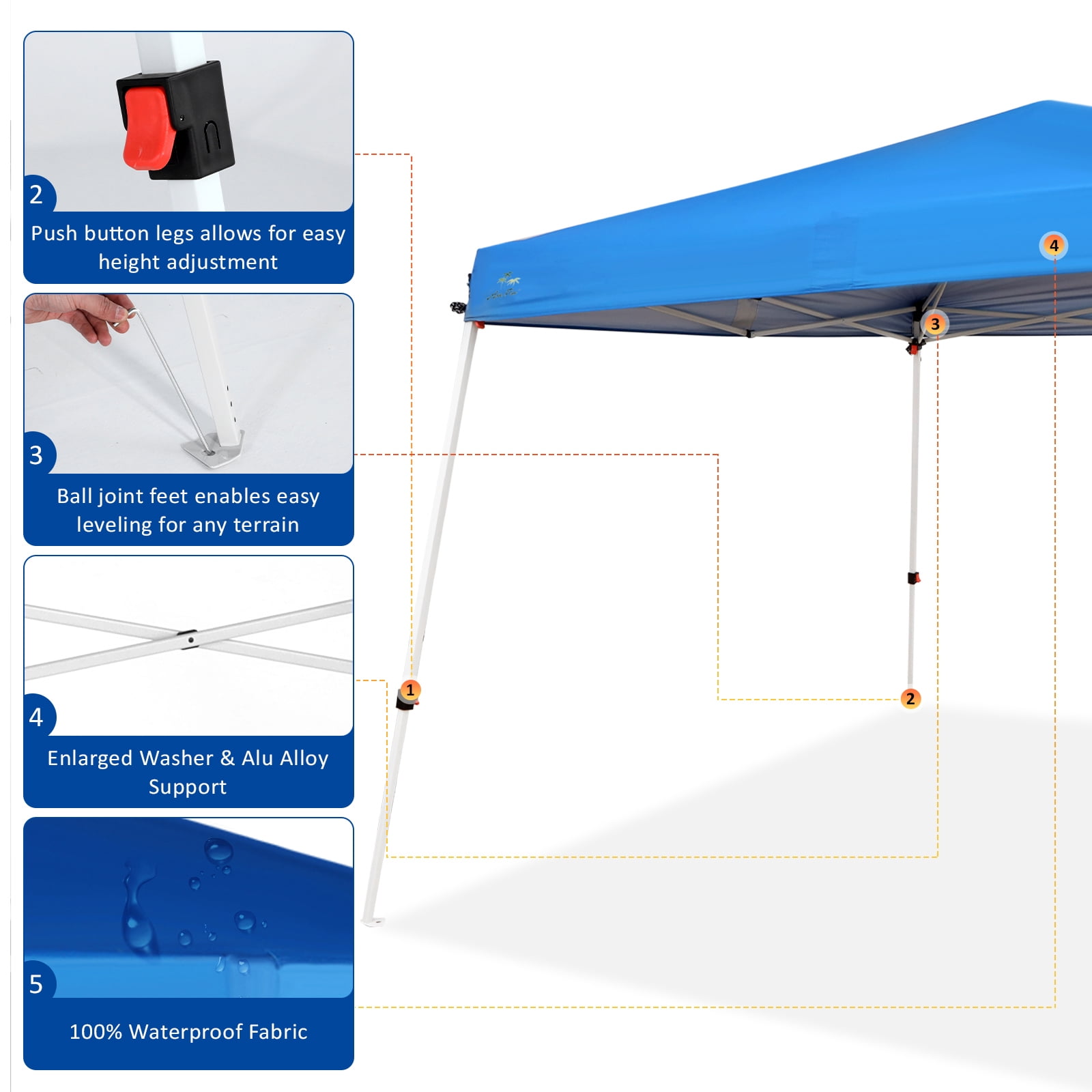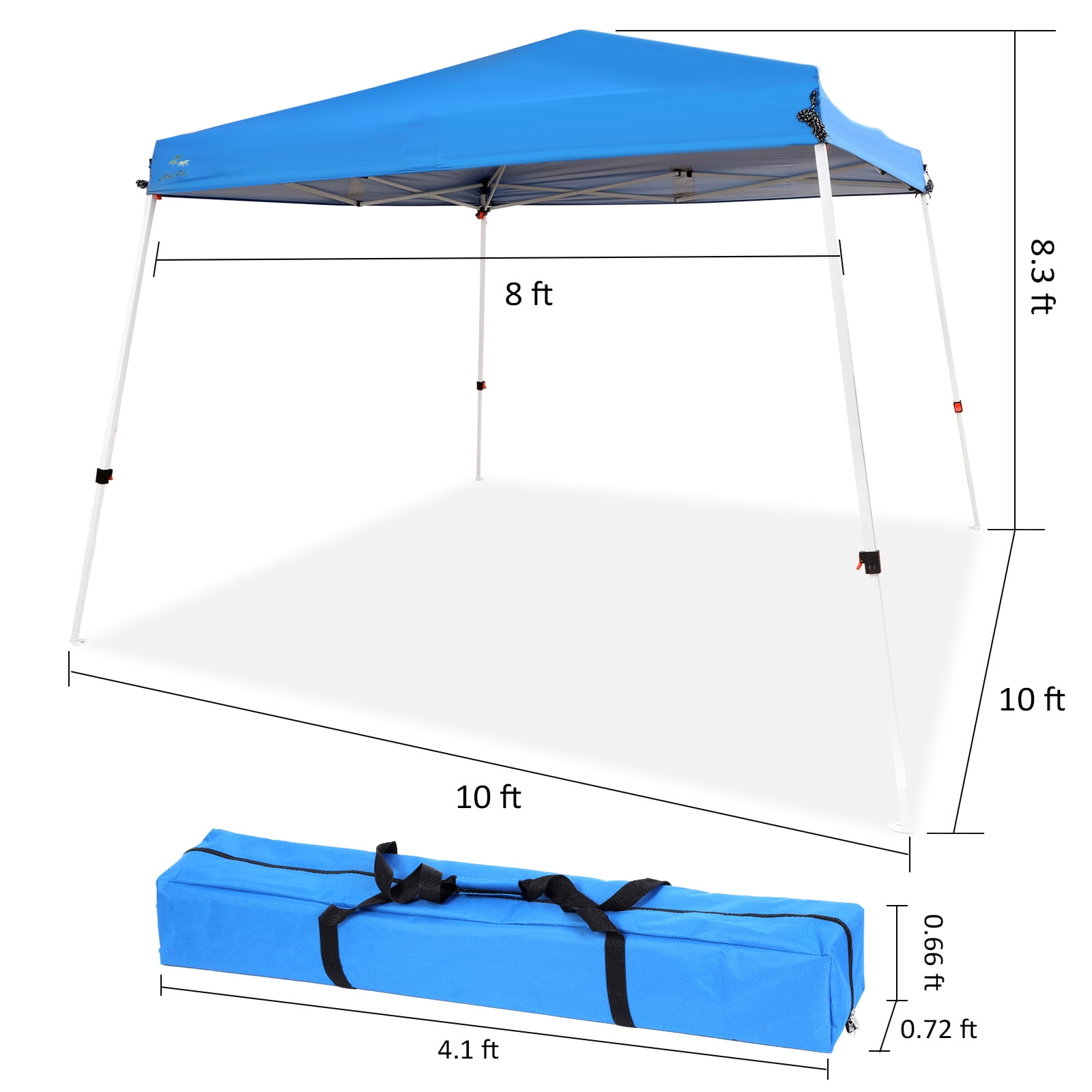 Abba Patio 10’x10′ Slant Leg Outdoor Canopy, Waterproof Pop up Canopy w/ Carry Bag, Blue (2 Wheels)