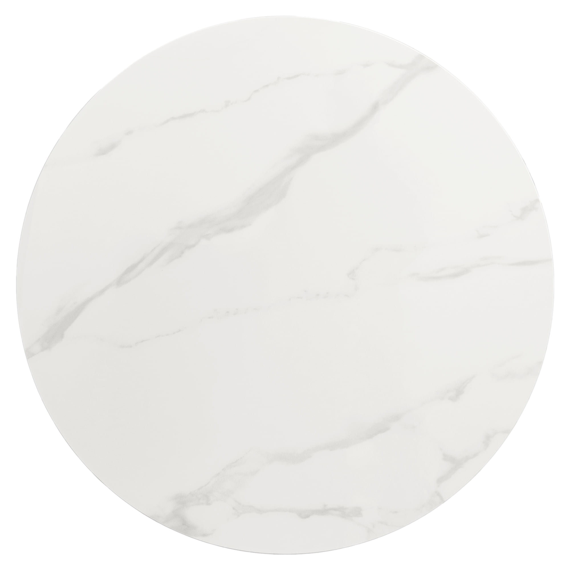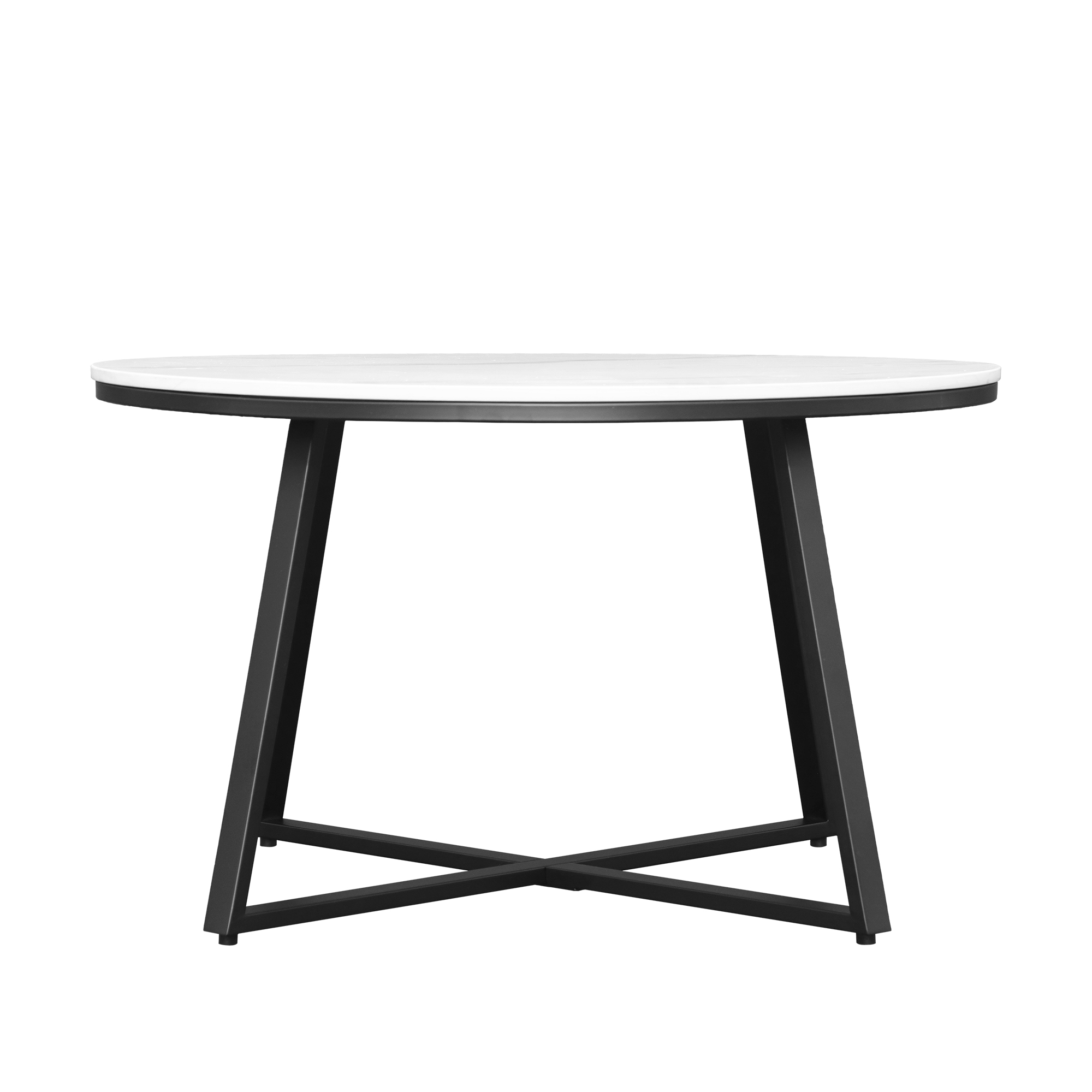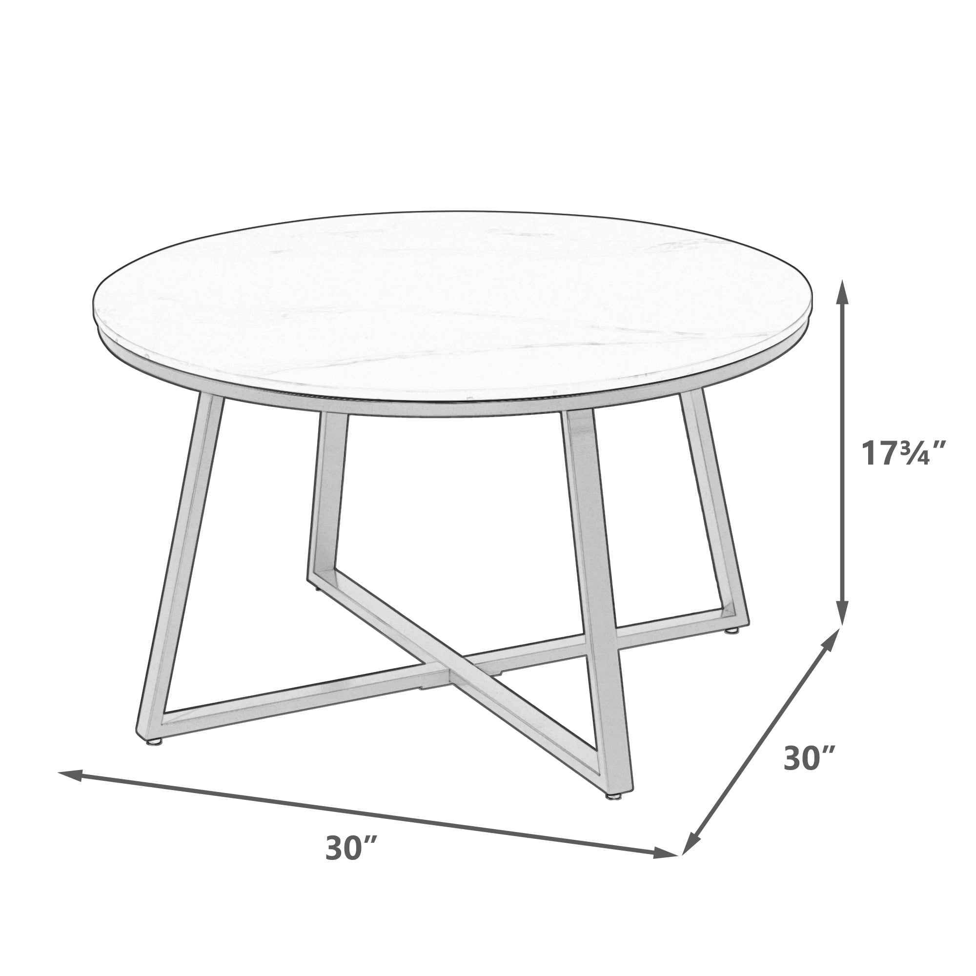 Abble 30″ Round Sintered Marble Stone Top Coffee Table, Cocktail Table with Black Cross Steel Legs
