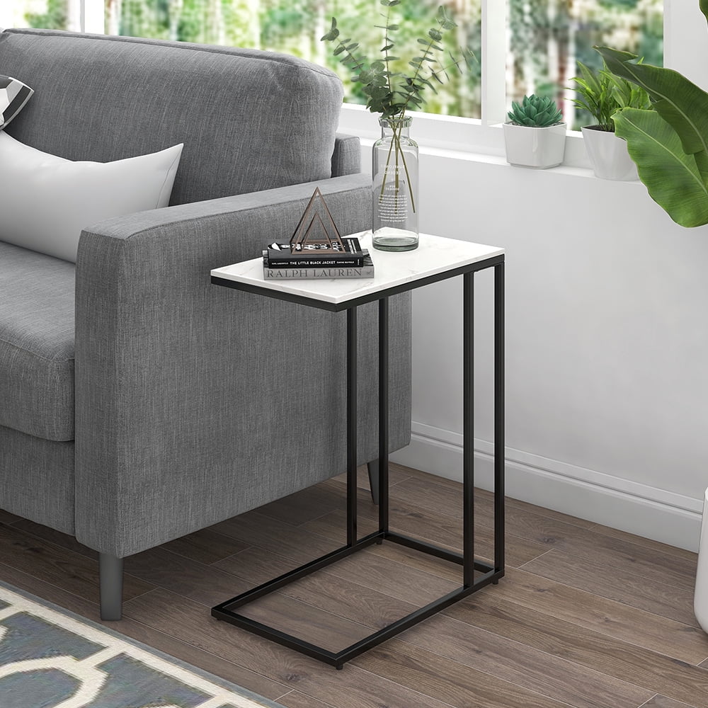Abble Rectangular Sintered Stone White Marble Top C Table