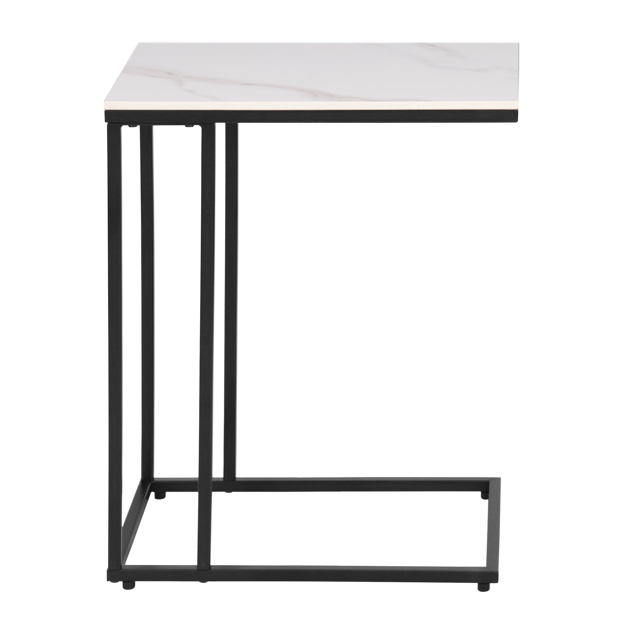 There is no exactly same table top for this natural material item. Sintered stone imitating the surface of white marble table top. Friendly for small space. C-shaped design allows you to push the table’s legs under the couch or chair,in addition to bringing the table closer. Easy assembly required. The 4-leg support system adds extra stability while maintaining a minimalist style. Crafted from sturdy metal legs with black and gold powder coated finish
