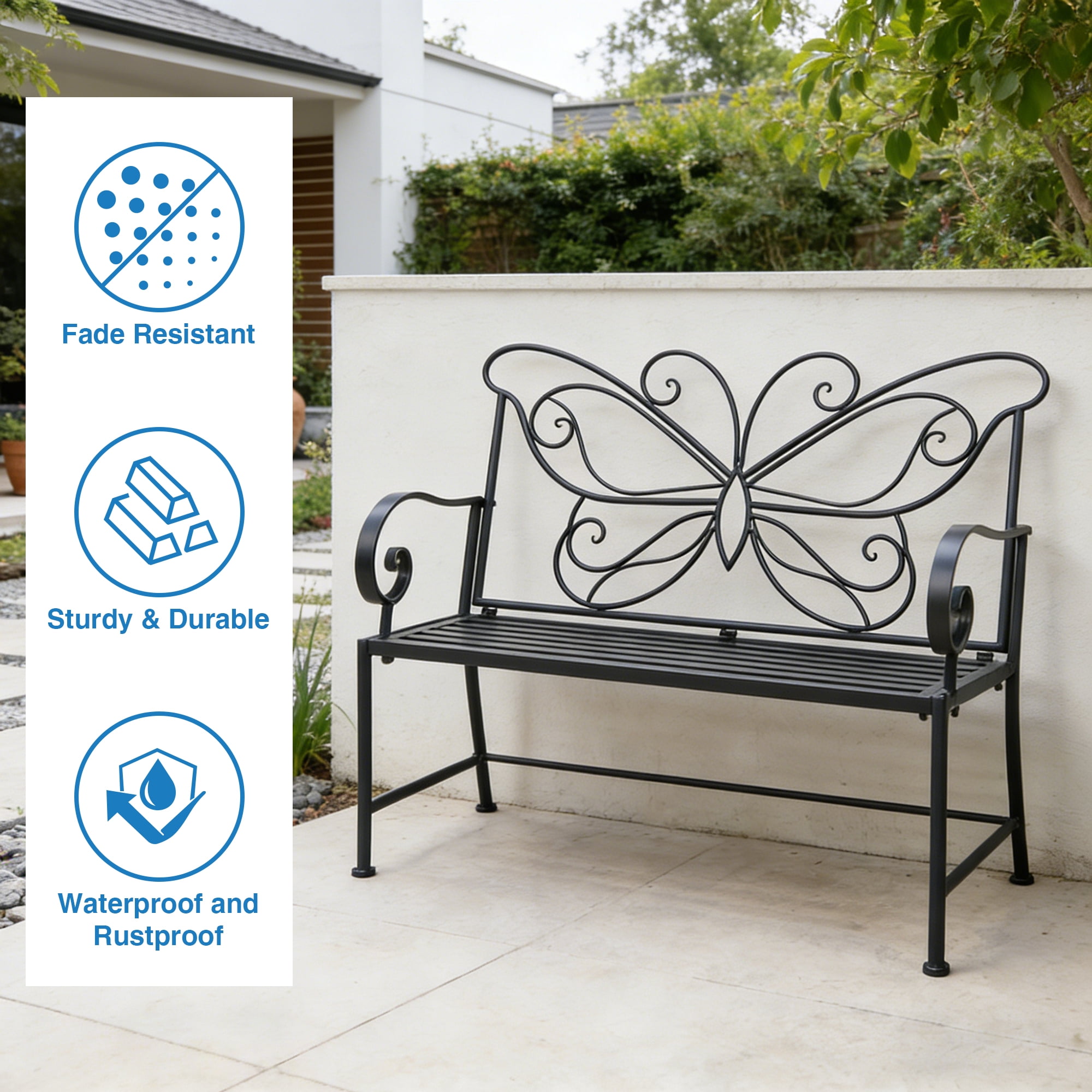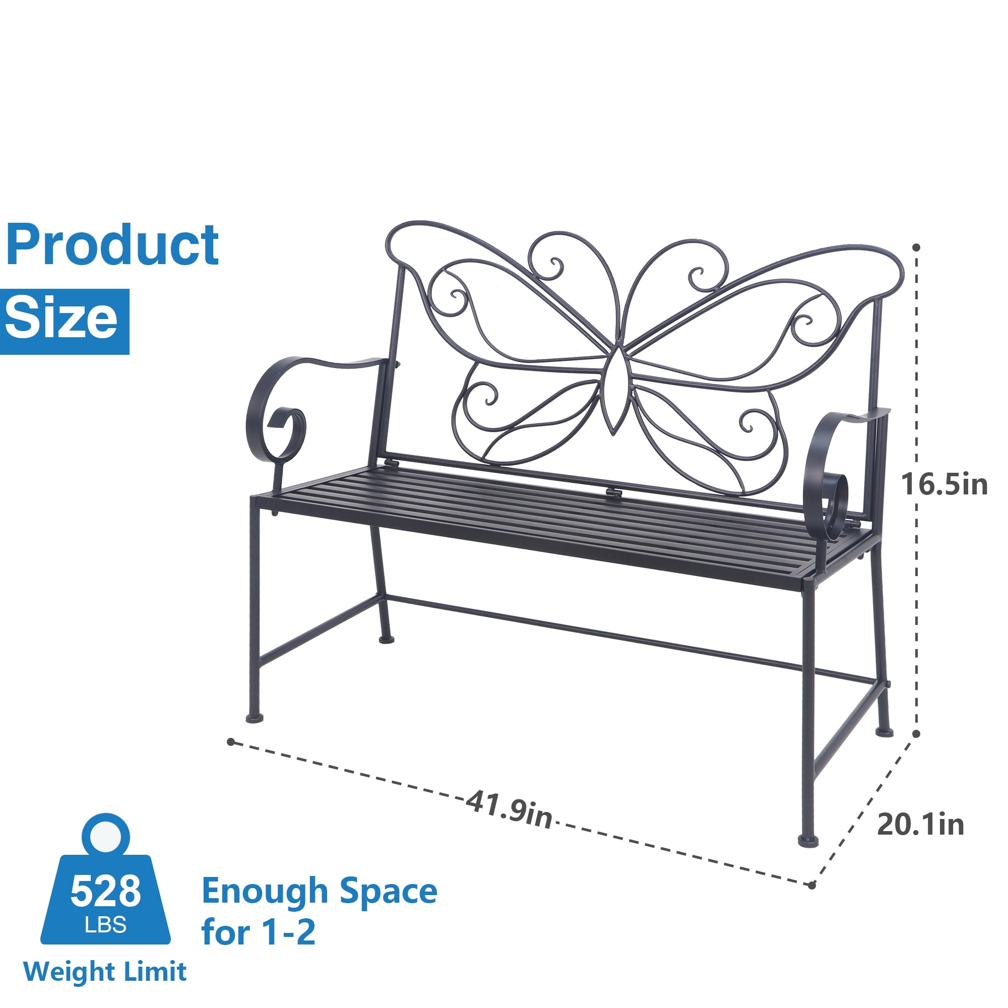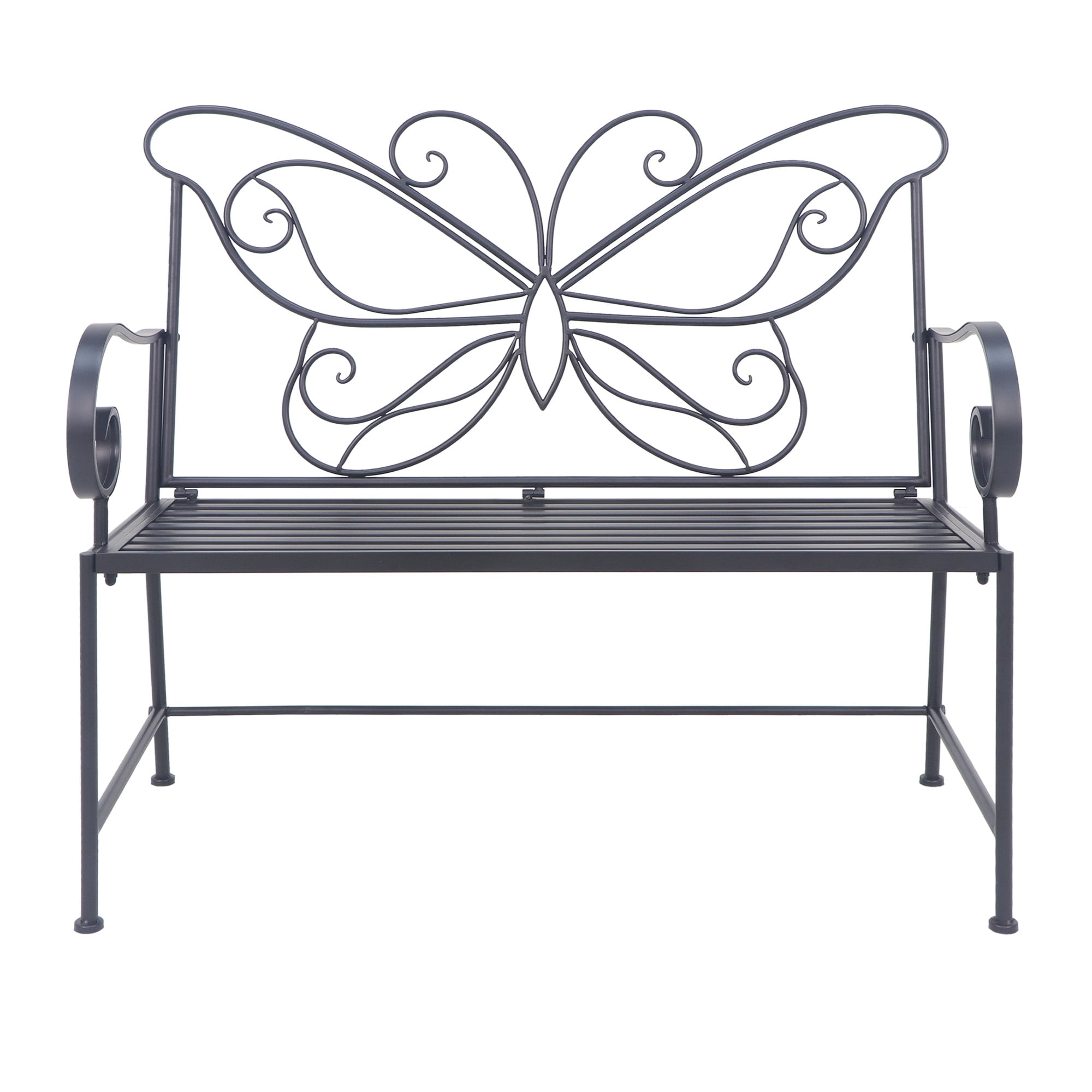 Kool 42″ Outdoor Bench Metal Butterfly Design Patio Garden Bench, Black
