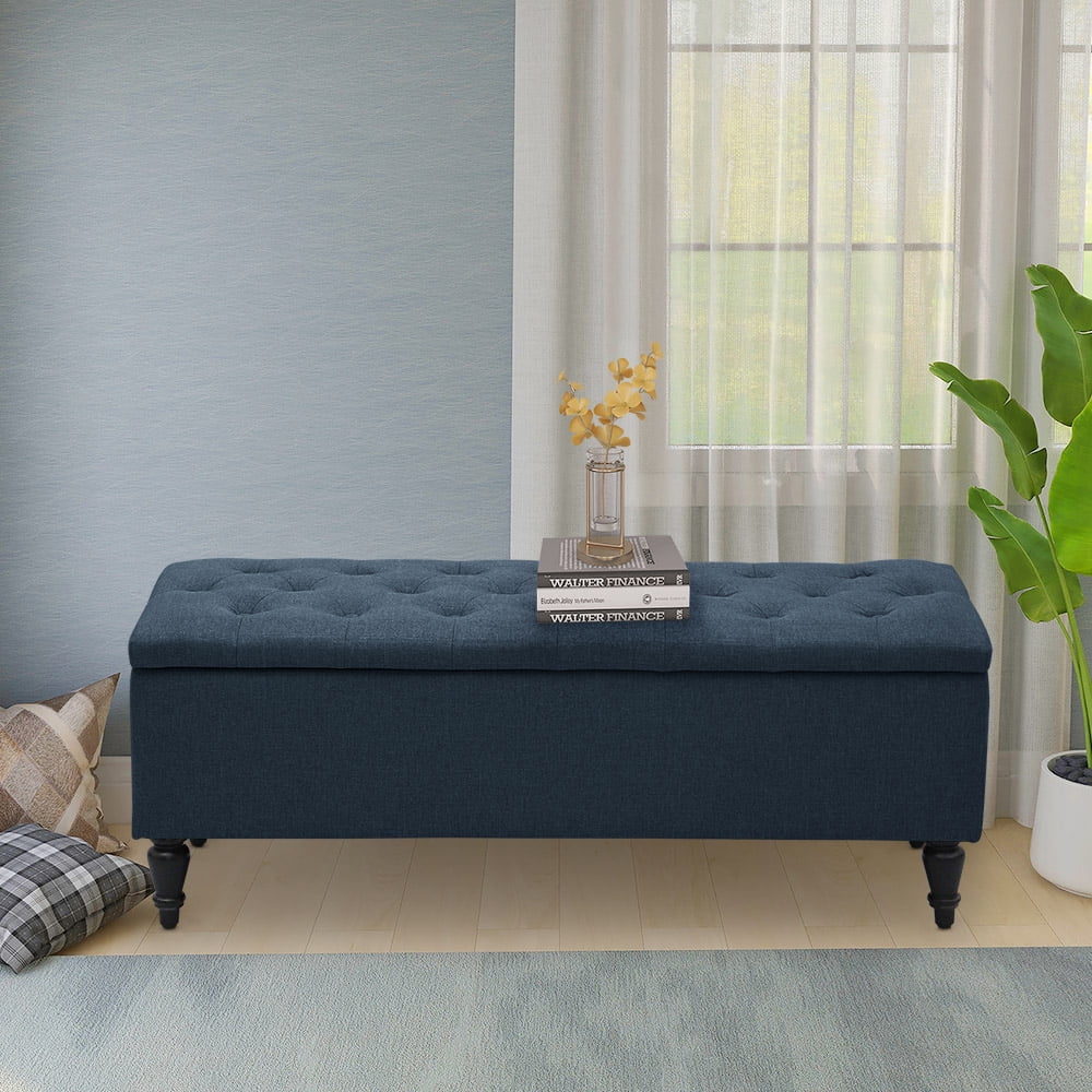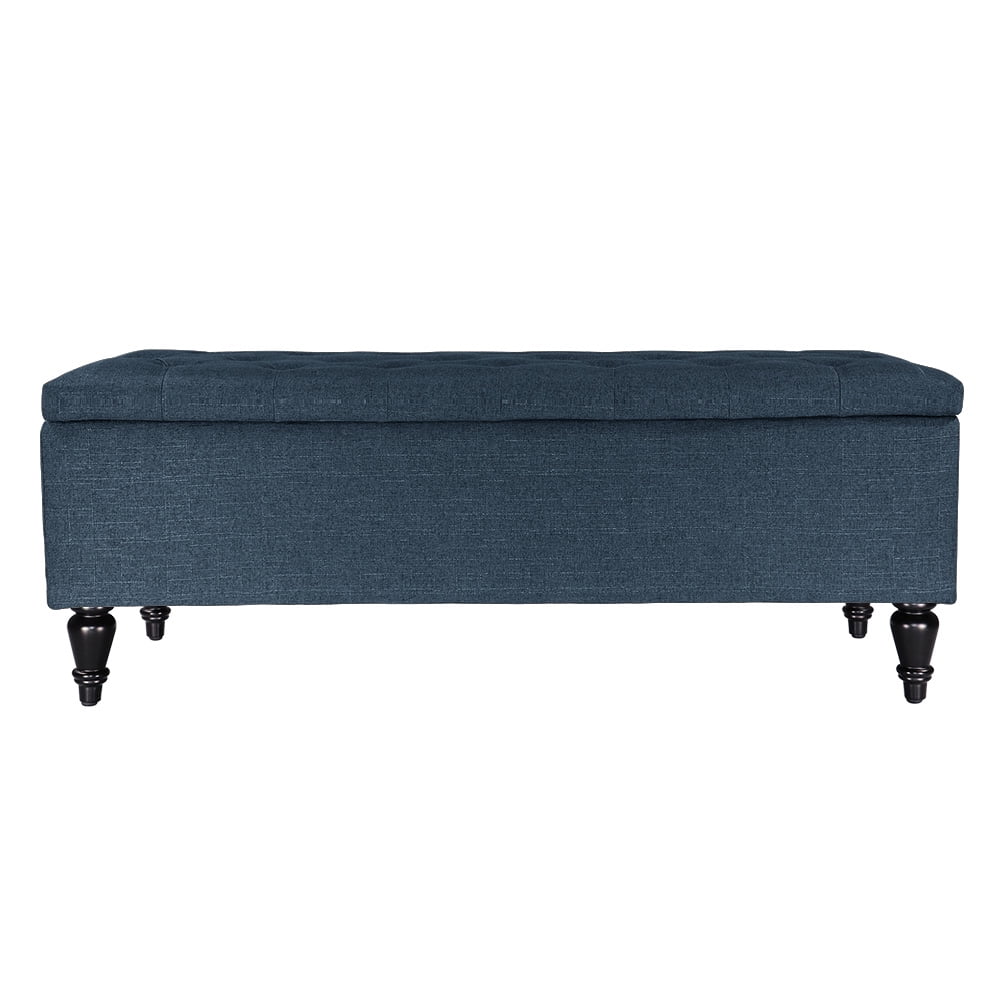 Abble W 45 in. x H 17.3 in.Denim Blue Fabric Upholstered Indoor Use Storage Bench with Button-Tufted Seat