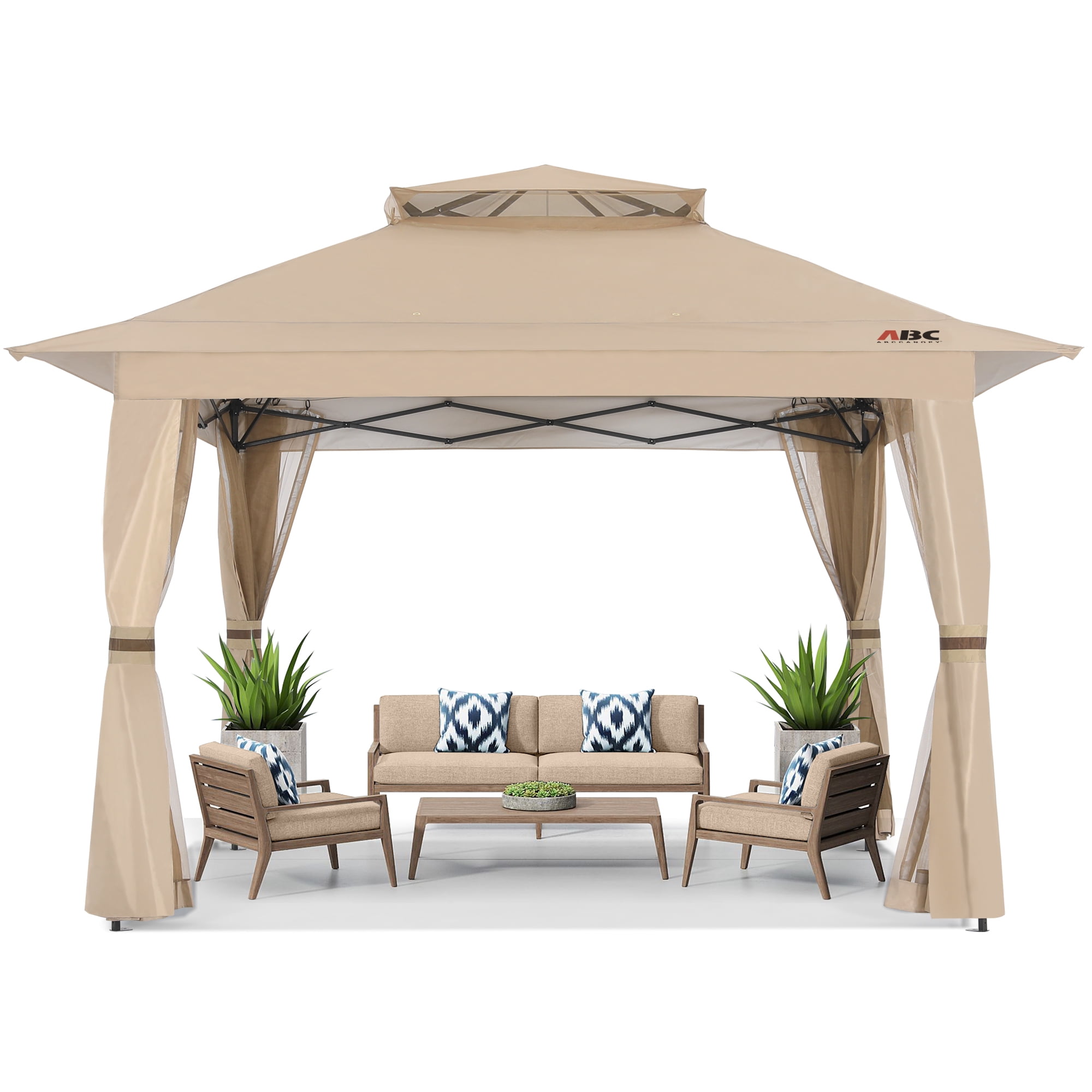 ABCCANOPY 13’x13′ Gazebo Tent Outdoor Pop up Gazebo Canopy Shelter with Mosquito Netting, Khaki
